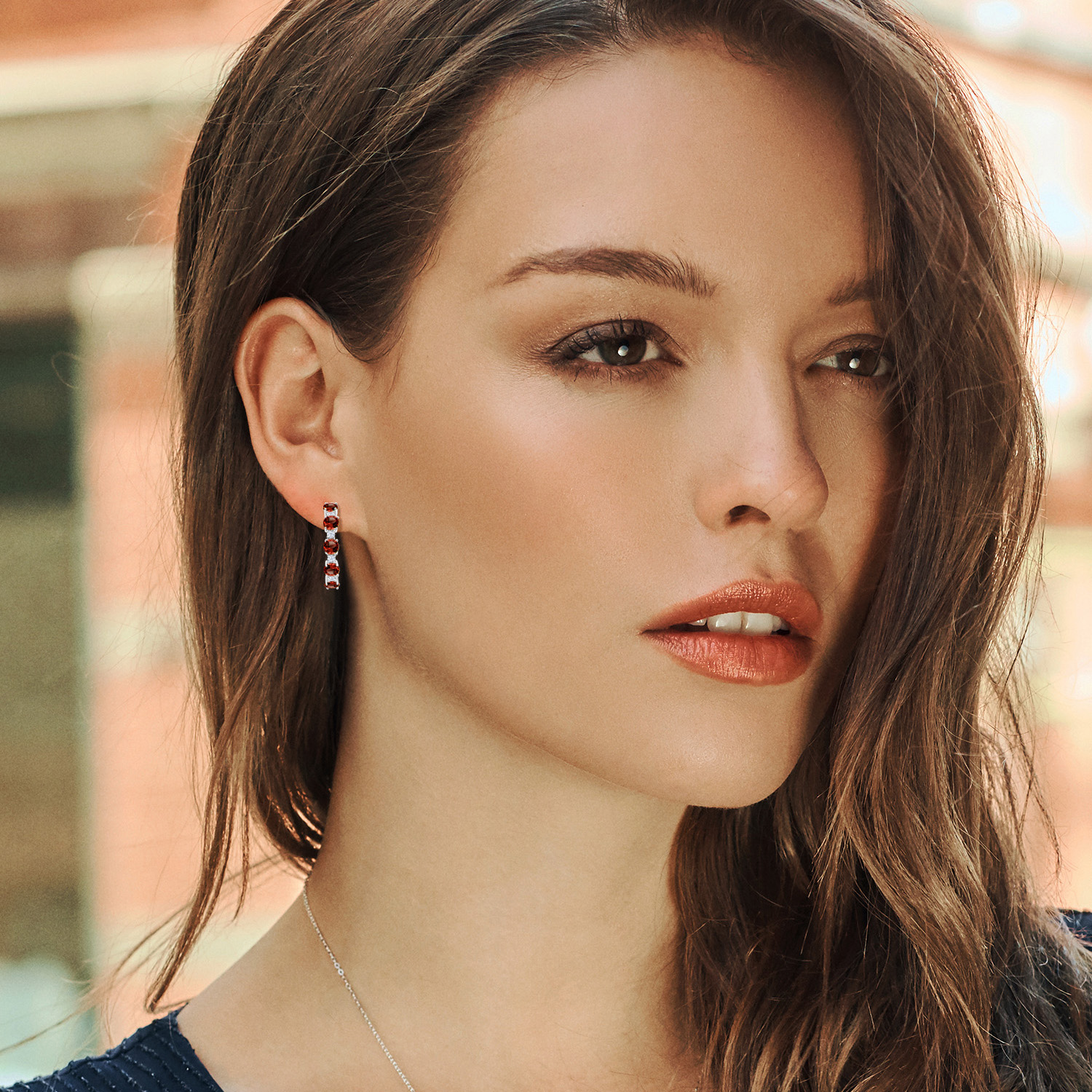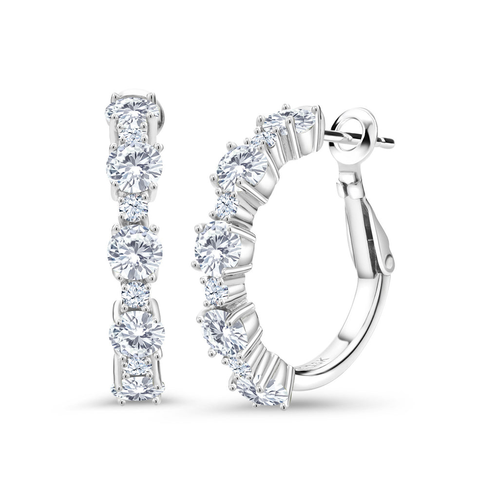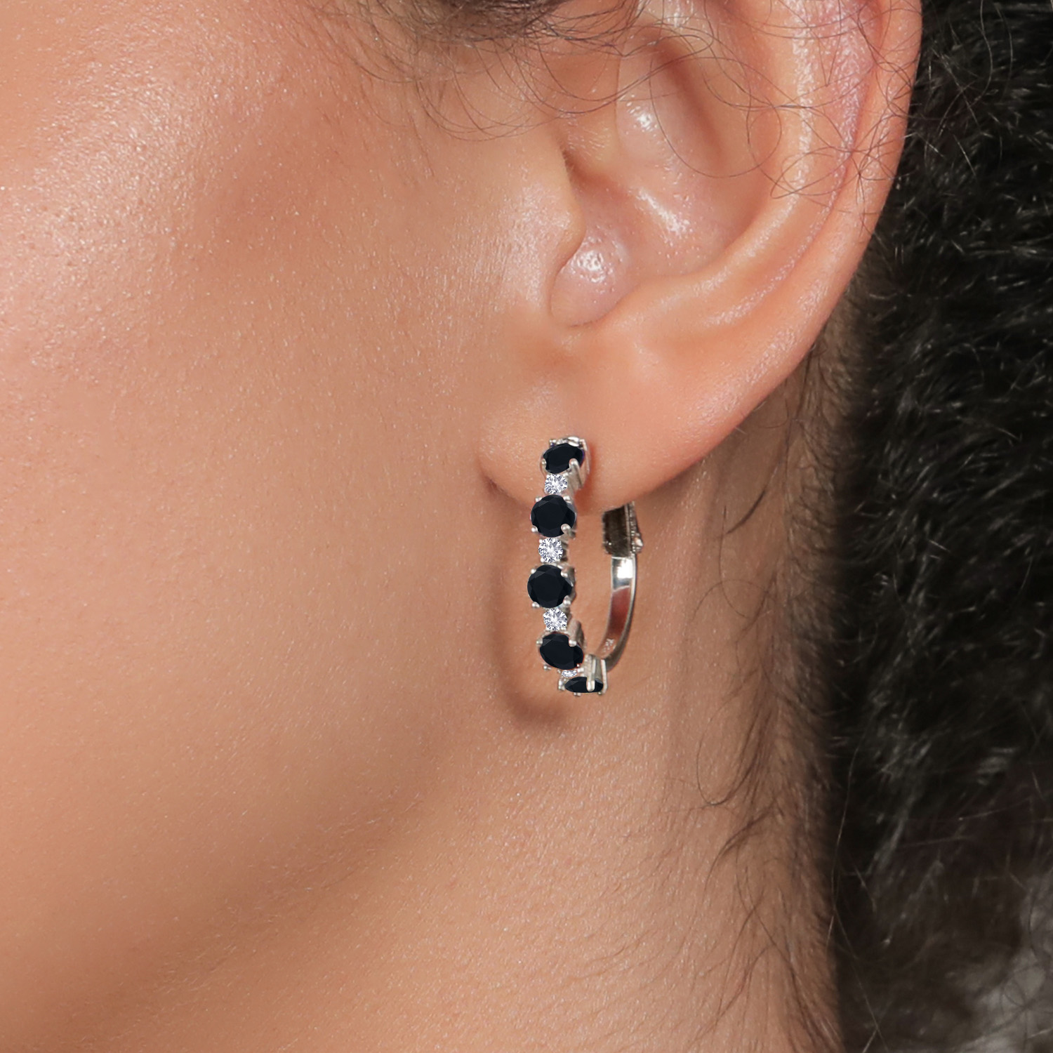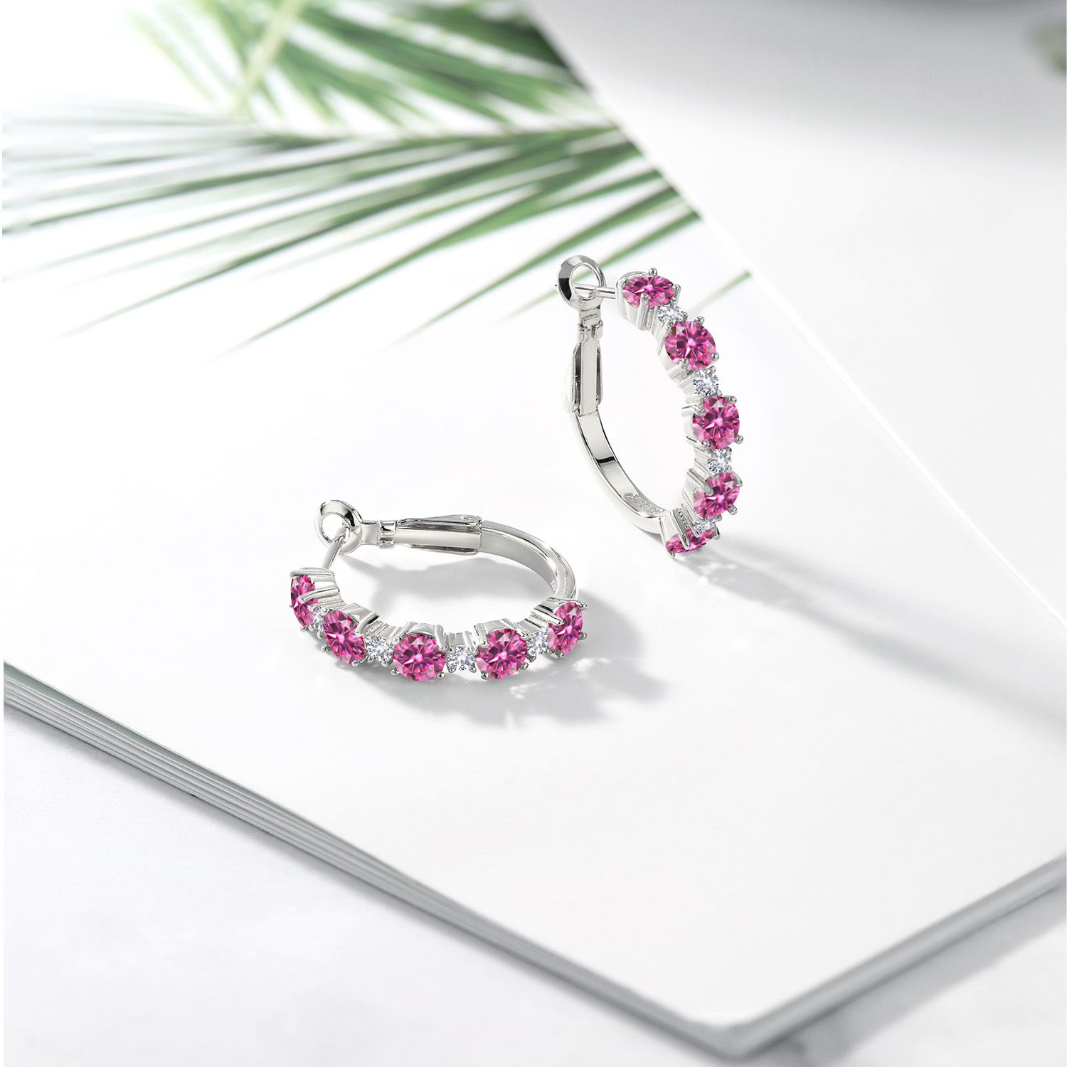 ELEGANT HOOP DESIGN WITH WHITE CREATED SAPPHIRE ACCENTS: Adorned with 1.9MM white created sapphire embellishments, these hoops reflect meticulous artistry and intricate detailing. Each stone is hand-set to accentuate the main gemstone's beauty, delivering a sparkling display of brilliance. The seamless blend of stones enhances the overall allure, transforming every occasion into an extraordinary experience.