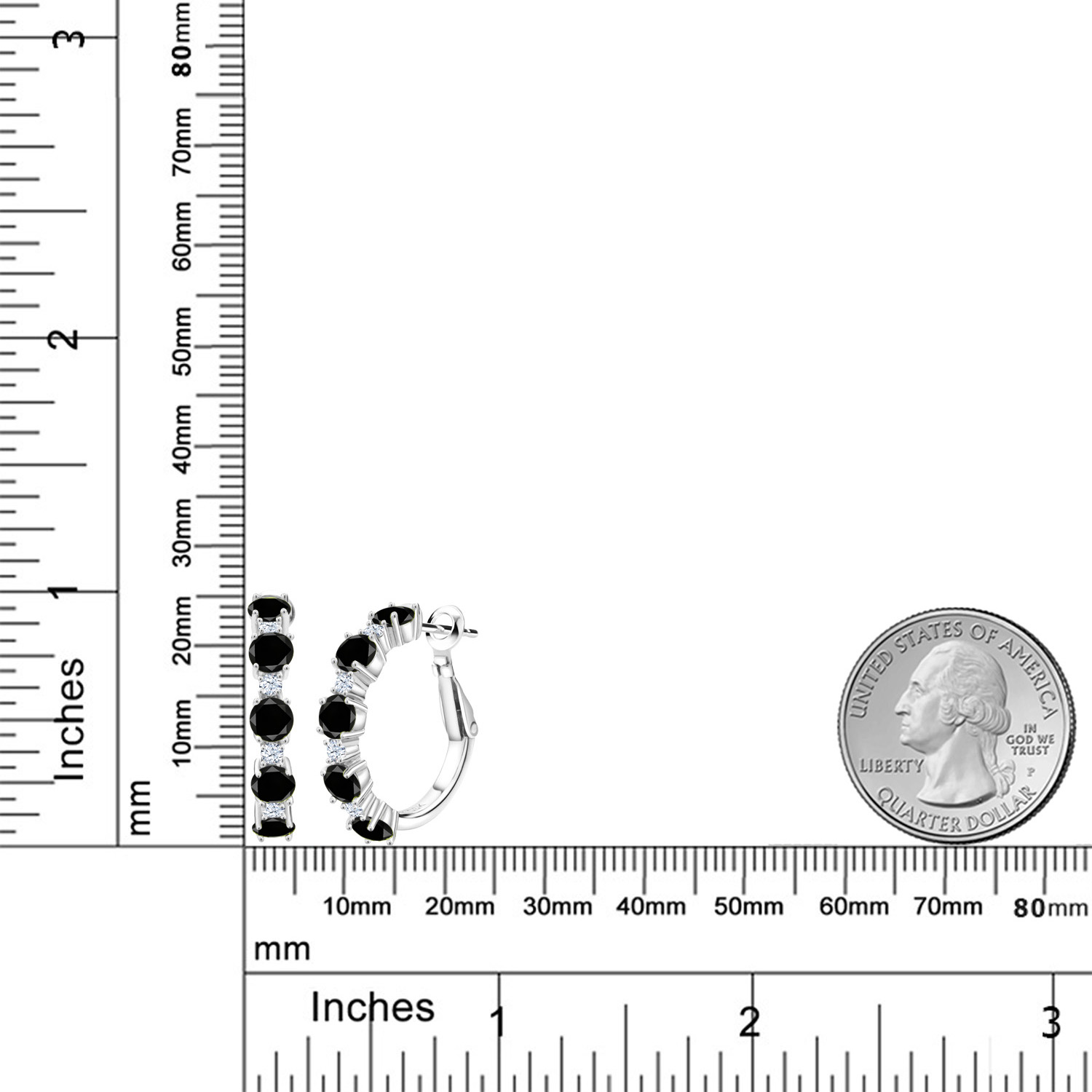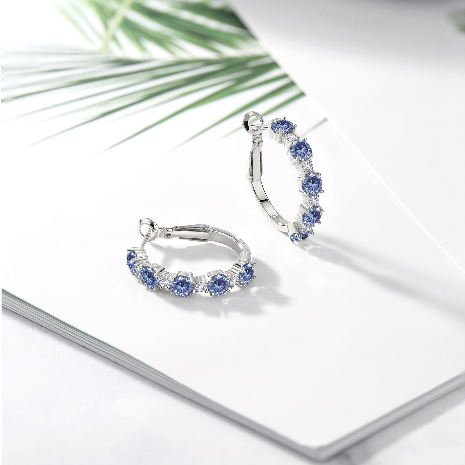 925 Sterling Silver Gemstone Birthstone and White Created Sapphire Hoop Earrings for Women | Round Cut 4MM and 1.9MM Stones | 1 Inch Diameter Hoops | Fine Jewelry for Her Mom Wife Women