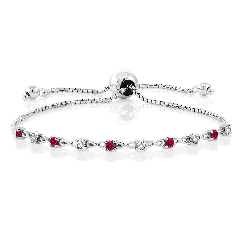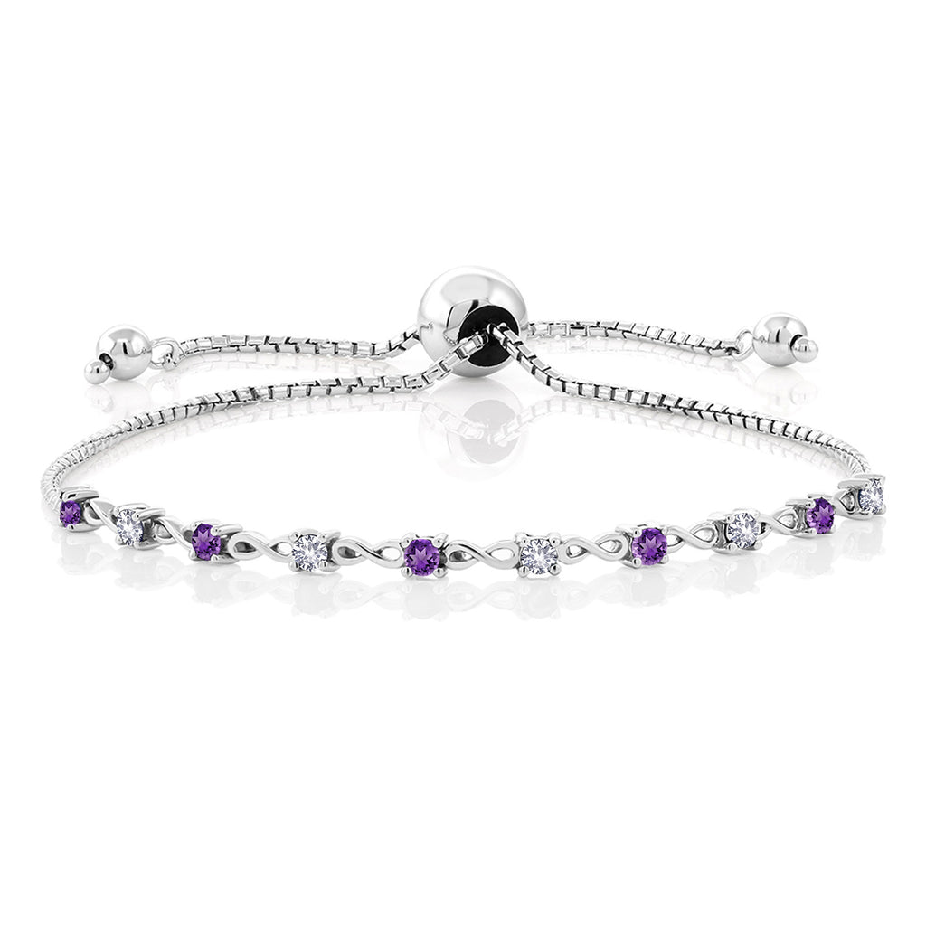925 Sterling Silver Gemstone Birthstone and White Created sapphire Infinity Tennis Bracelet For Women | Round 2.5MM | Adjustable Bolo Bracelet Up to 9 Inch | Easy-On Easy-Off
