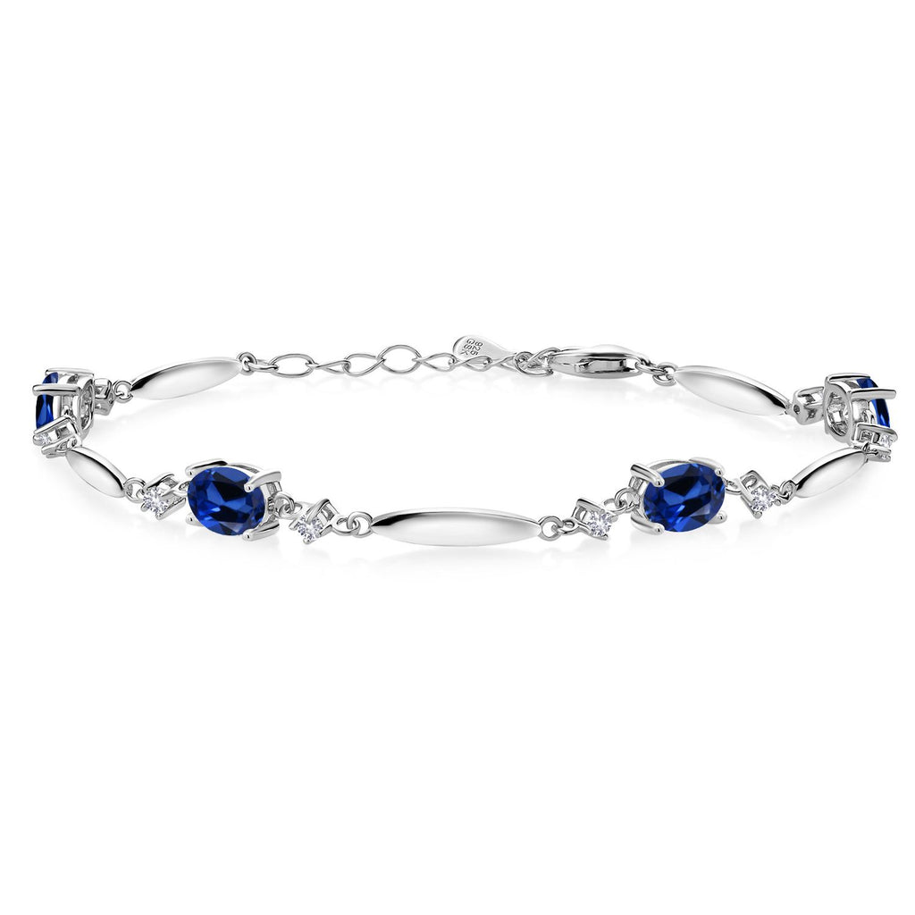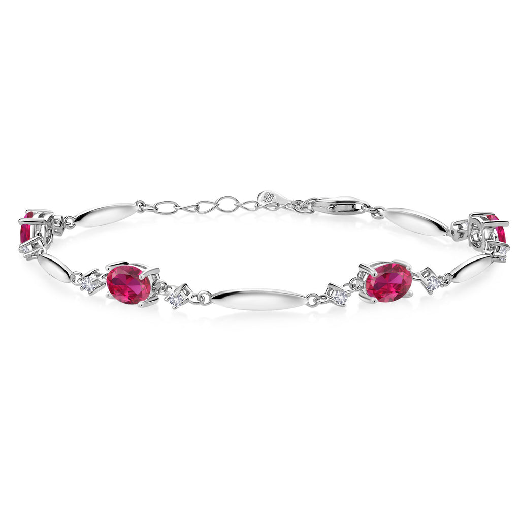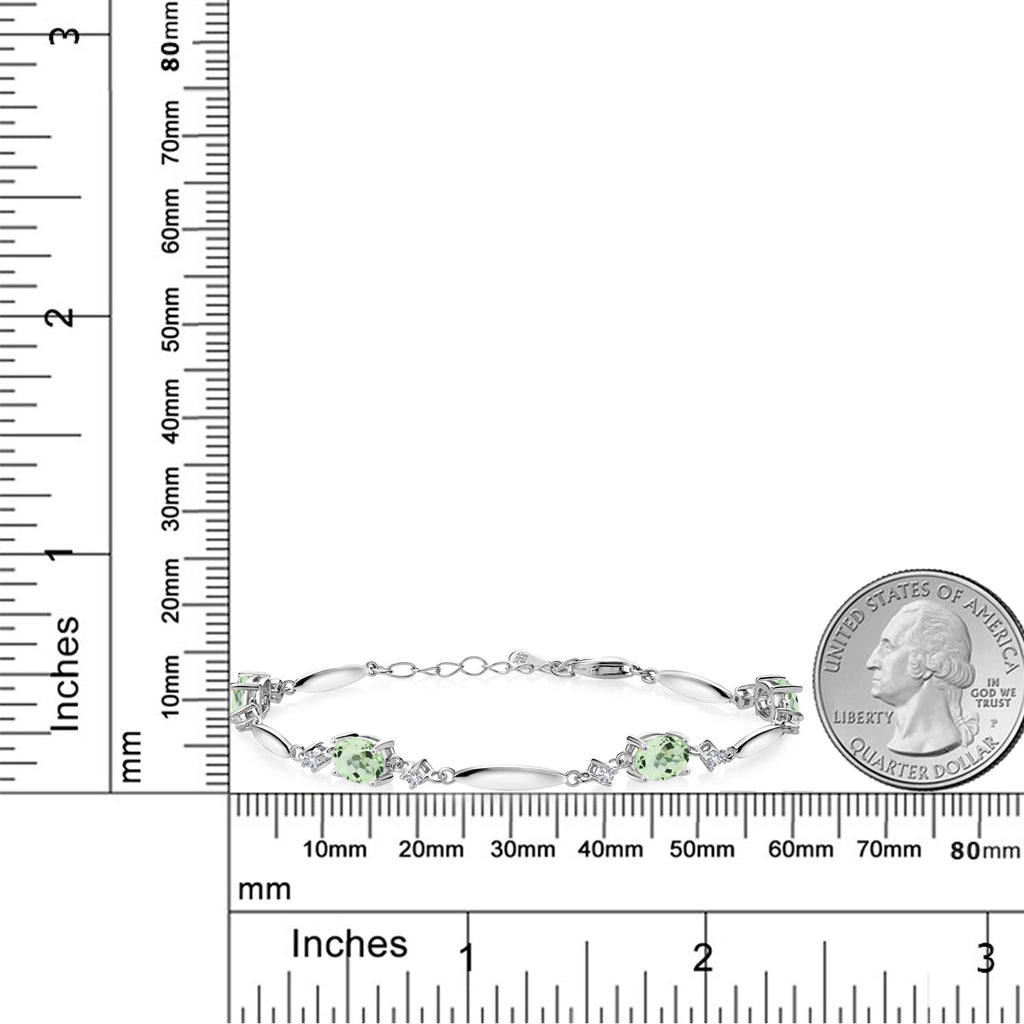 925 Sterling Silver Gemstone Birthstone and White Created Sapphire Tennis Bracelet For Women | Oval 7X5MM and 2MM | 6 Inch + 1 Inch Extender | Fine Jewelry for Her Mom Wife