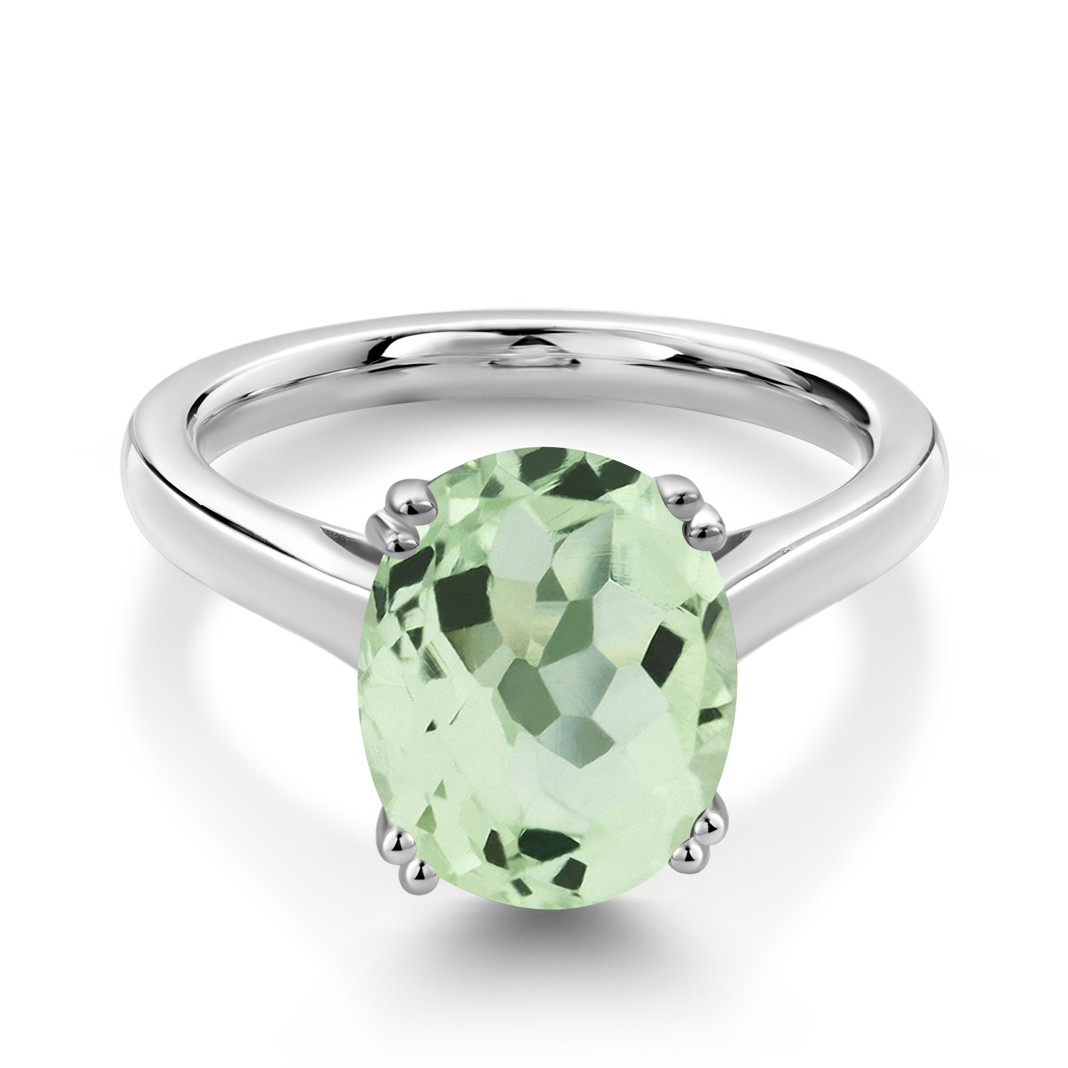 925 Sterling Silver Gemstone Birthstone and White Diamond Solitaire Ring for Women | Oval 11X9MM with 1.5MM Accent Stone | Fine Jewelry for Engagement Wedding Anniversary Promise | Sizes 5-9