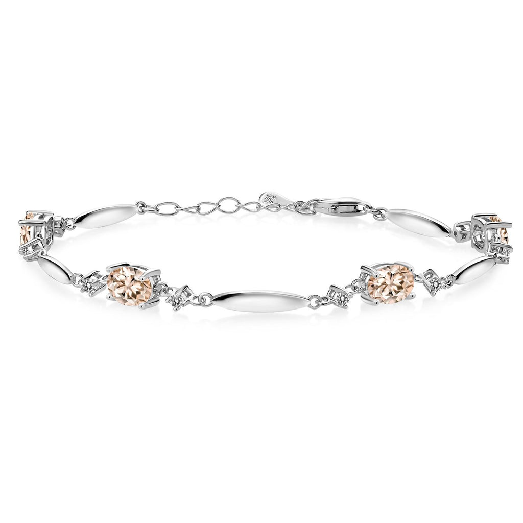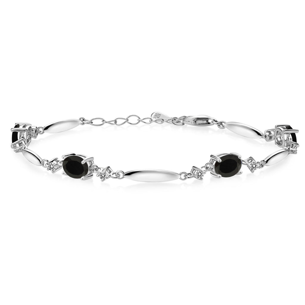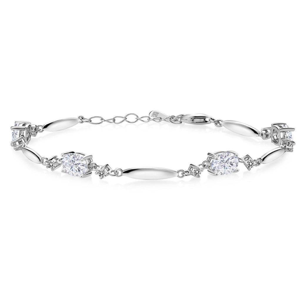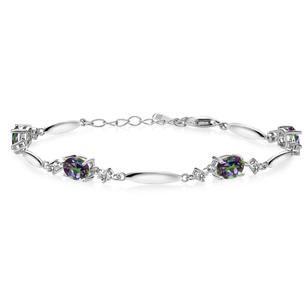 925 Sterling Silver Gemstone Birthstone and White Diamond Tennis Bracelet For Women | Oval 7X5MM and 2MM | 6 Inch + 1 Inch Extender | Fine Jewelry for Her Mom Wife
