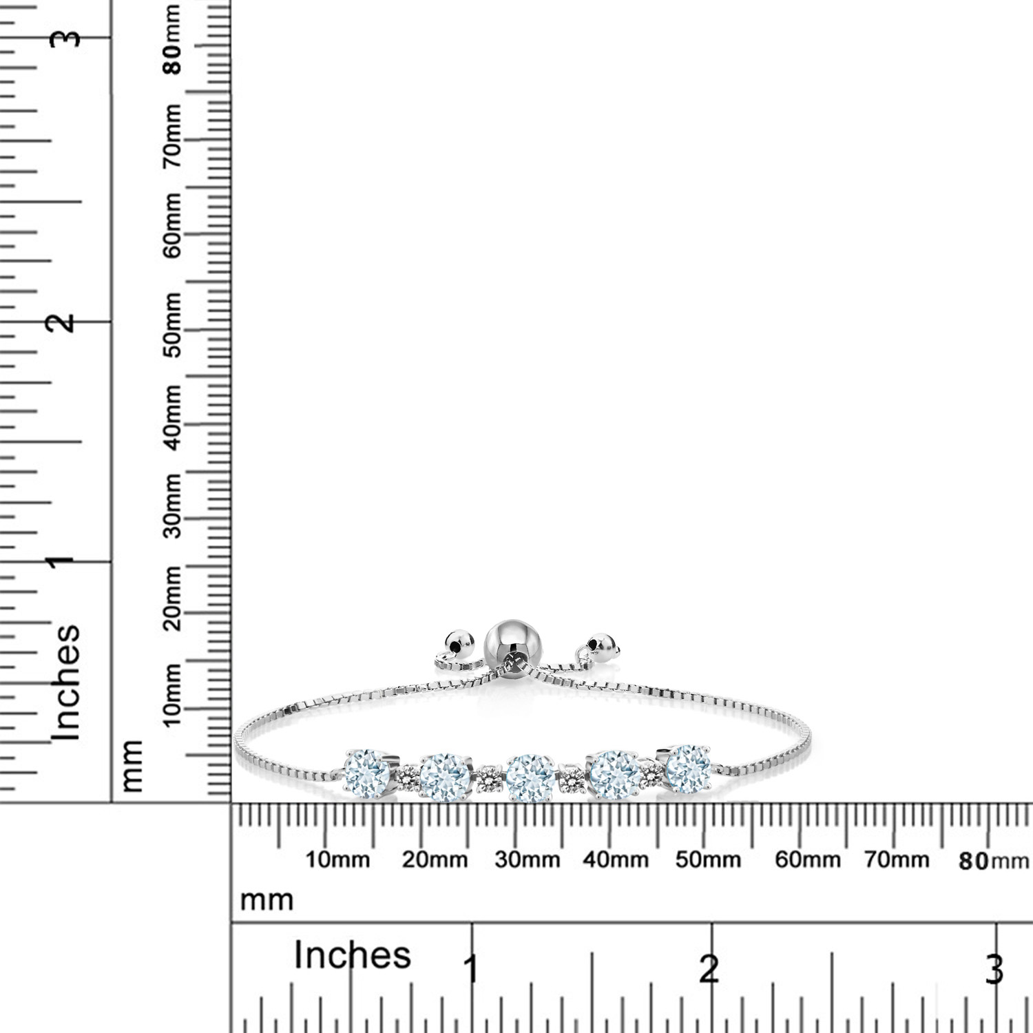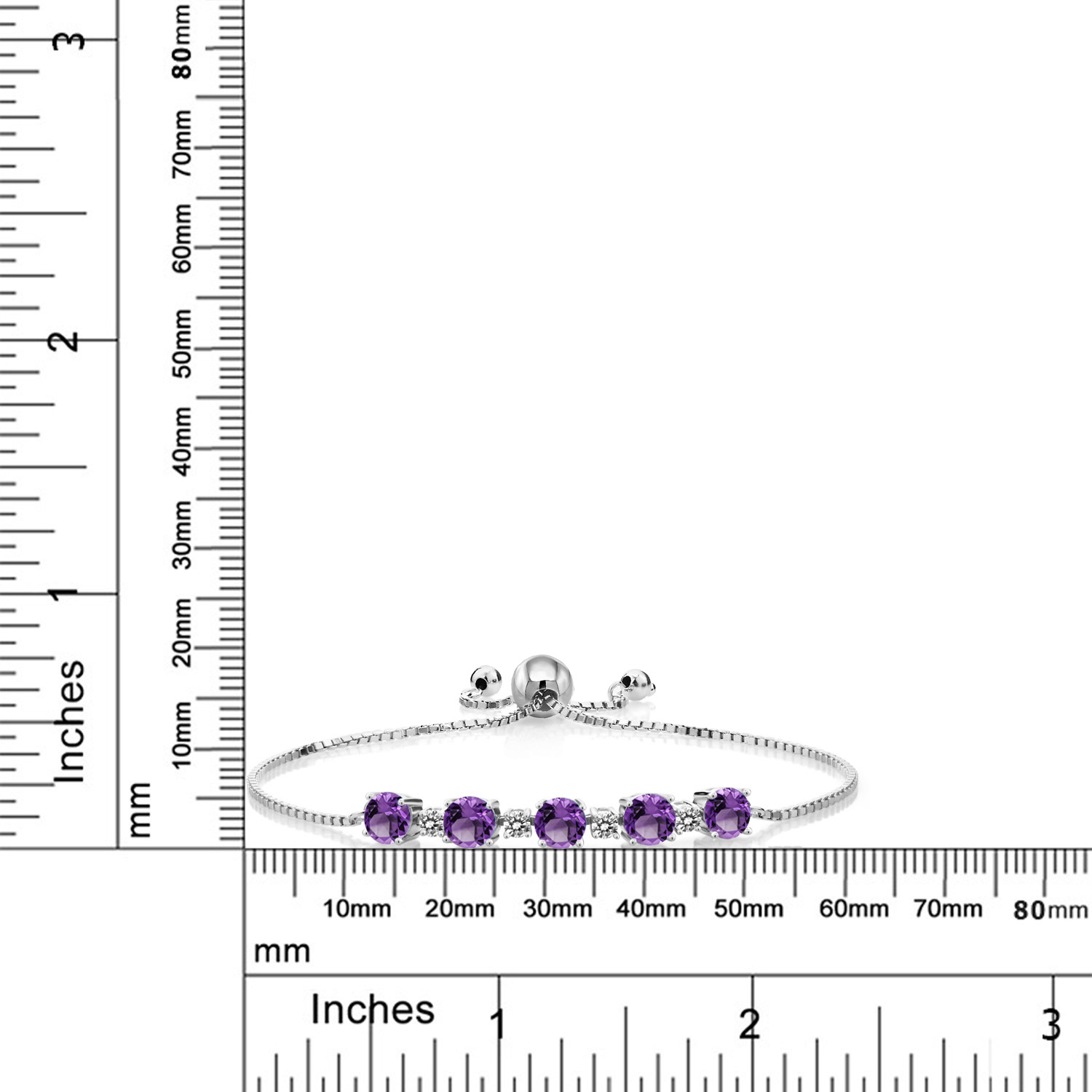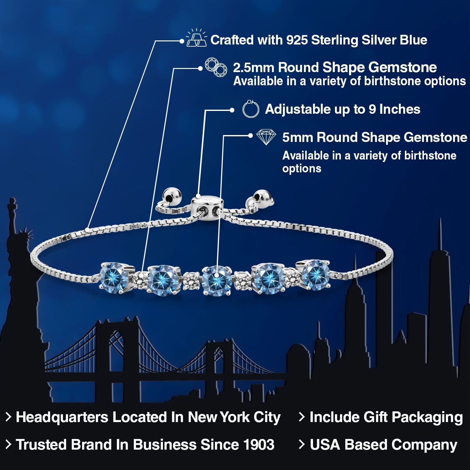 925 Sterling Silver Gemstone Birthstone and White Diamond Tennis Bracelet for Women | Round 5MM and 2.5MM | Adjustable Bolo Design | Easy-On Easy-Off | Fully Adjustable Up to 9 Inch