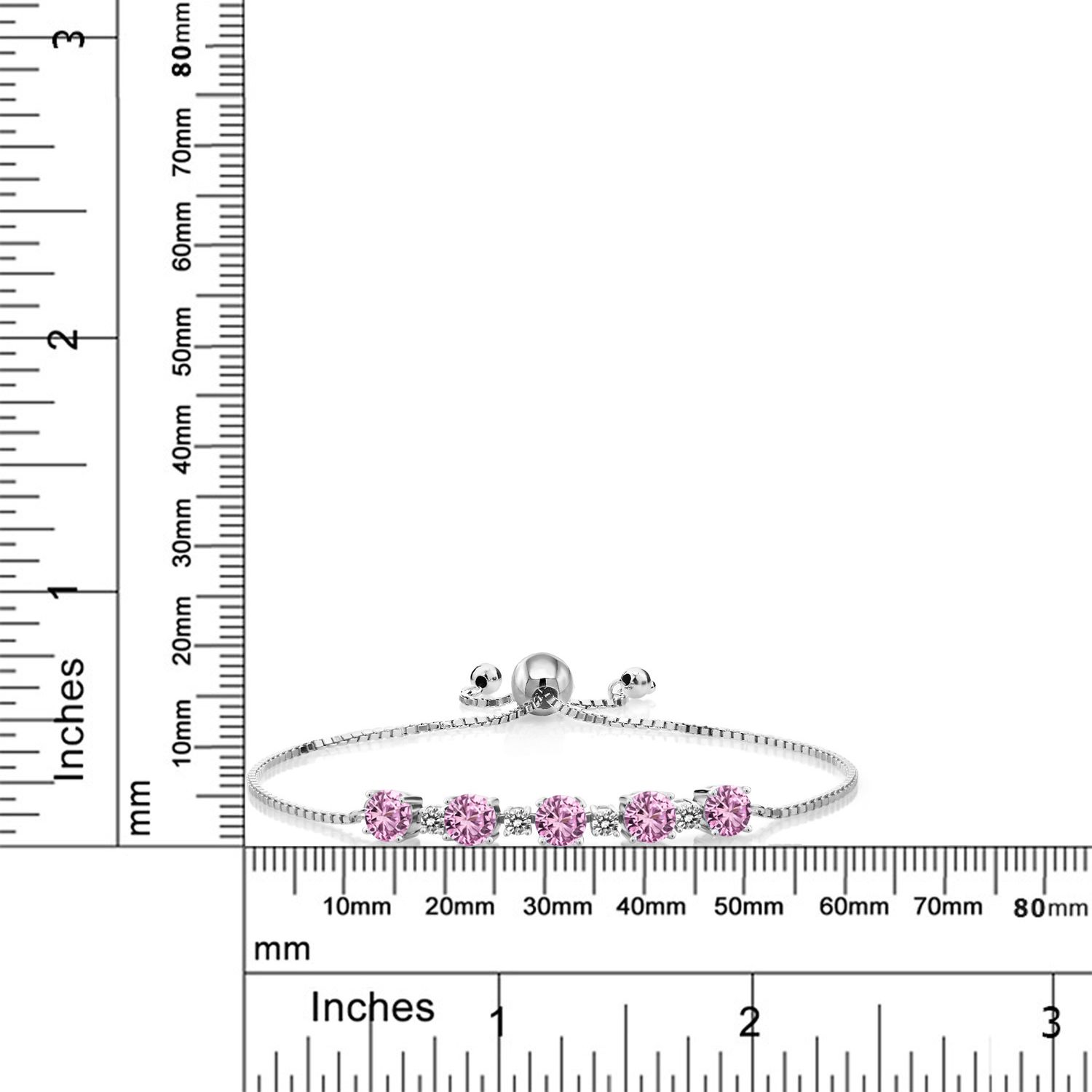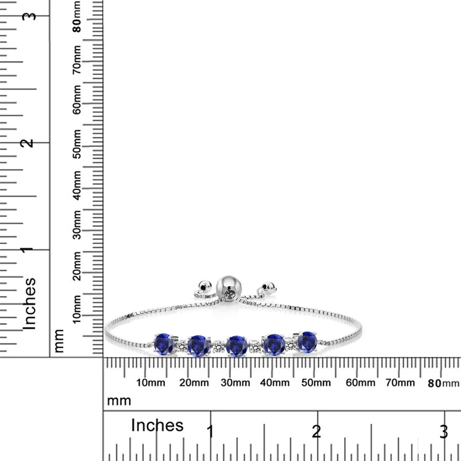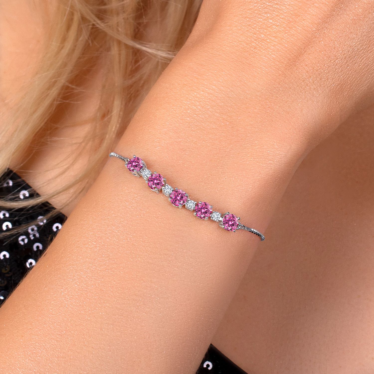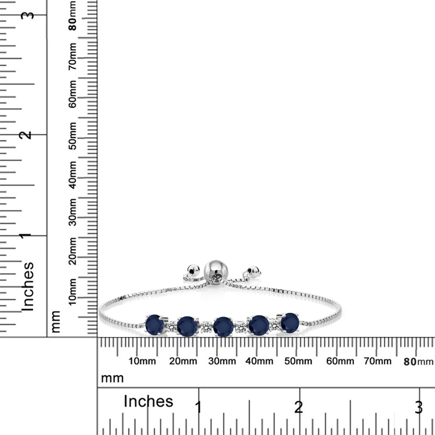925 Sterling Silver Gemstone Birthstone and White Diamond Tennis Bracelet for Women | Round 5MM and 2.5MM | Adjustable Bolo Design | Easy-On Easy-Off | Fully Adjustable Up to 9 Inch