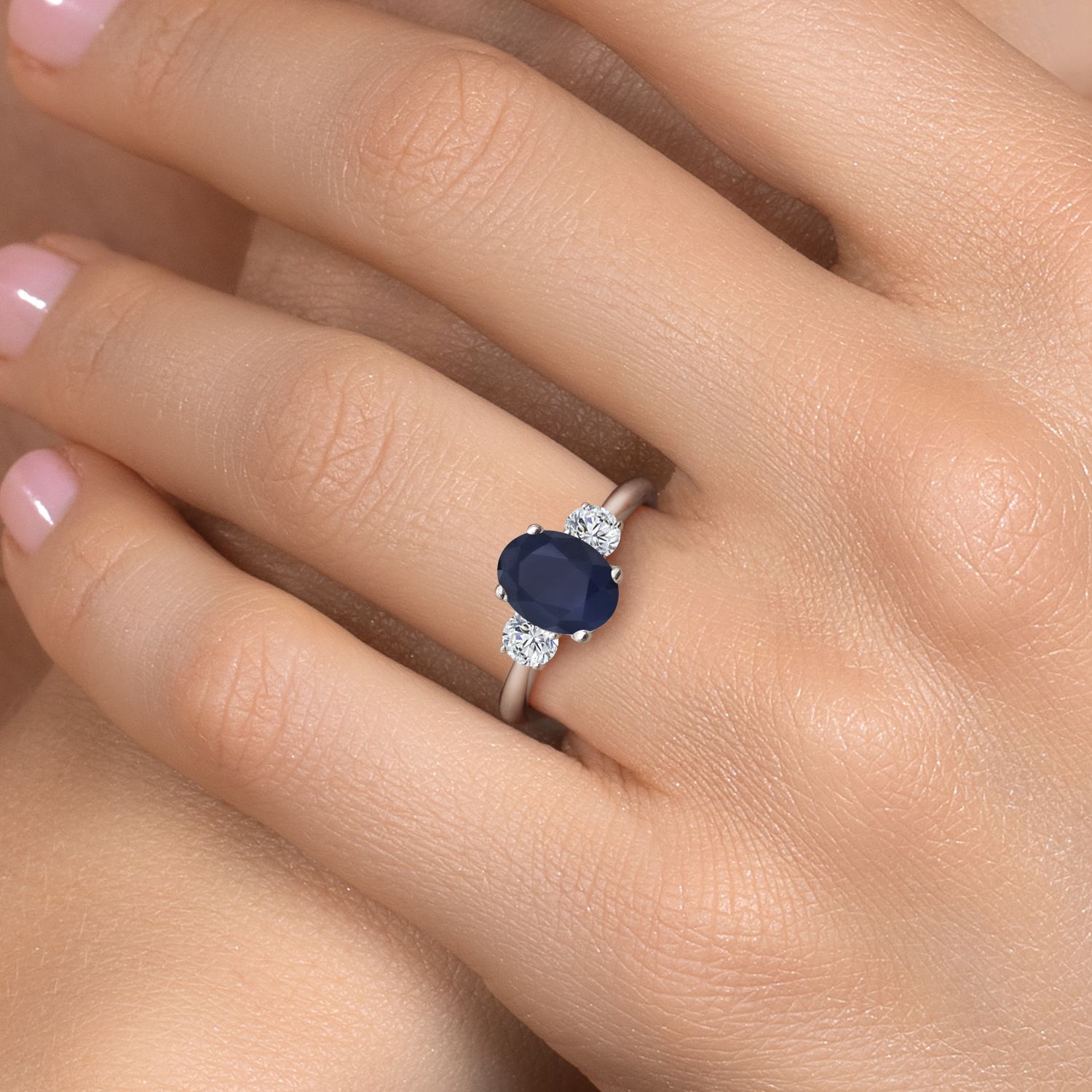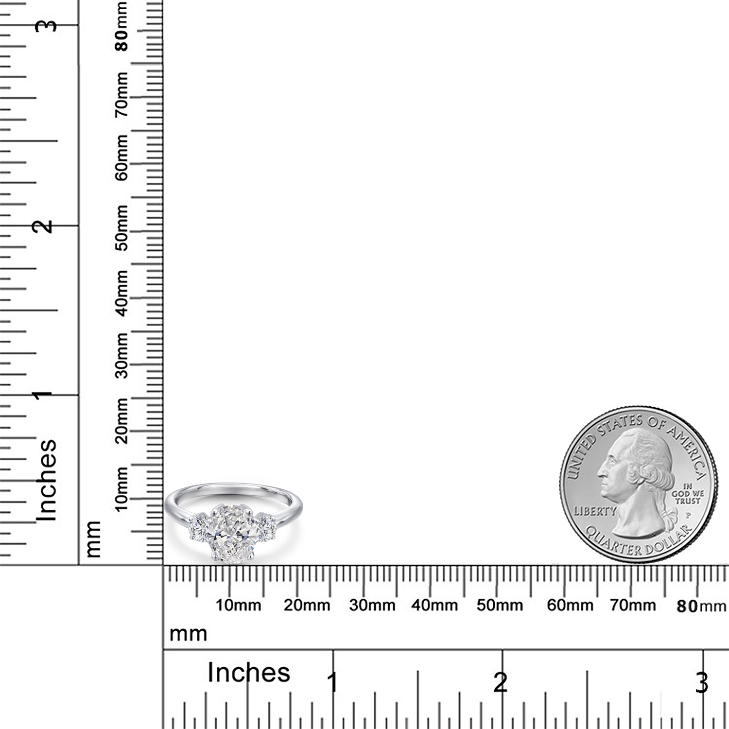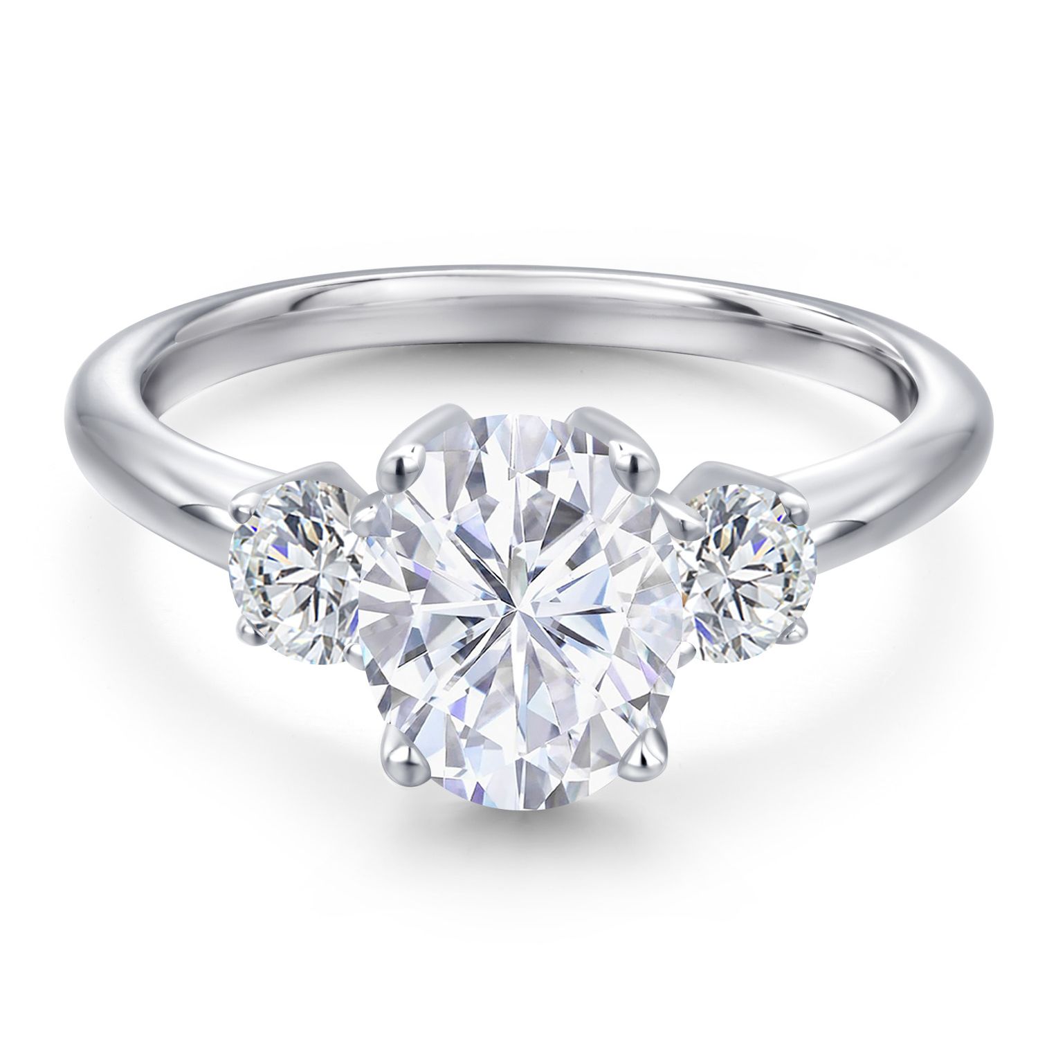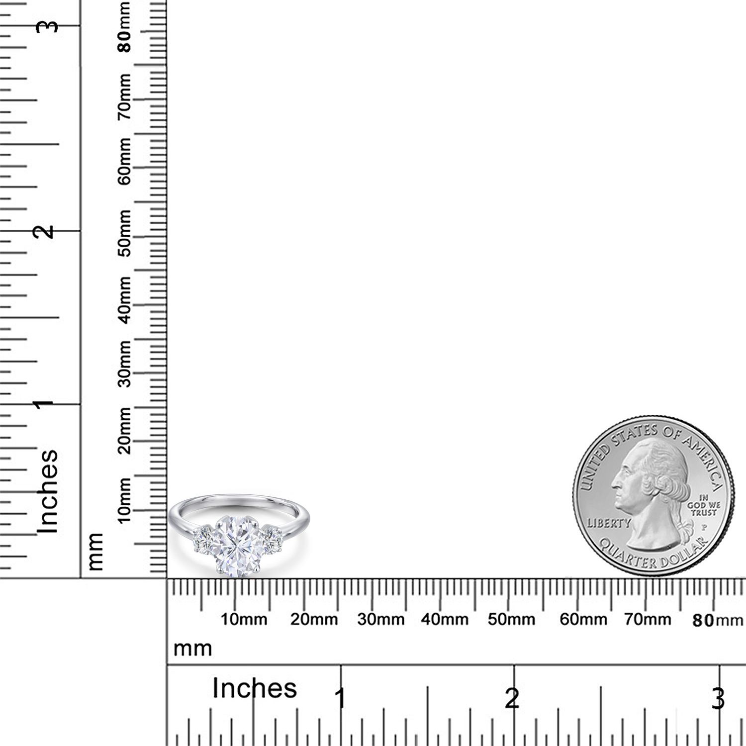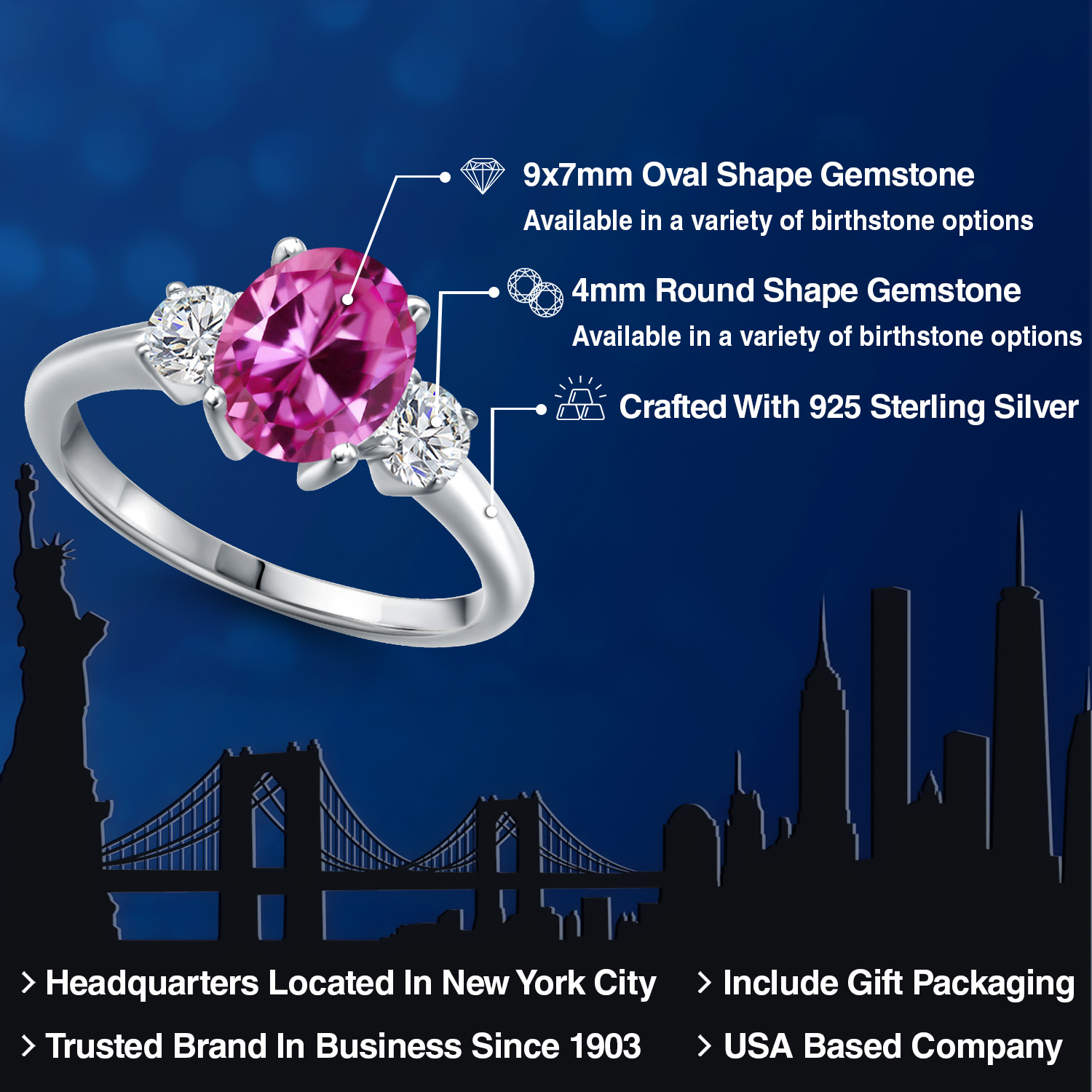 925 Sterling Silver Gemstone Birthstone and White Lab Grown Diamond 3-Stone Engagement Ring for Women | Oval 9X7MM and Round 4MM | Three Stone Wedding Anniversary Promise Ring | Sizes 5, 6, 7, 8, 9