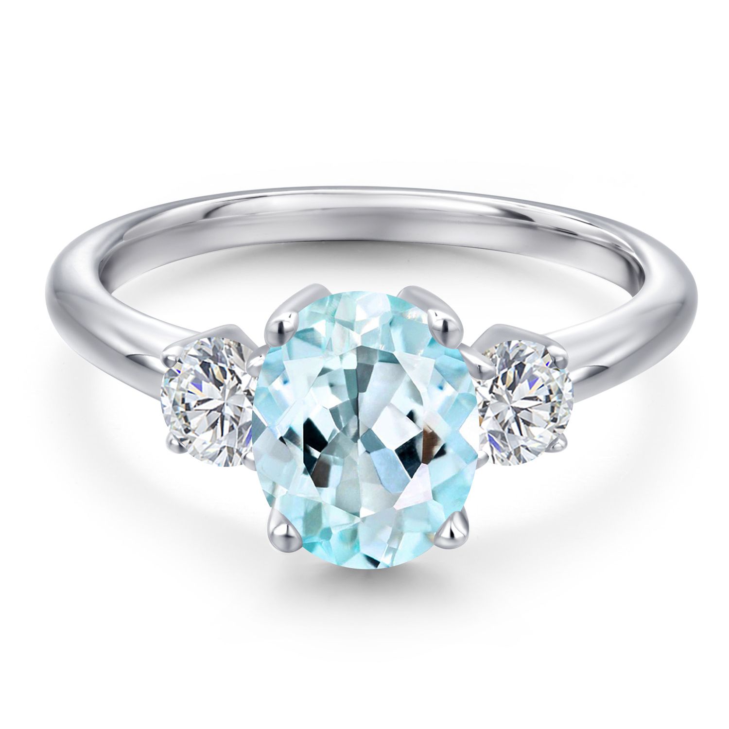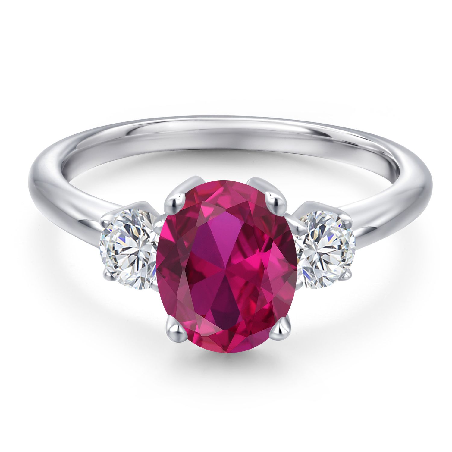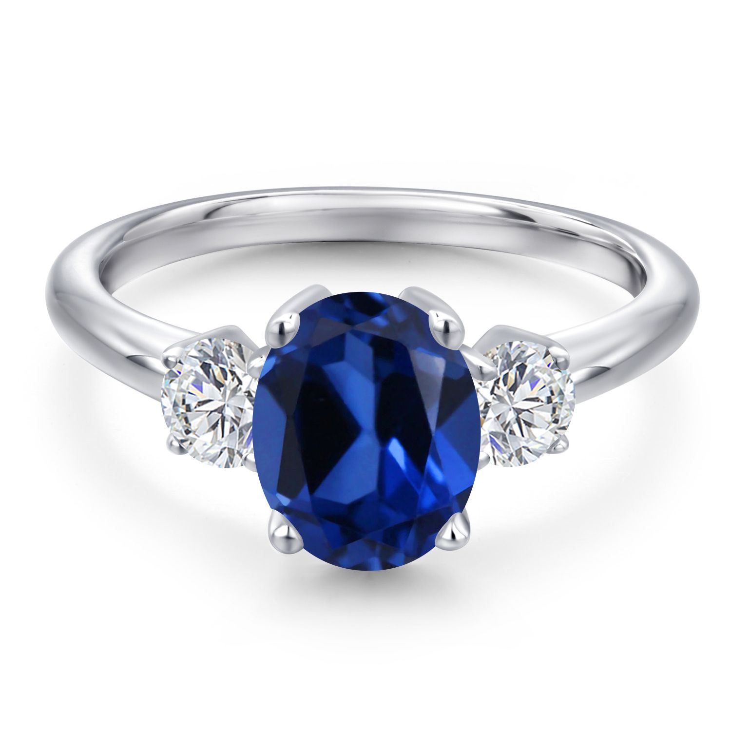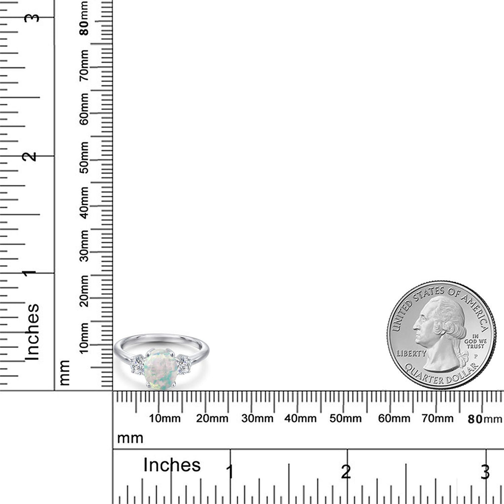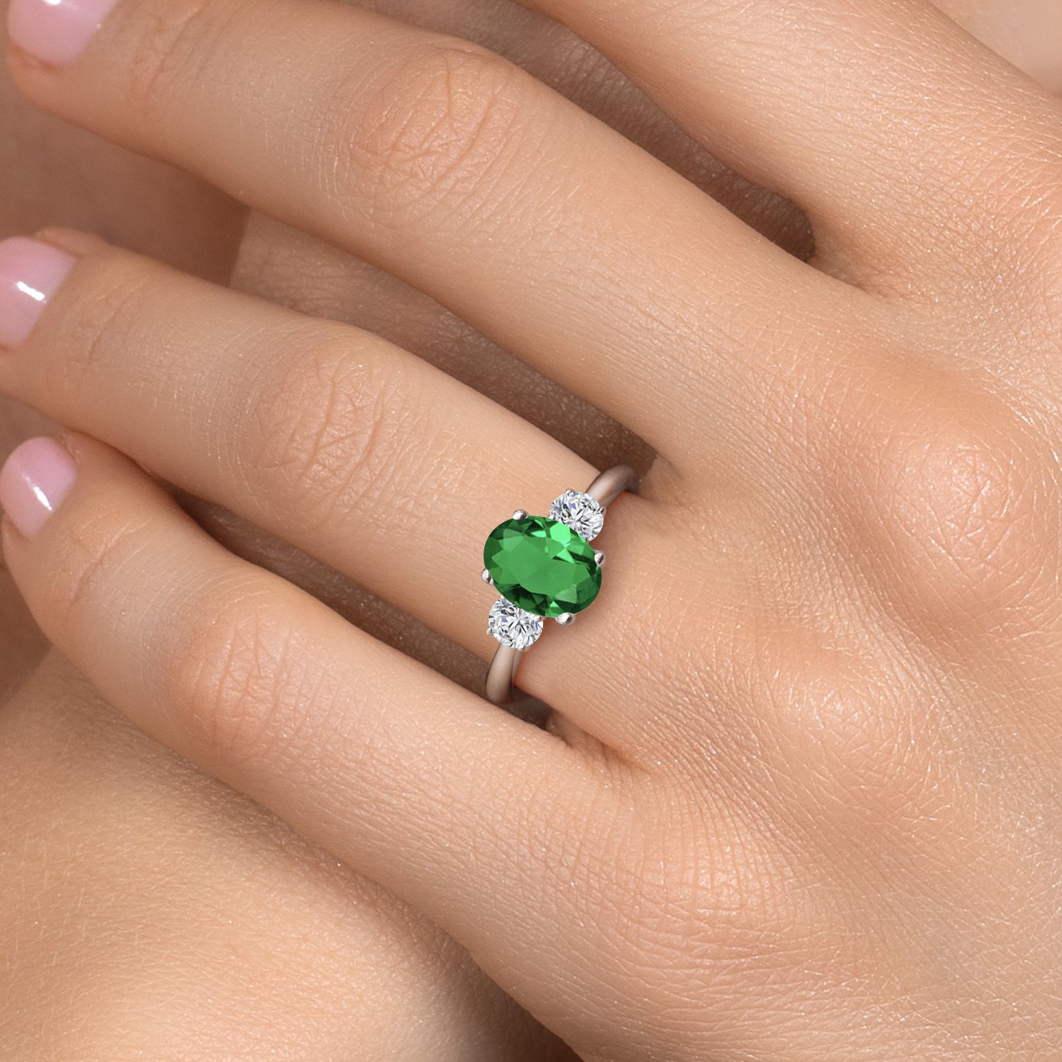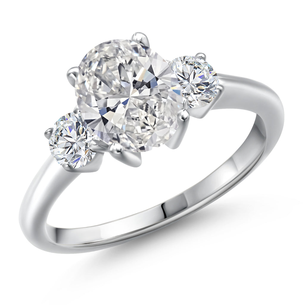 925 Sterling Silver Gemstone Birthstone and White Lab Grown Diamond 3-Stone Engagement Ring for Women | Oval 9X7MM and Round 4MM | Three Stone Wedding Anniversary Promise Ring | Sizes 5, 6, 7, 8, 9