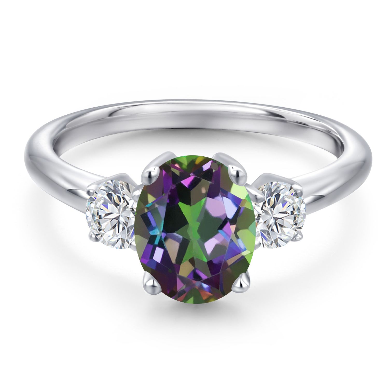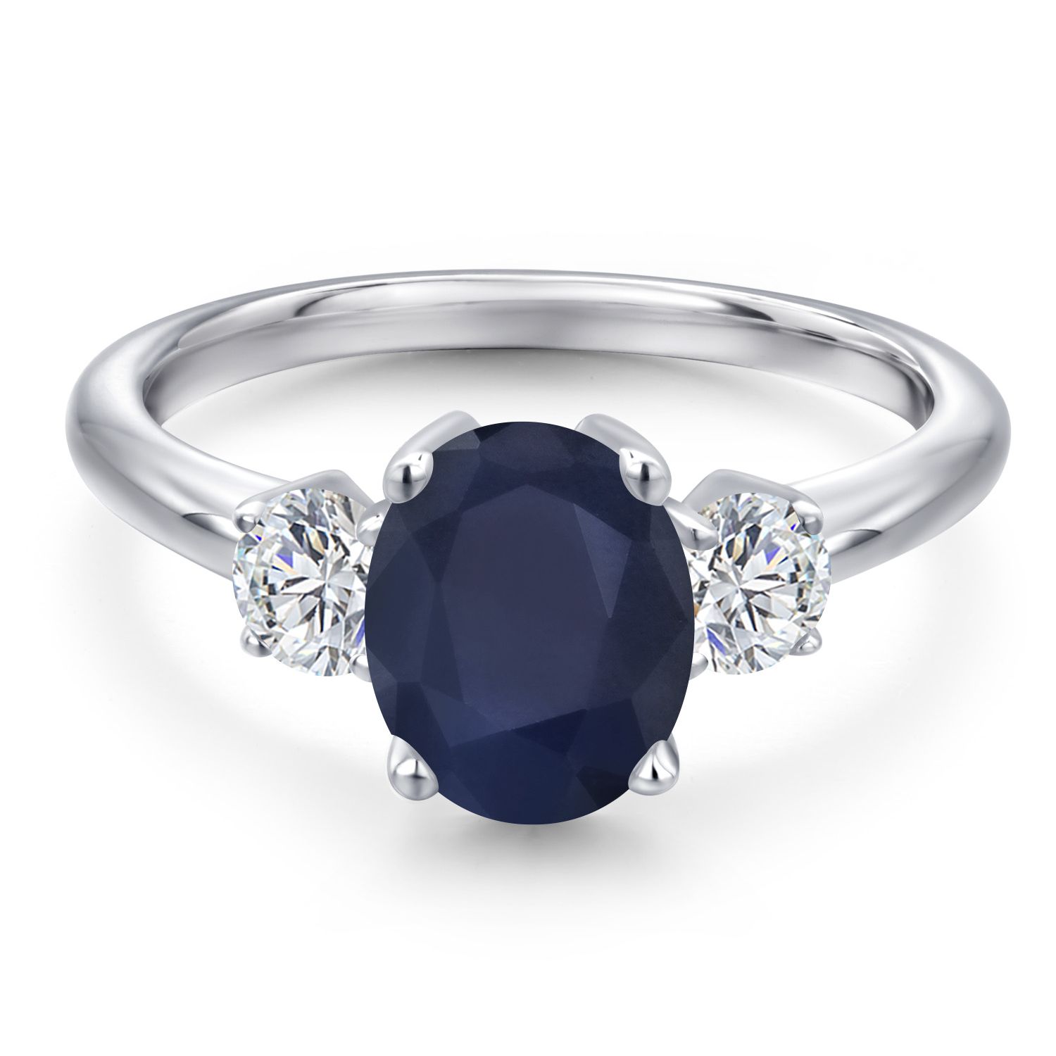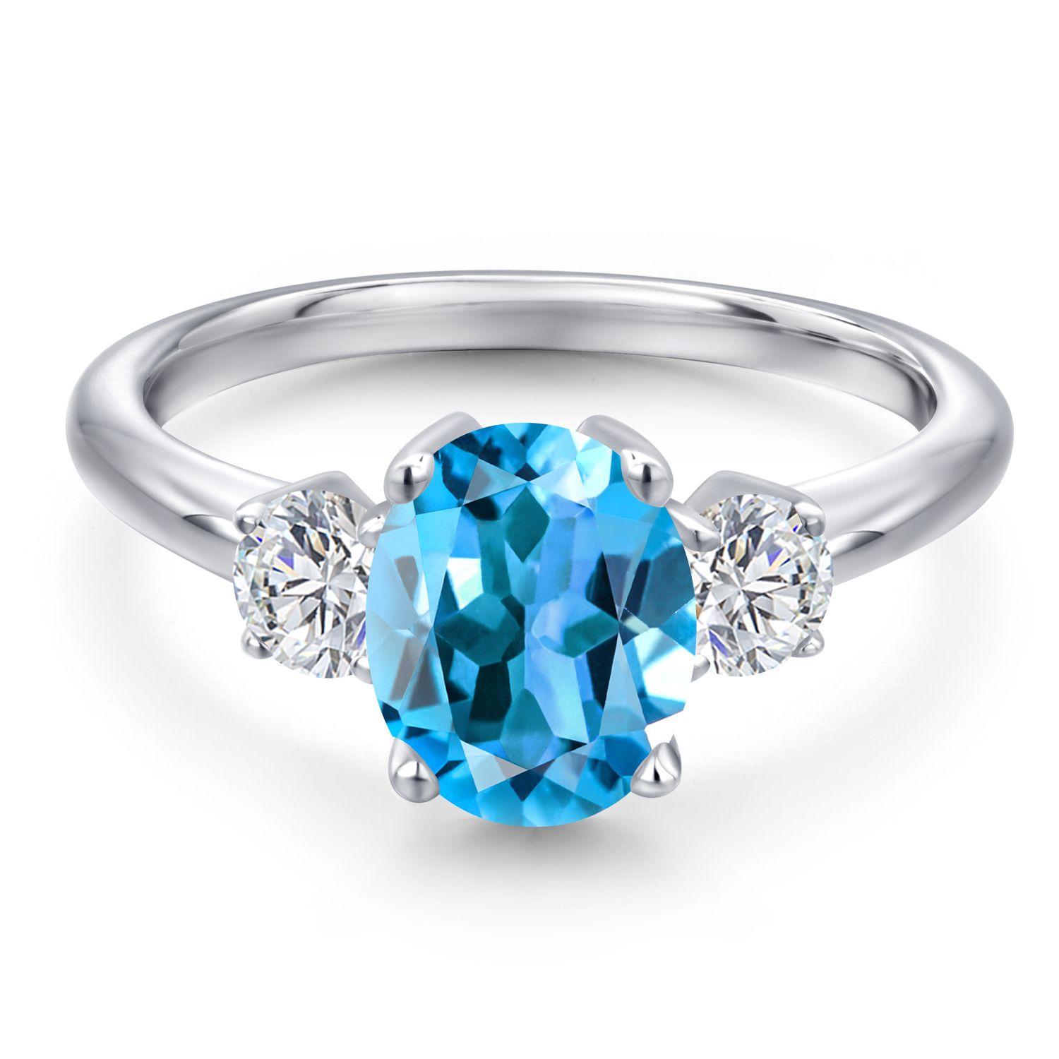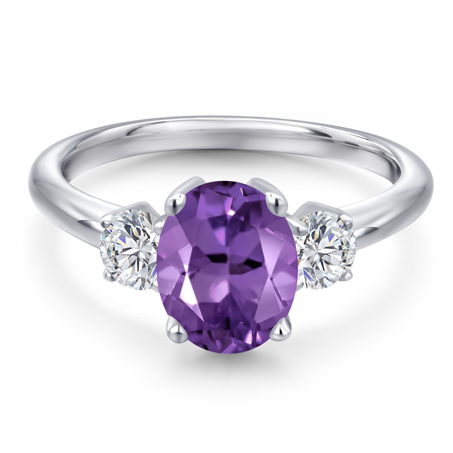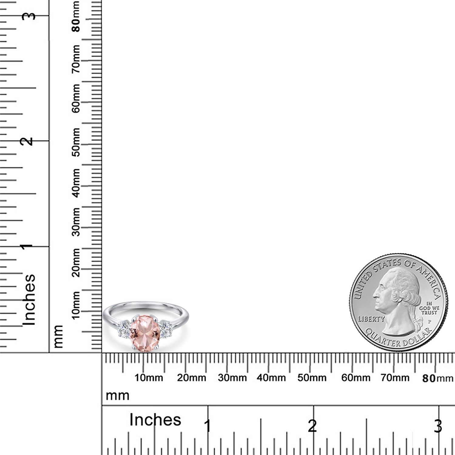 925 Sterling Silver Gemstone Birthstone and White Lab Grown Diamond 3-Stone Engagement Ring for Women | Oval 9X7MM and Round 4MM | Three Stone Wedding Anniversary Promise Ring | Sizes 5, 6, 7, 8, 9