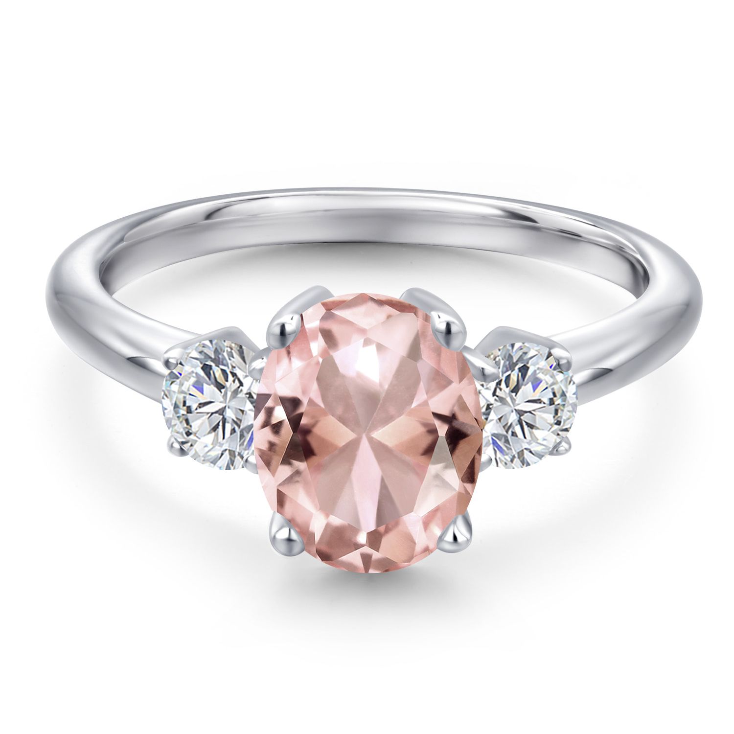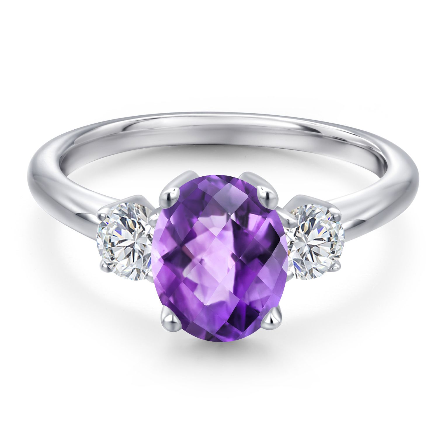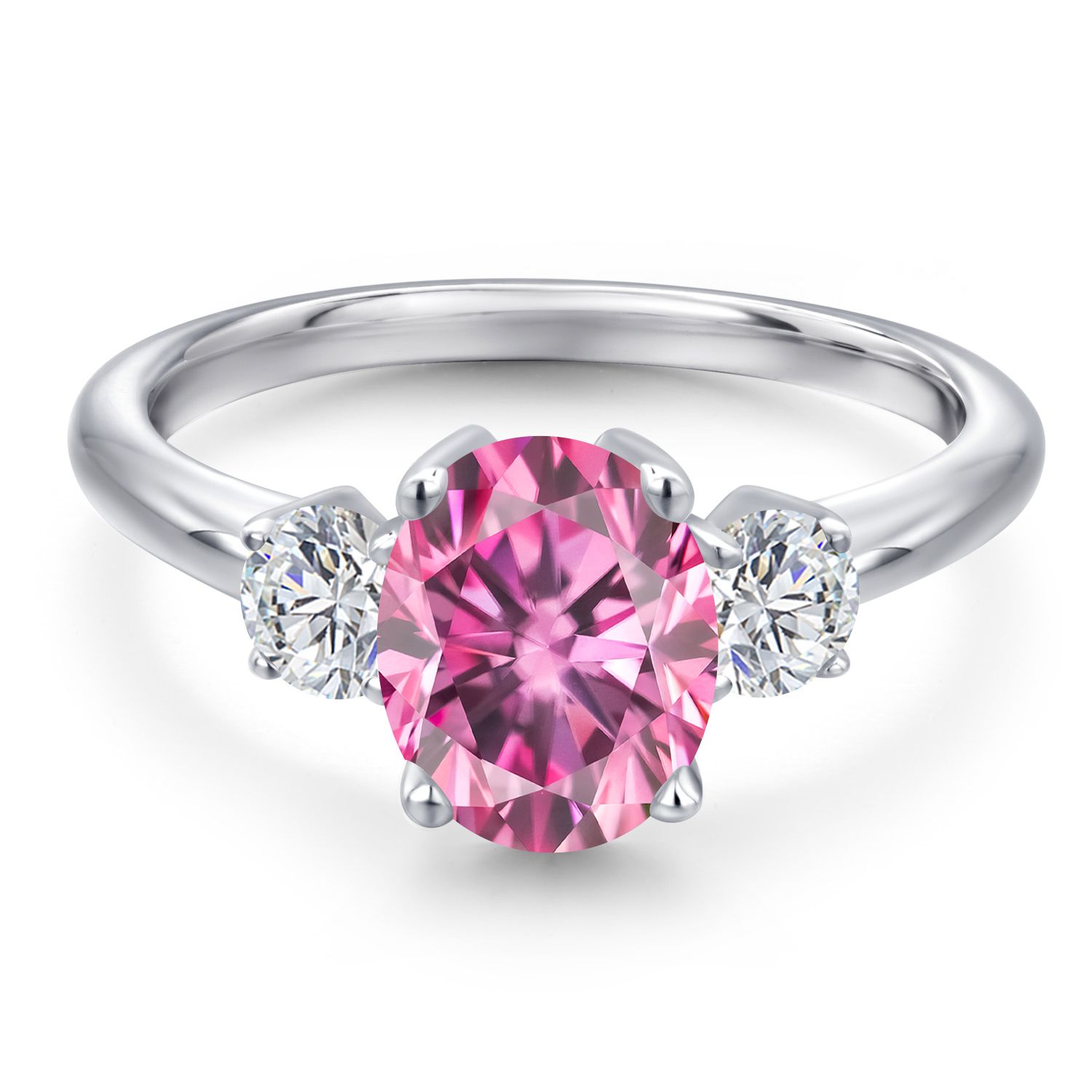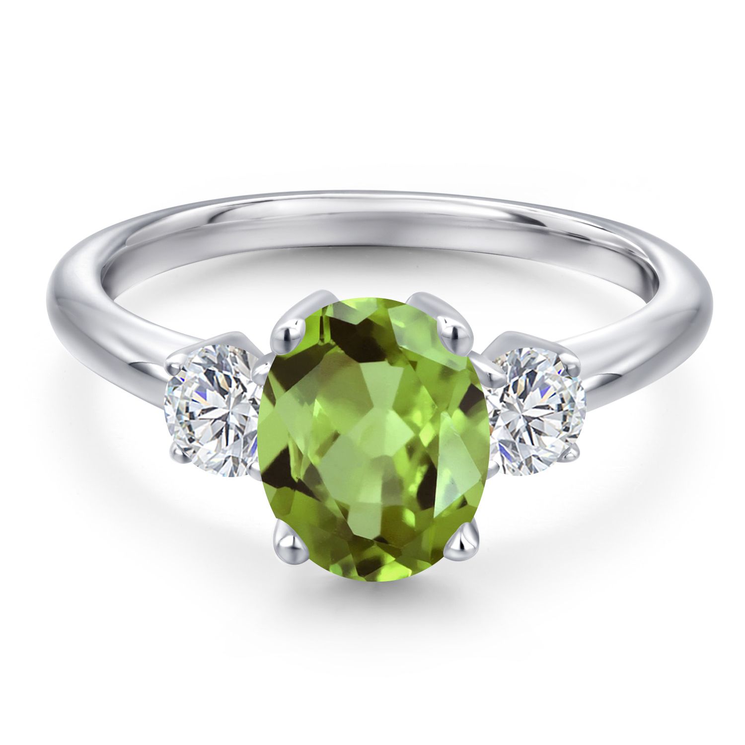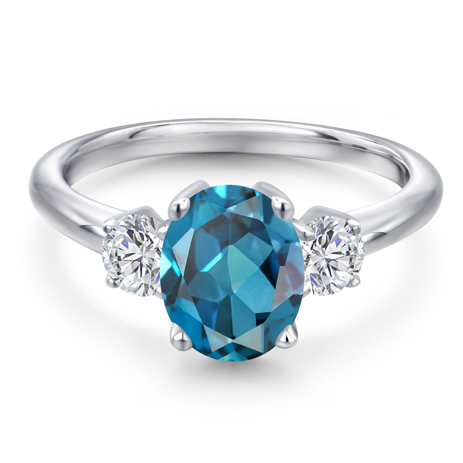 925 Sterling Silver Gemstone Birthstone and White Lab Grown Diamond 3-Stone Engagement Ring for Women | Oval 9X7MM and Round 4MM | Three Stone Wedding Anniversary Promise Ring | Sizes 5, 6, 7, 8, 9