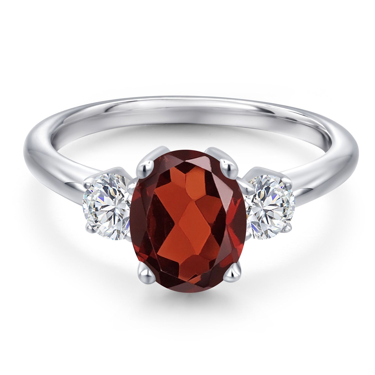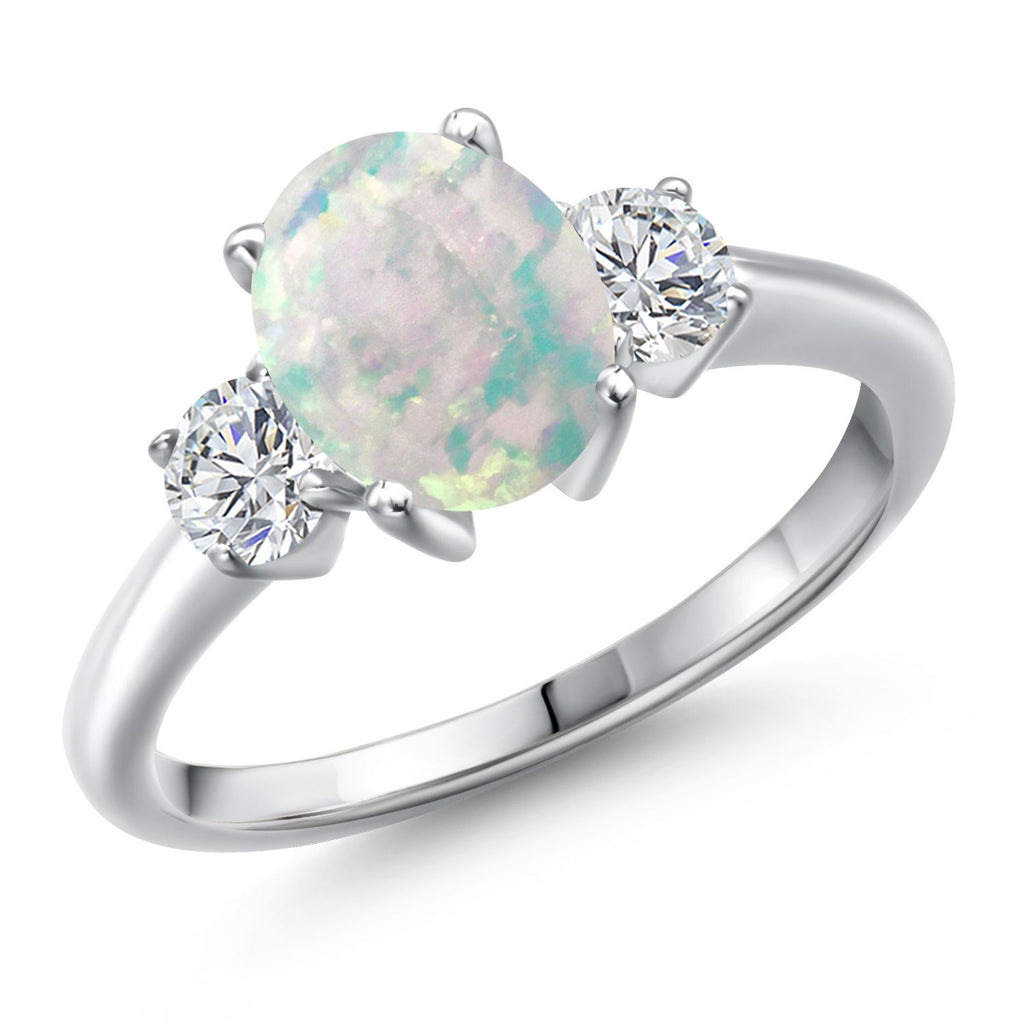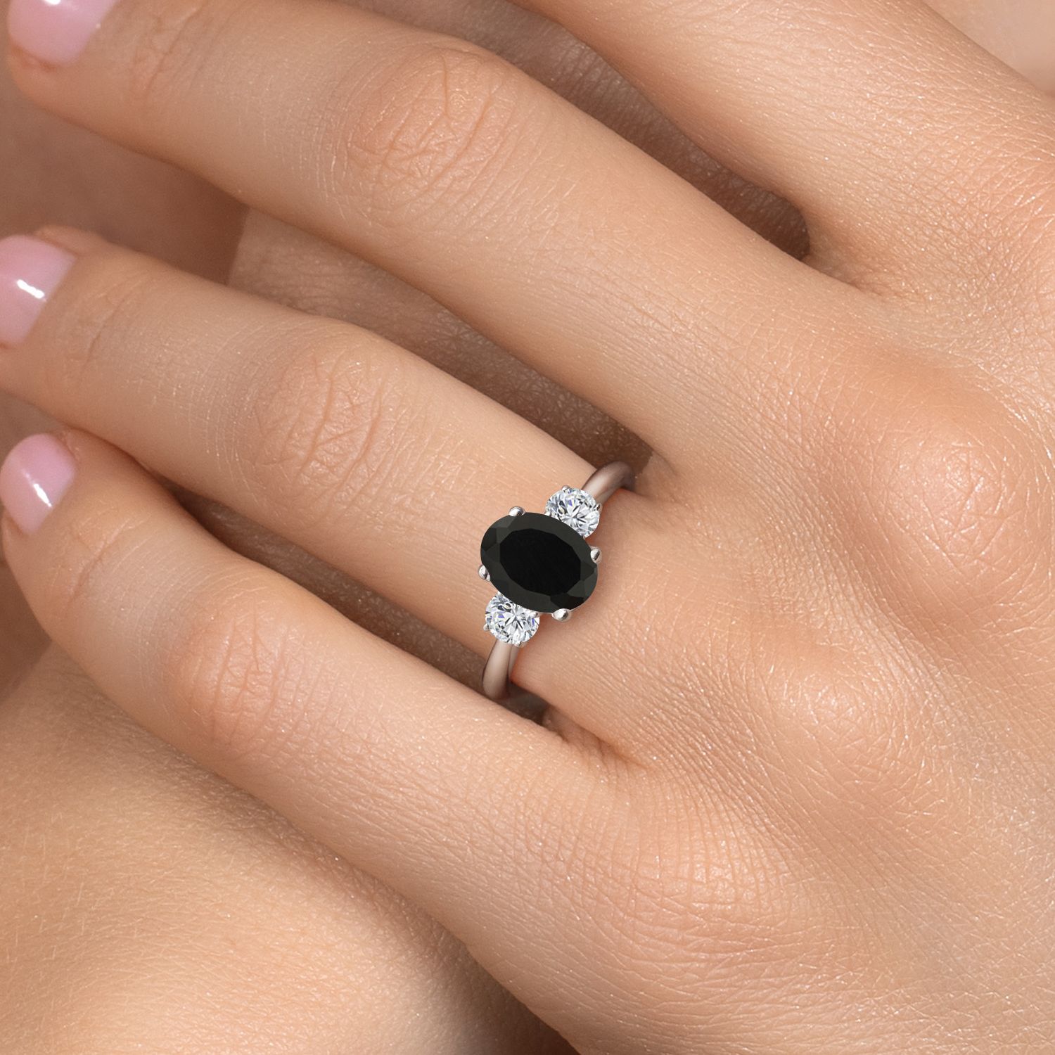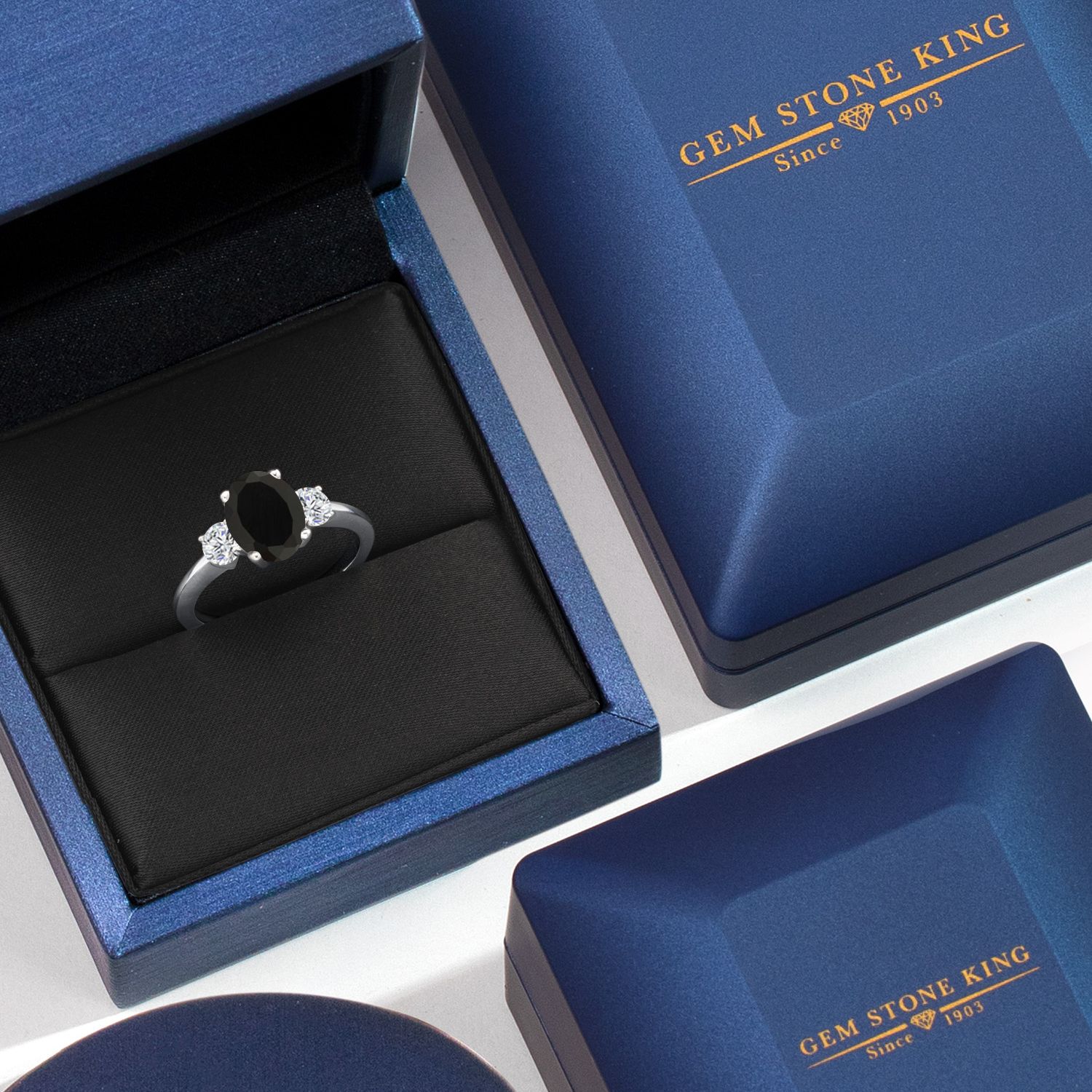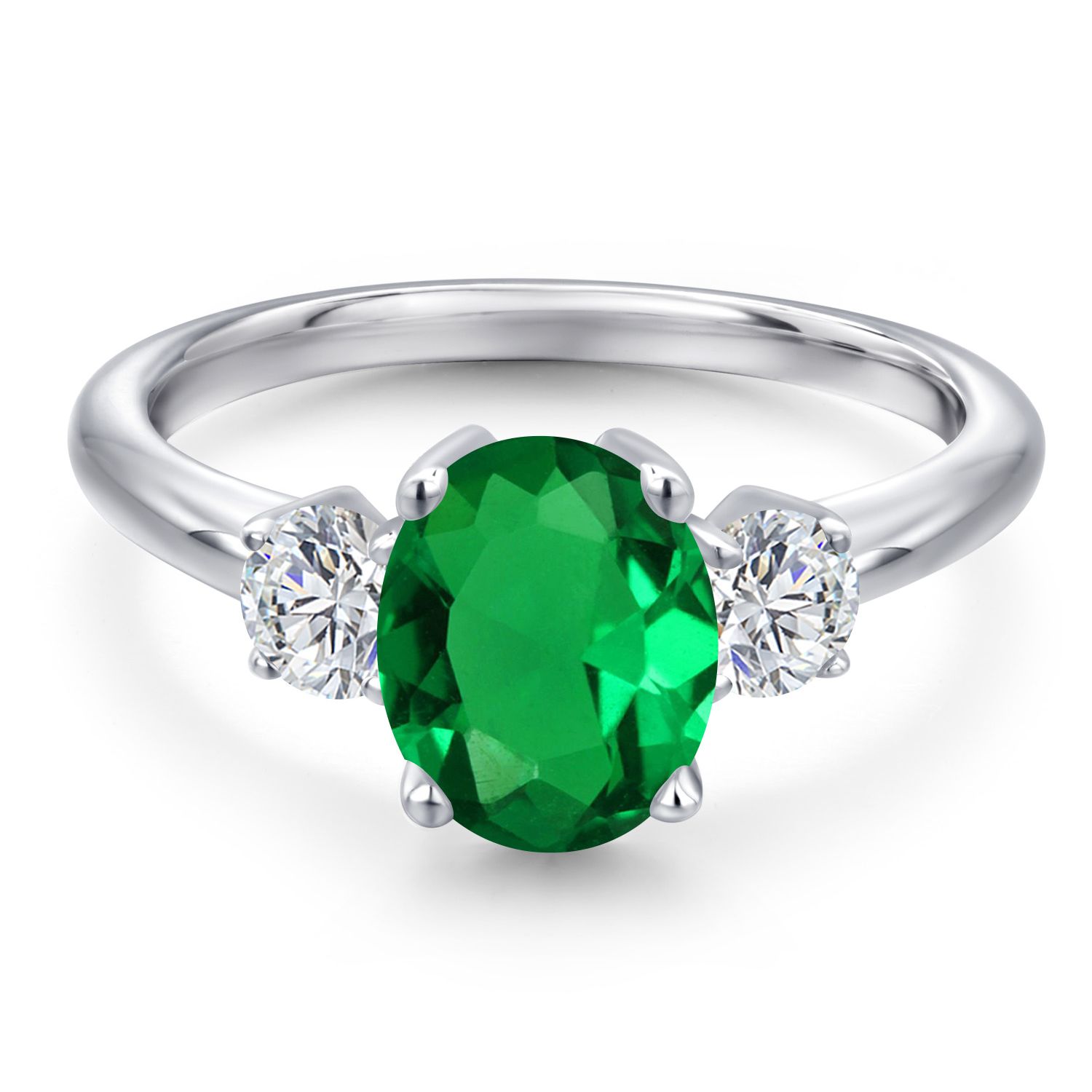 925 Sterling Silver Gemstone Birthstone and White Lab Grown Diamond 3-Stone Engagement Ring for Women | Oval 9X7MM and Round 4MM | Three Stone Wedding Anniversary Promise Ring | Sizes 5, 6, 7, 8, 9