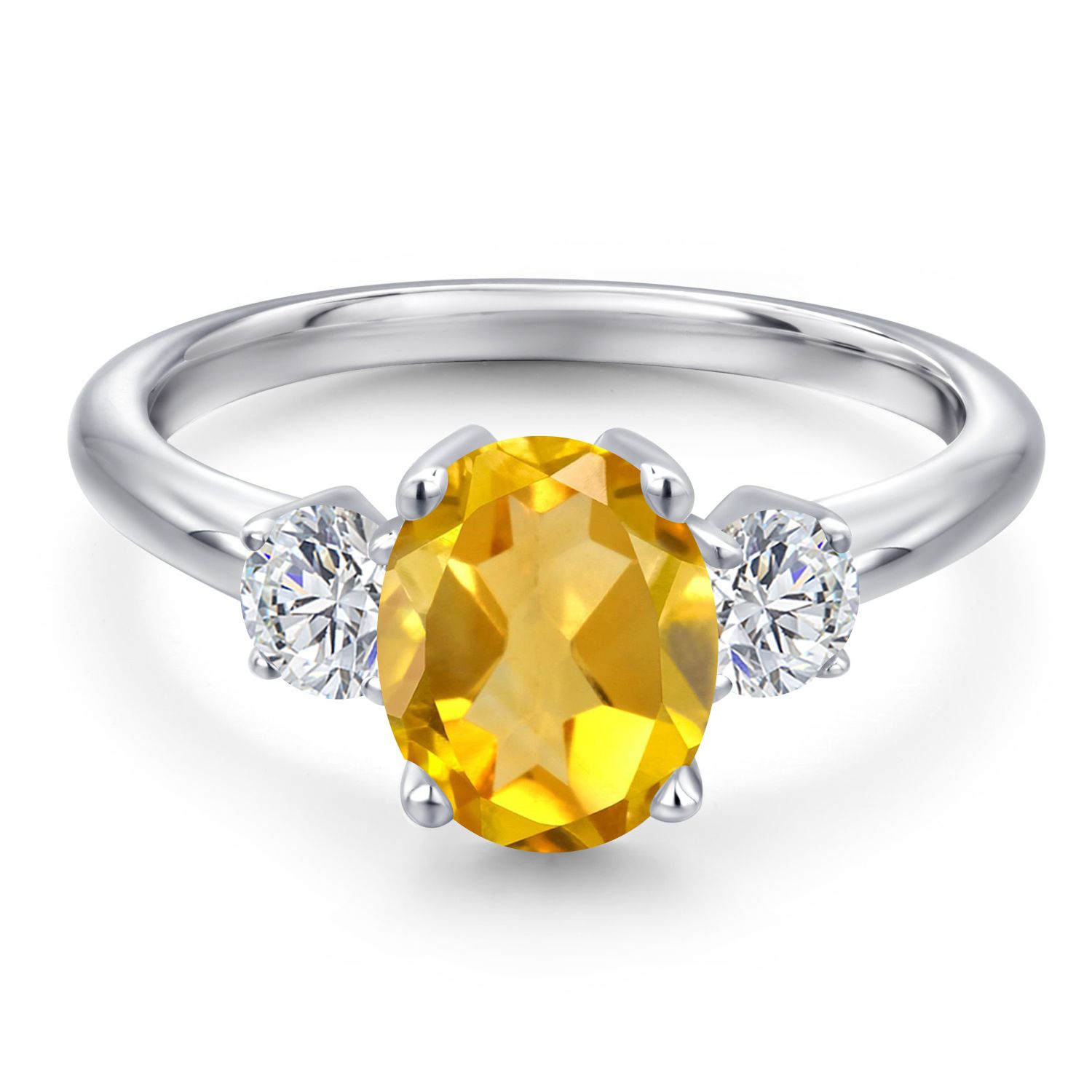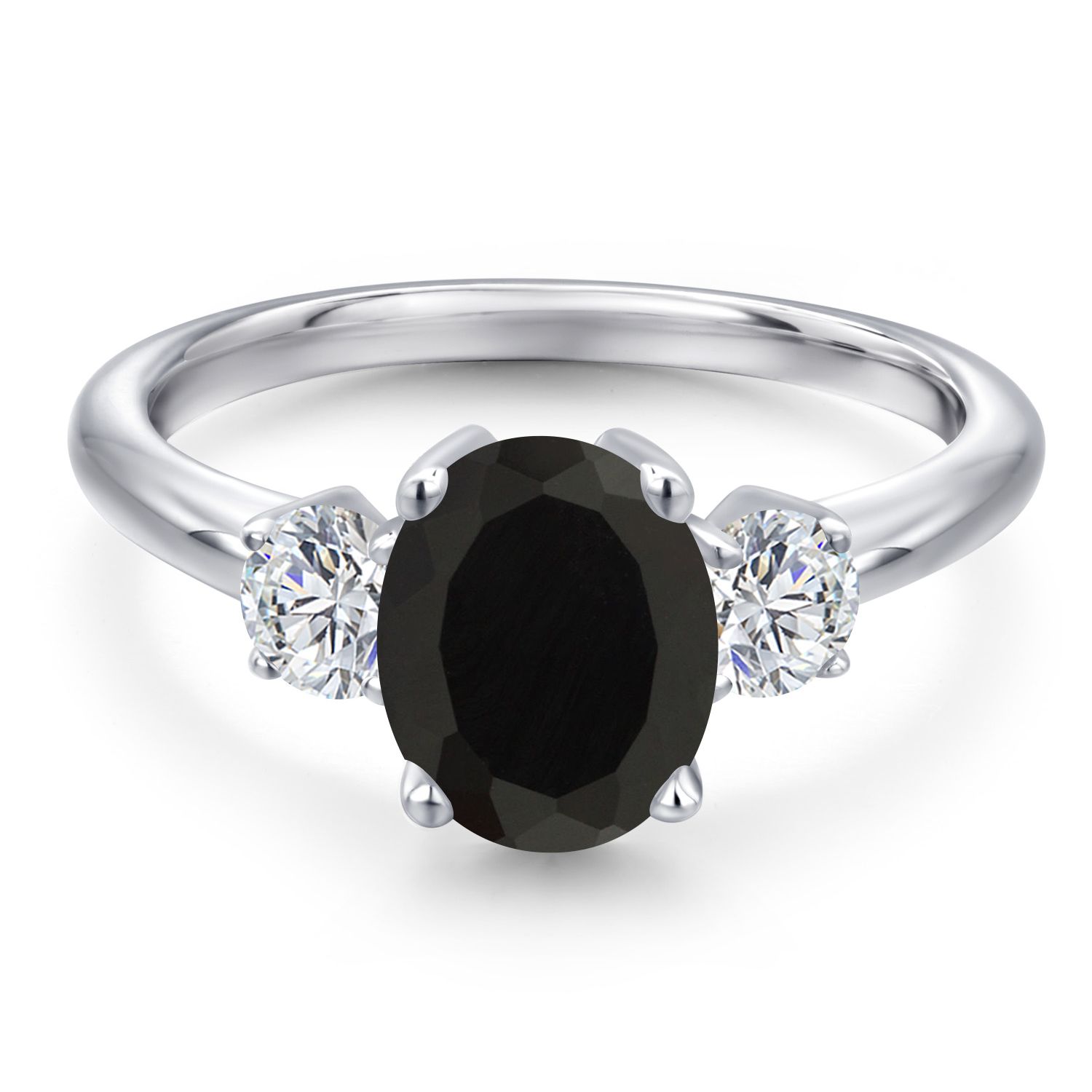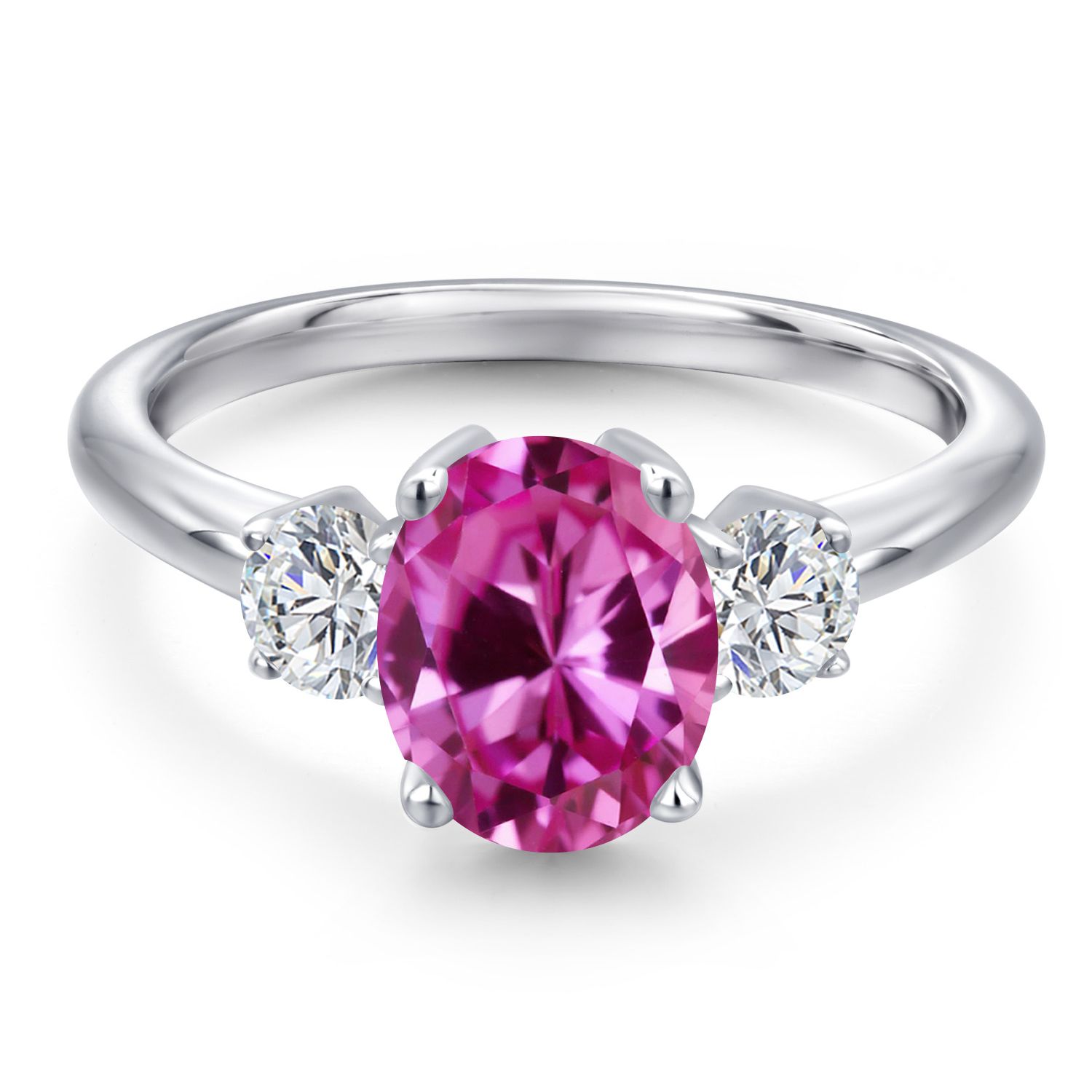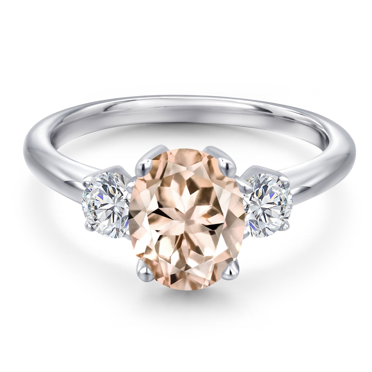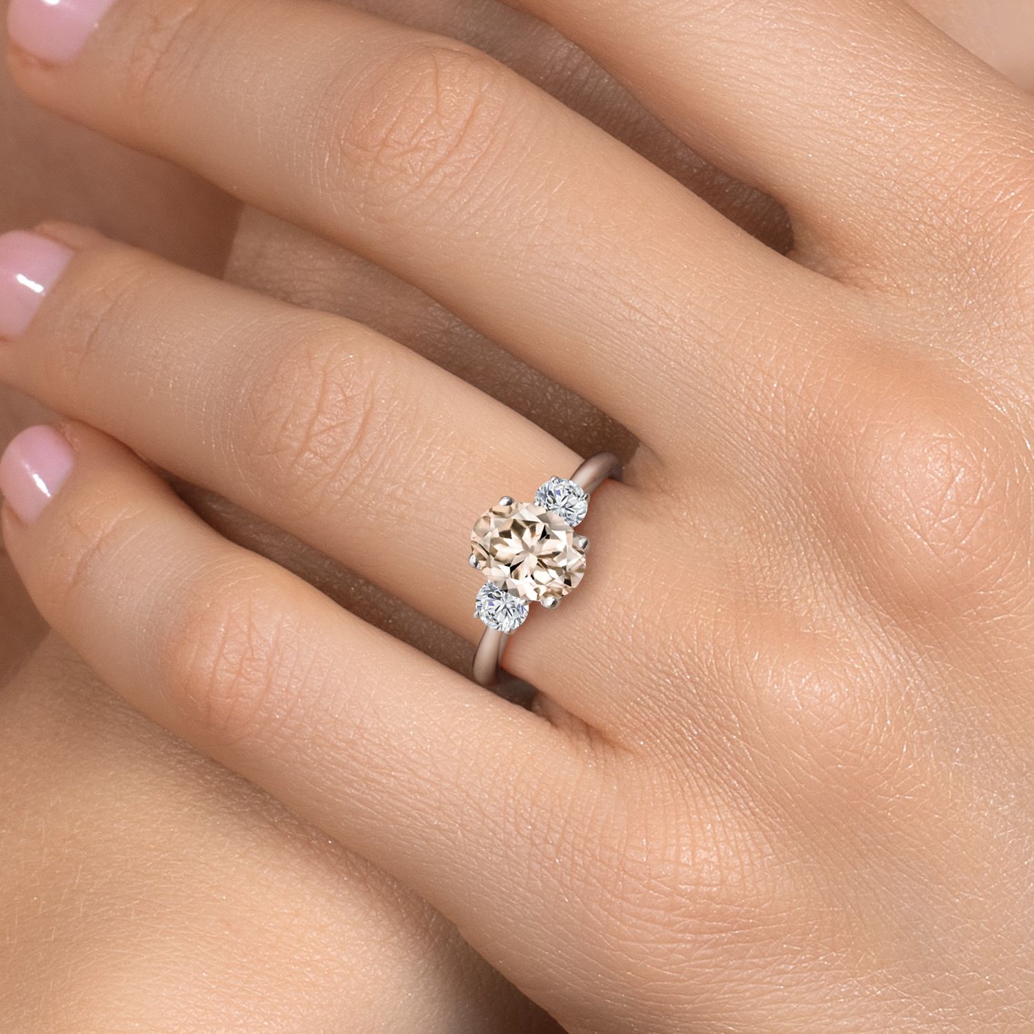 925 Sterling Silver Gemstone Birthstone and White Lab Grown Diamond 3-Stone Engagement Ring for Women | Oval 9X7MM and Round 4MM | Three Stone Wedding Anniversary Promise Ring | Sizes 5, 6, 7, 8, 9