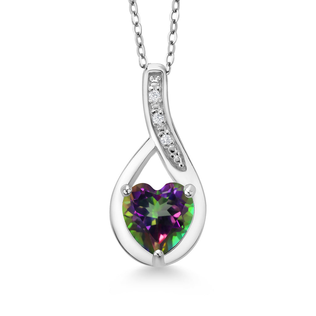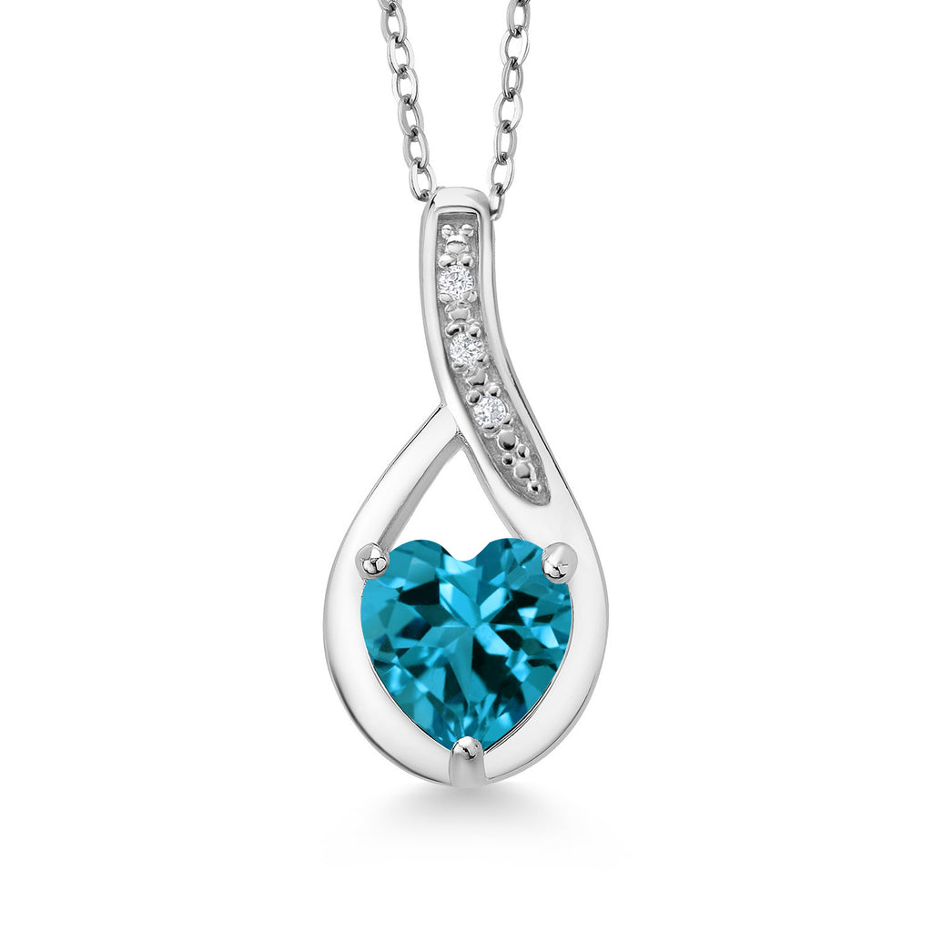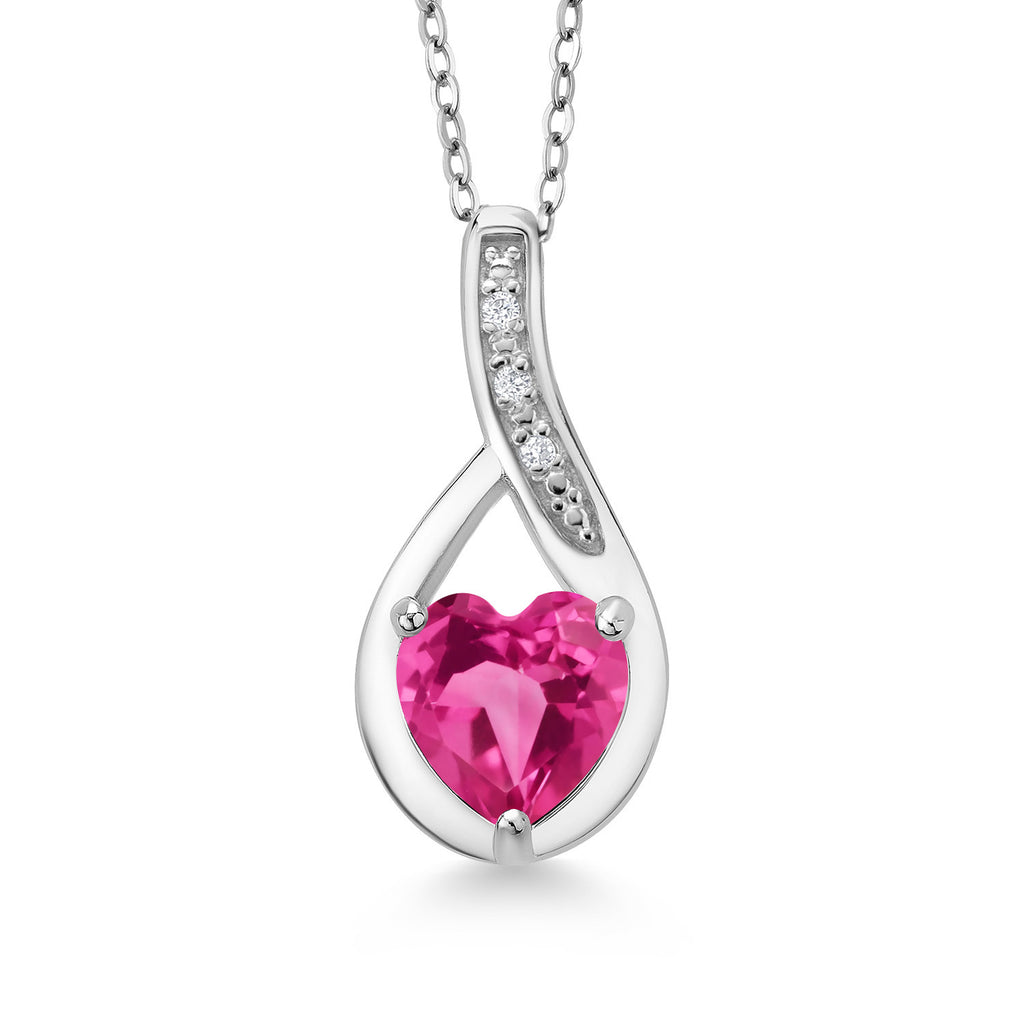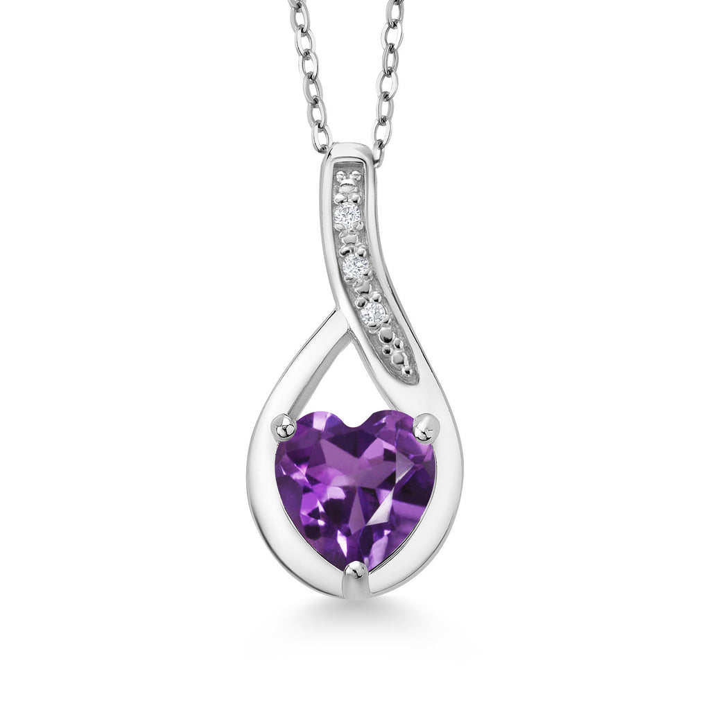Heart Pendant Necklace For Women | 925 Sterling Silver | Gemstone Birthstone and White Lab Grown Diamond Necklace | Heart Shape 7X7MM | With 18 Inch Chain