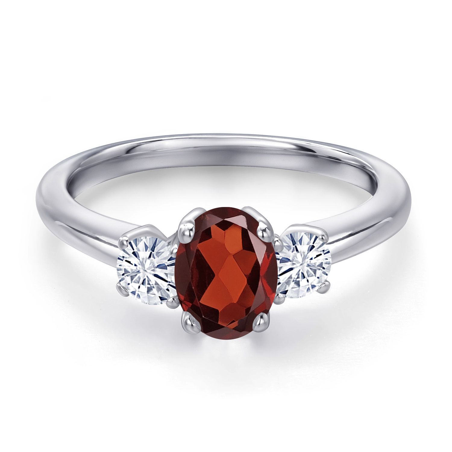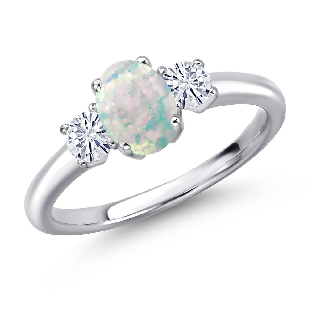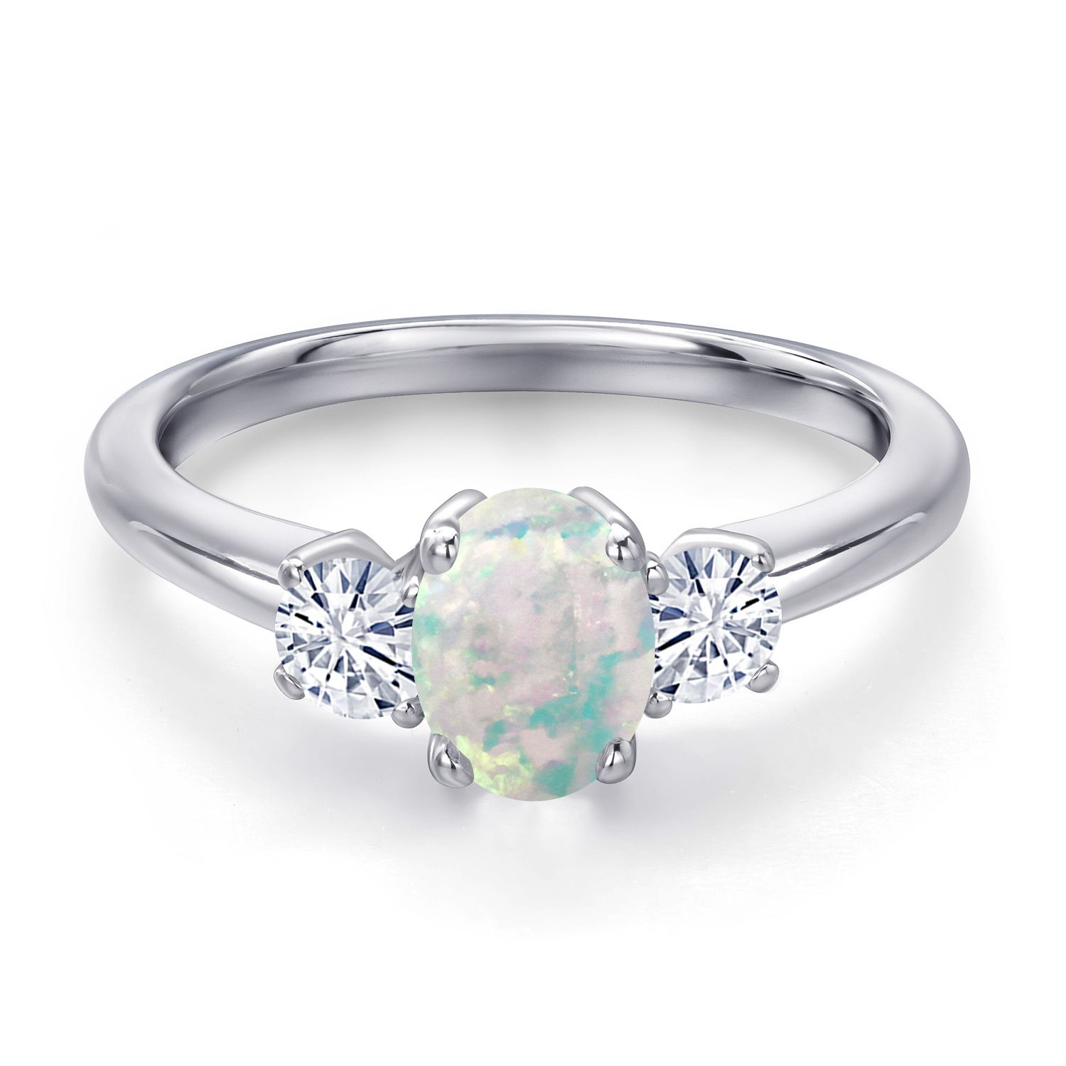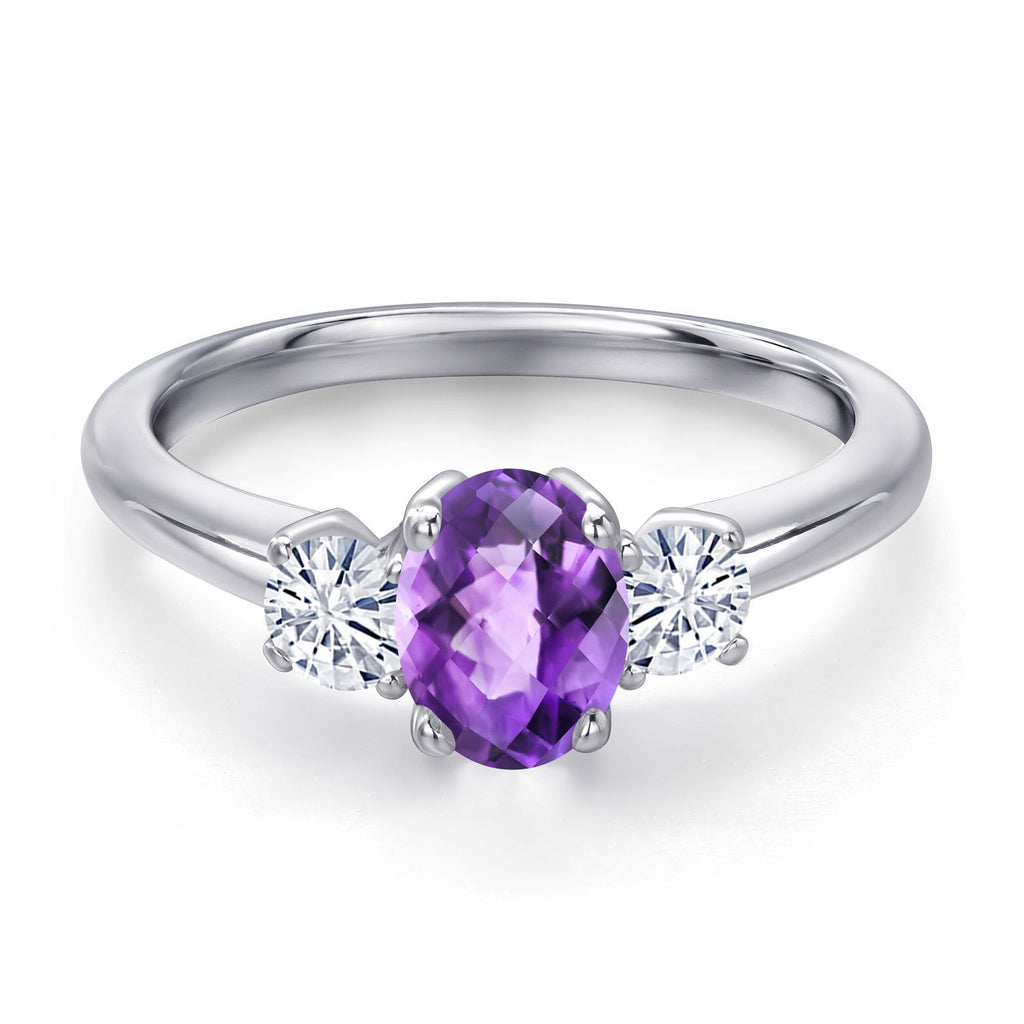 925 Sterling Silver Gemstone Birthstone and White Moissanite 3-Stone Engagement Ring for Women | Oval 7X5MM and Round 3MM | Wedding Anniversary Promise Ring | Sizes 5, 6, 7, 8, 9