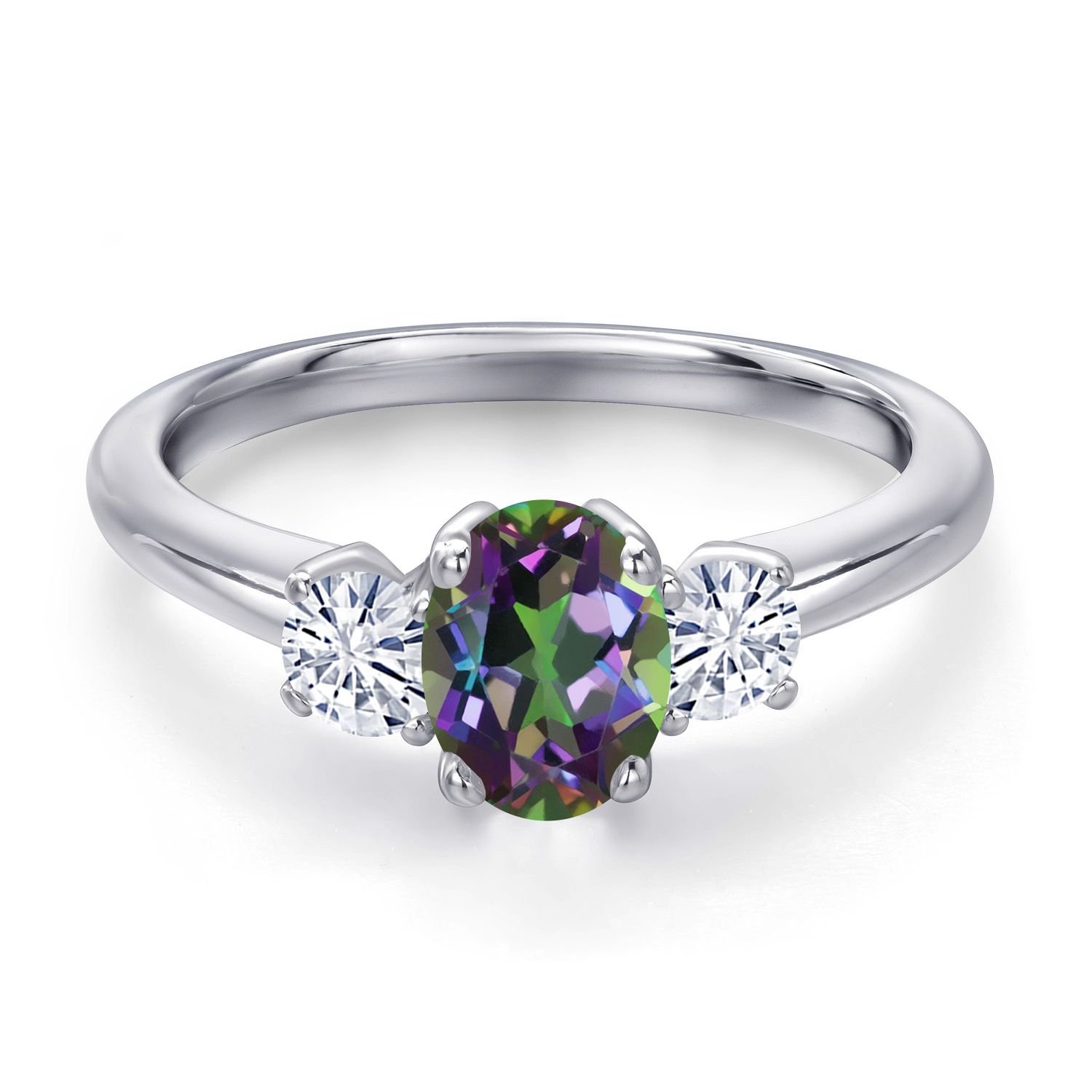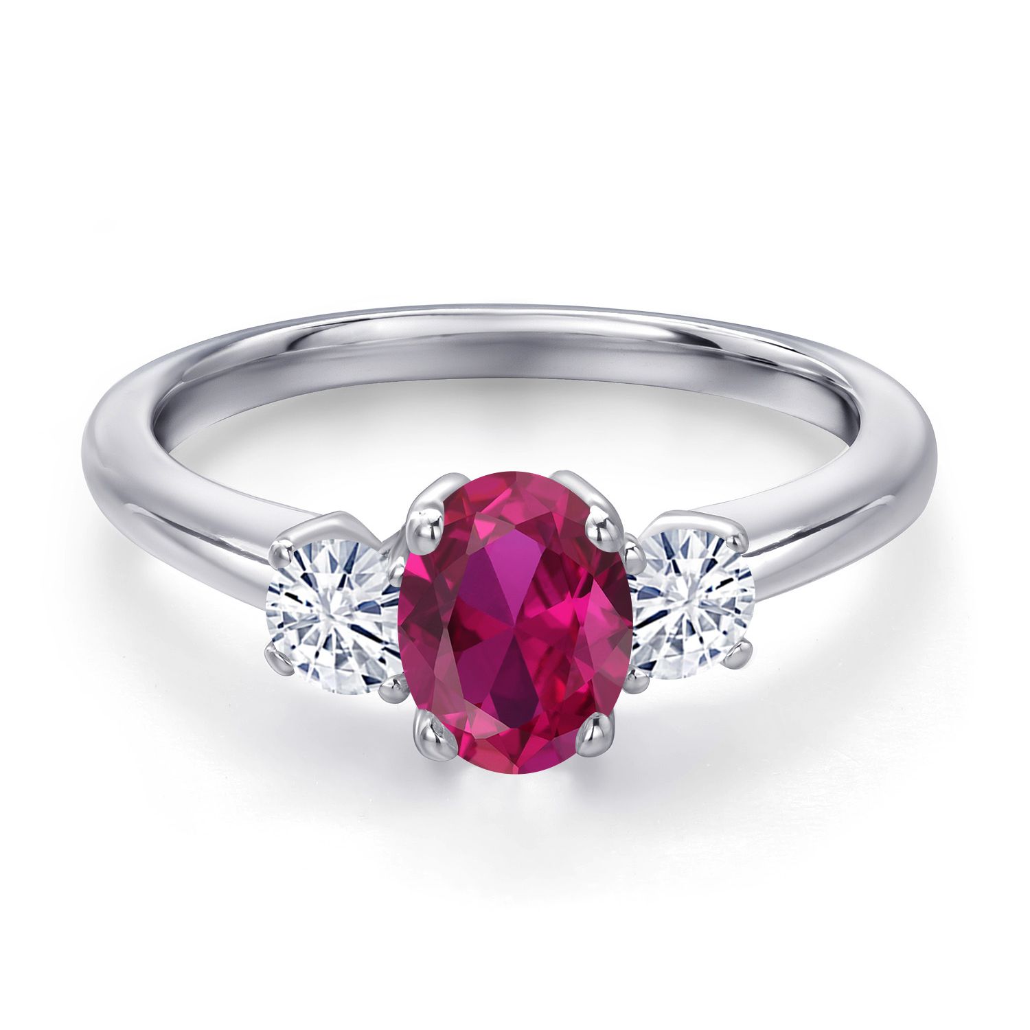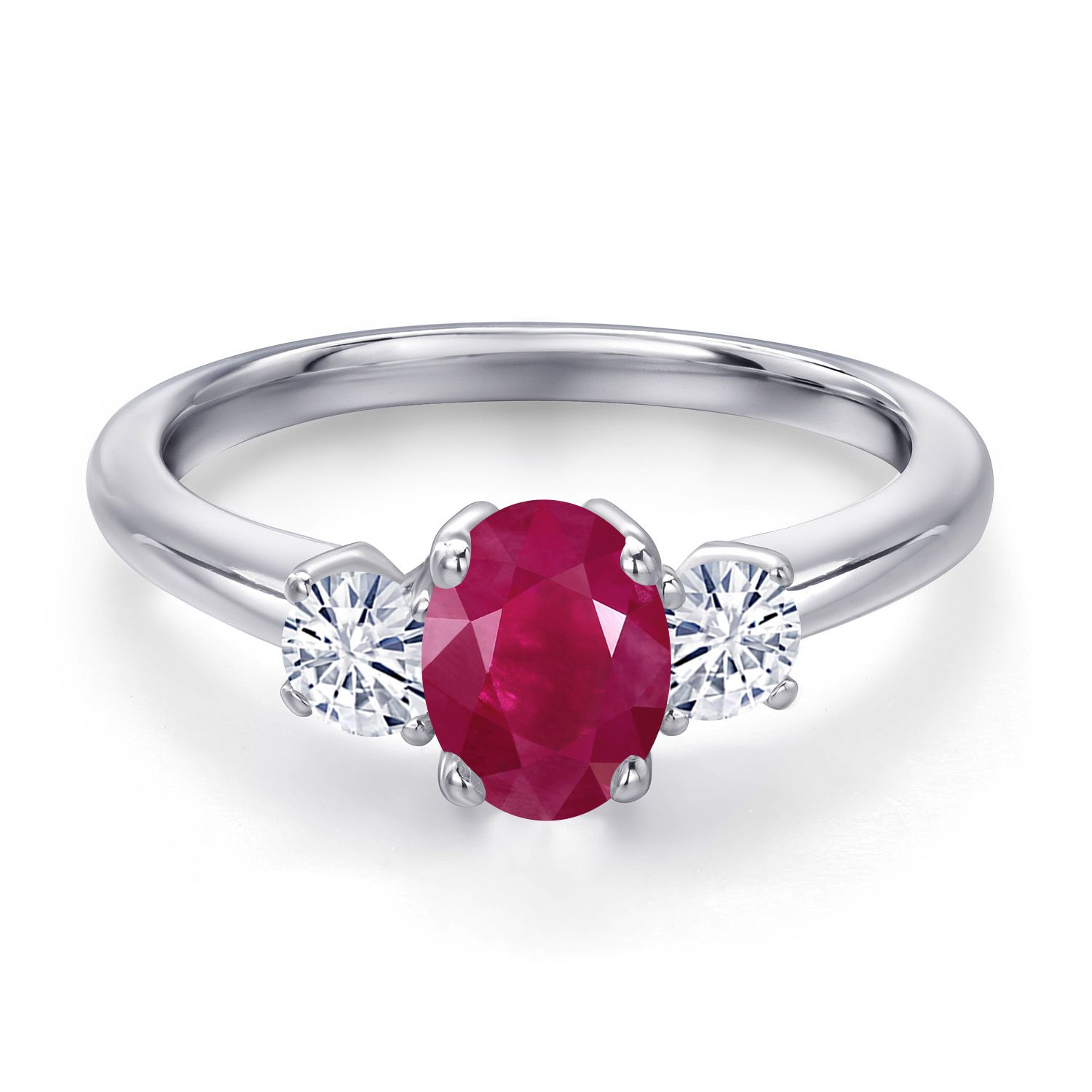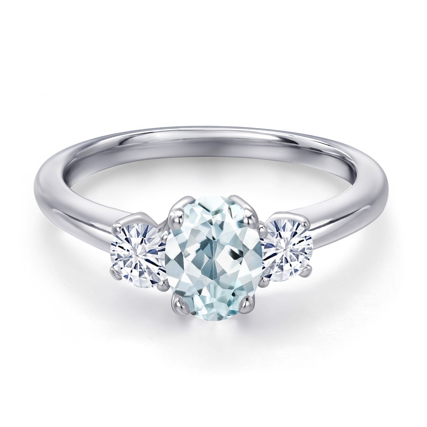 925 Sterling Silver Gemstone Birthstone and White Moissanite 3-Stone Engagement Ring for Women | Oval 7X5MM and Round 3MM | Wedding Anniversary Promise Ring | Sizes 5, 6, 7, 8, 9