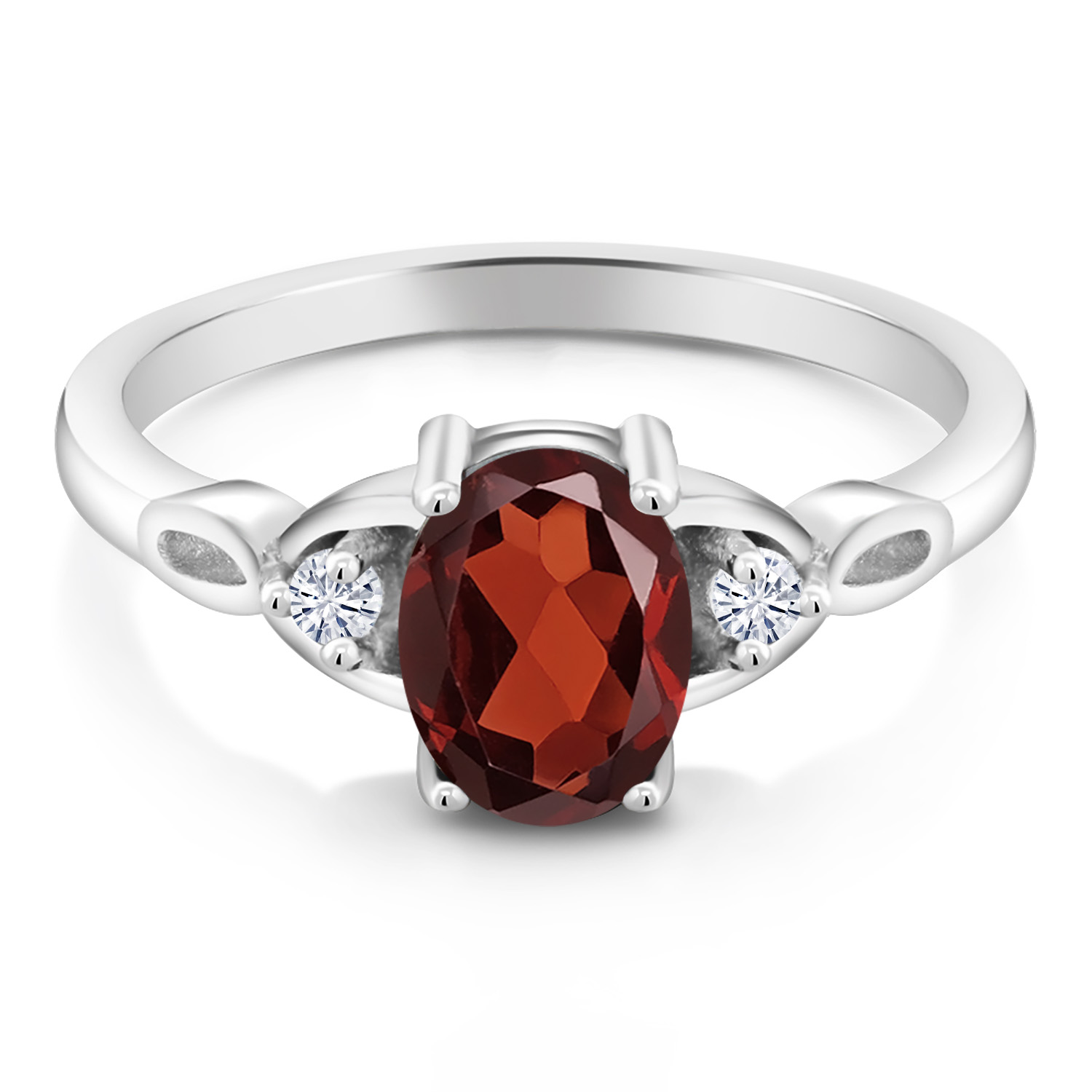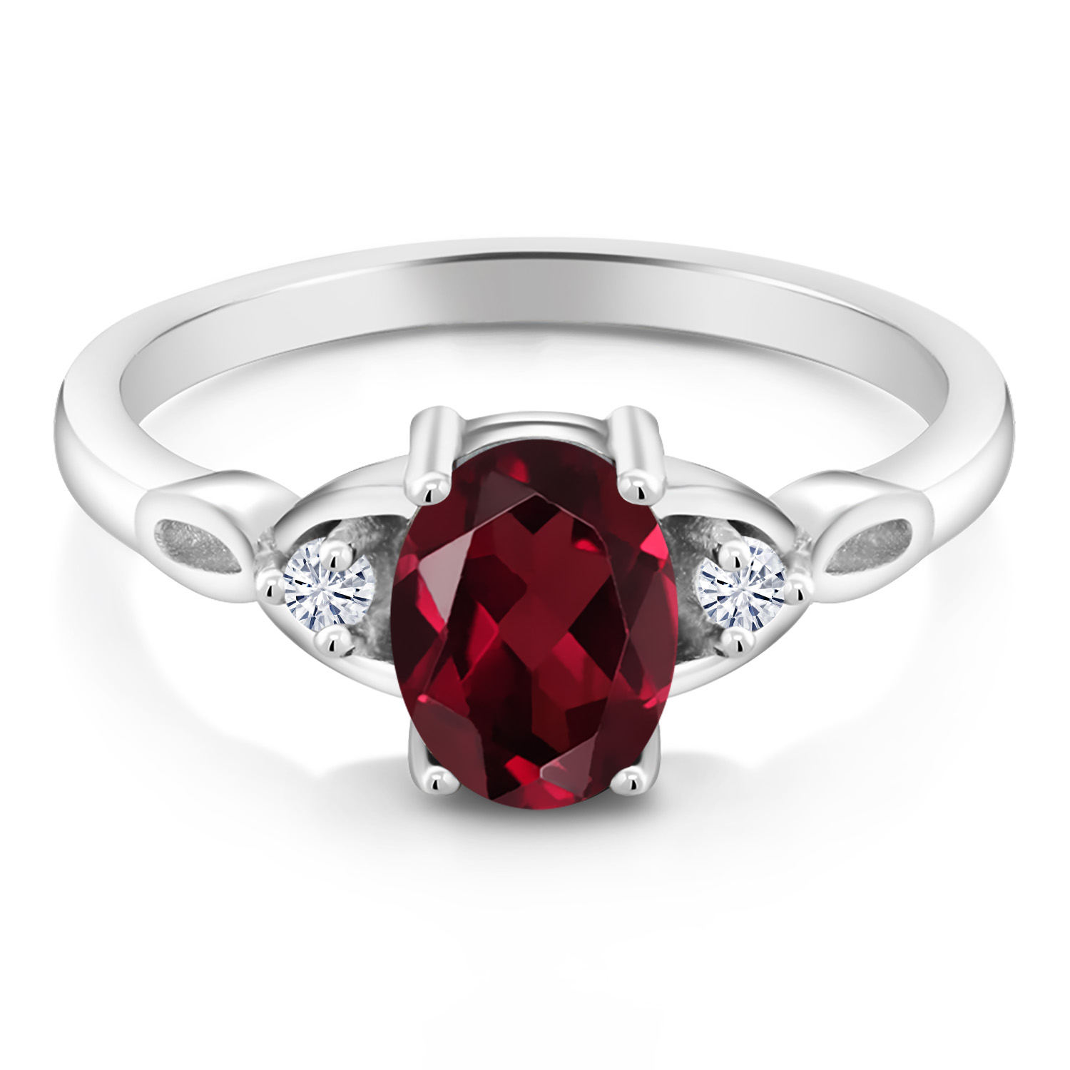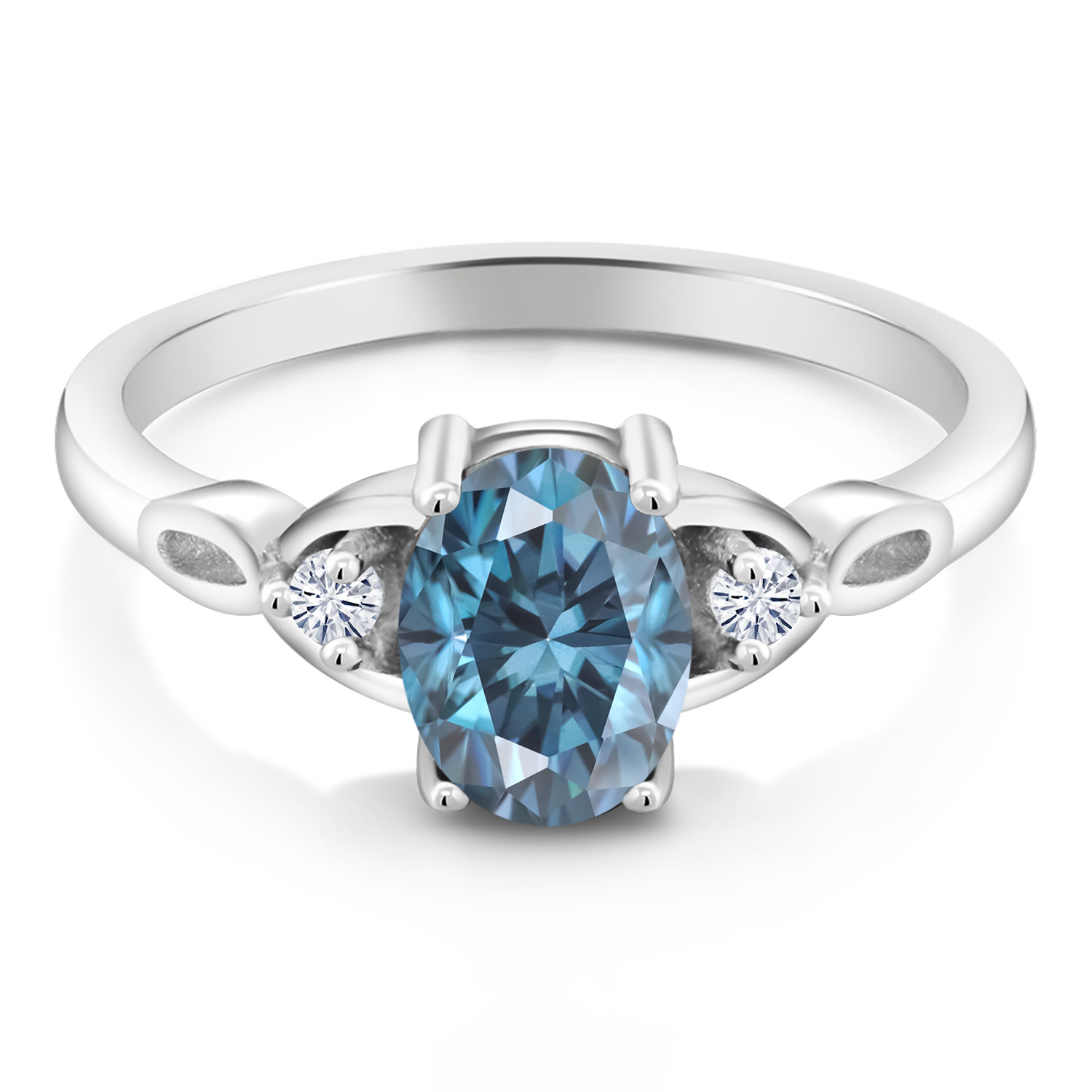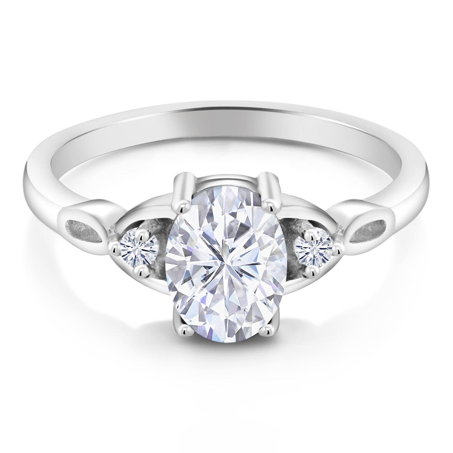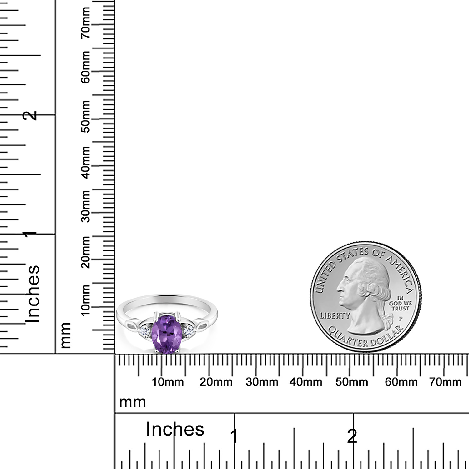 925 Sterling Silver Gemstone Birthstone and White Moissanite 3-Stone Ring for Women | Oval 8X6MM with 2MM Round Accents | Three Stone Wedding Anniversary Engagement Promise Ring | Sizes 5-9