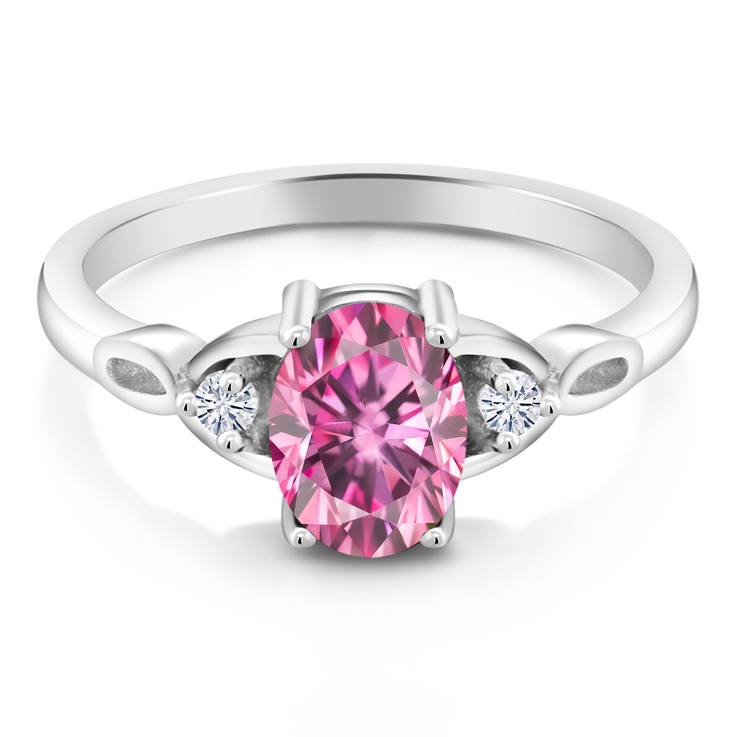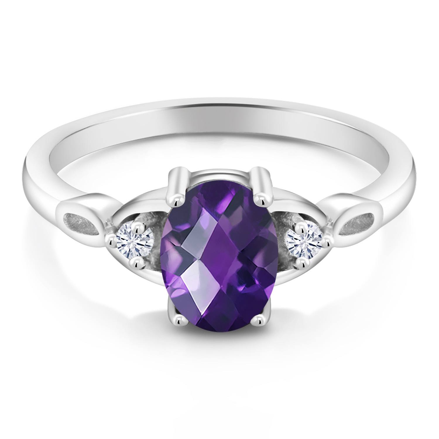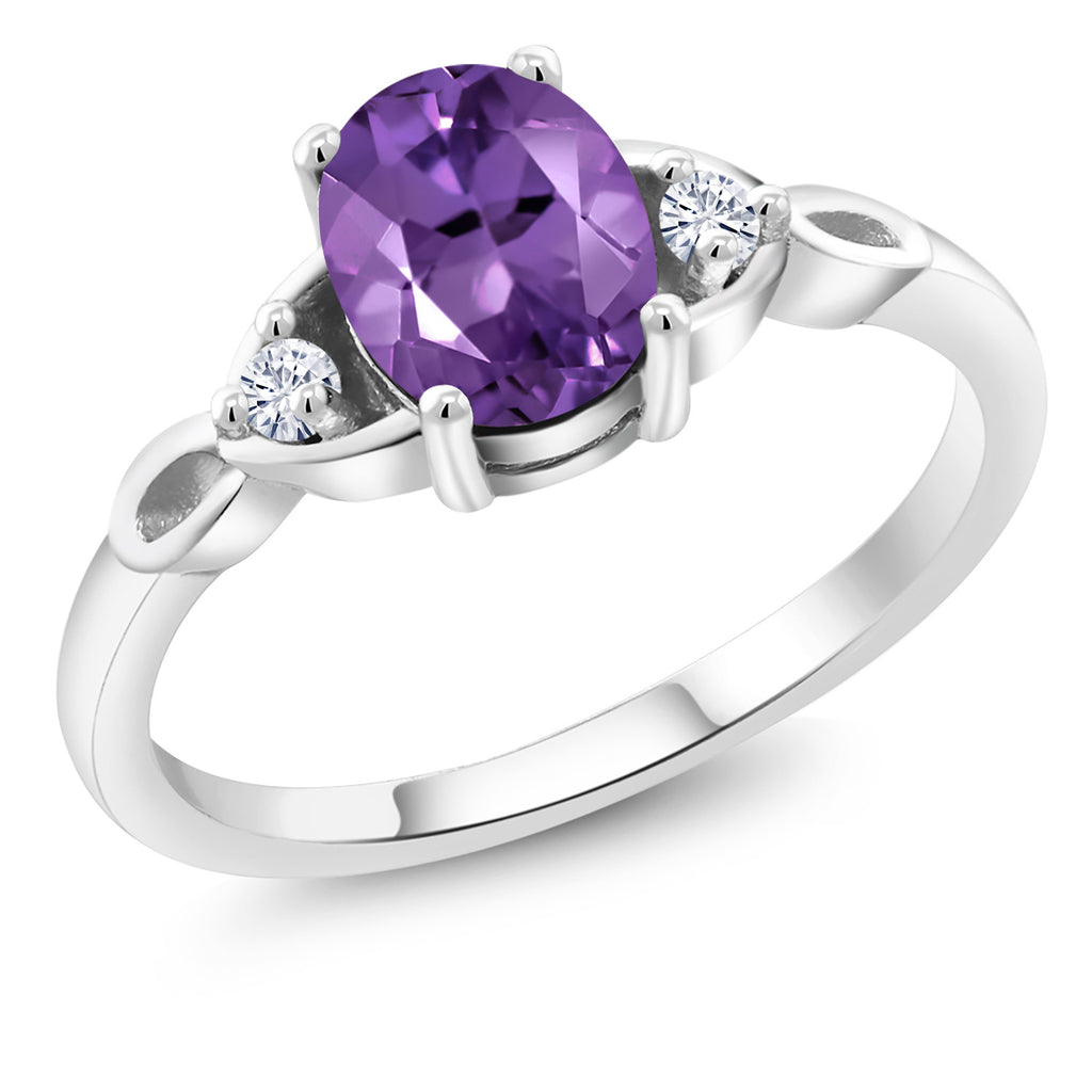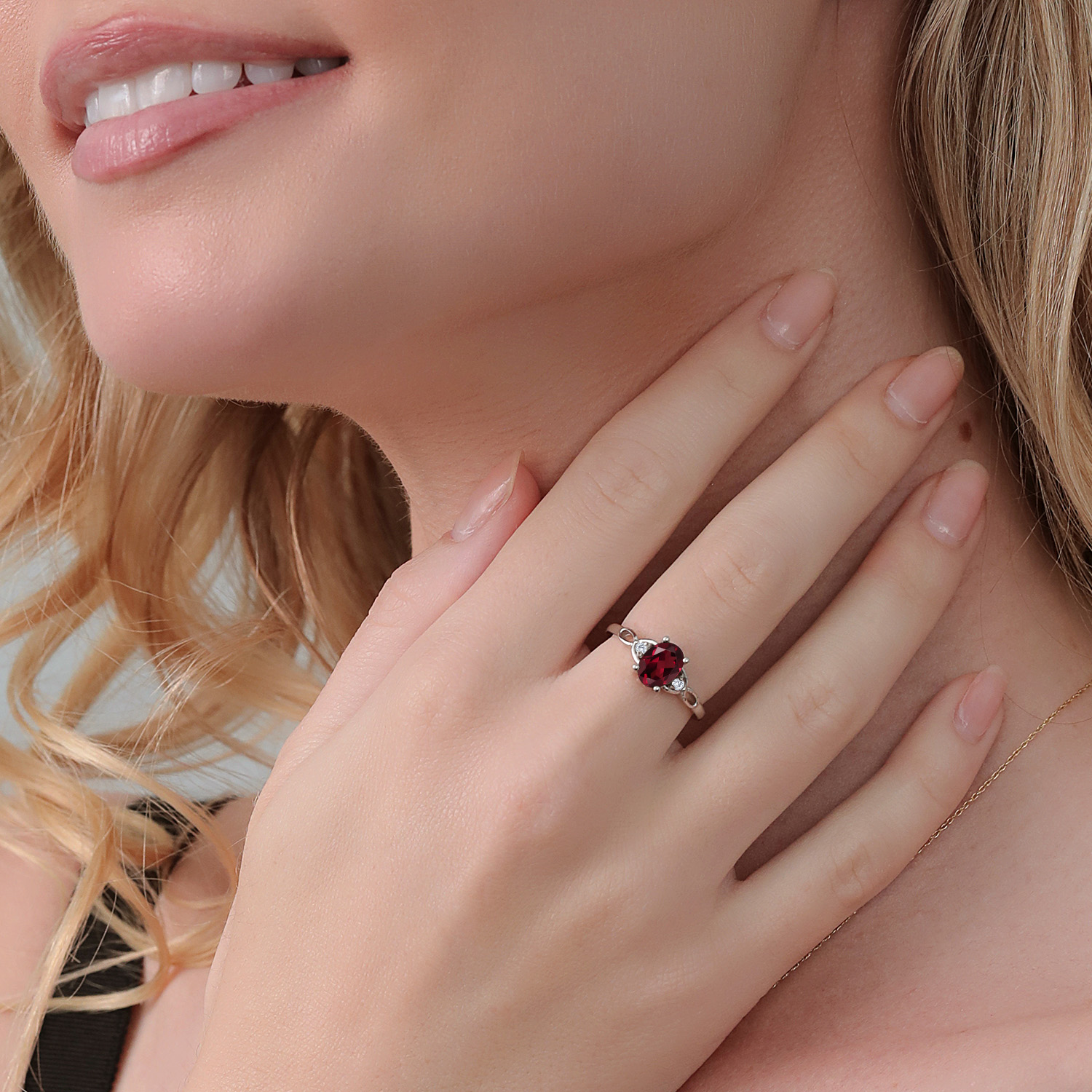 925 Sterling Silver Gemstone Birthstone and White Moissanite 3-Stone Ring for Women | Oval 8X6MM with 2MM Round Accents | Three Stone Wedding Anniversary Engagement Promise Ring | Sizes 5-9
