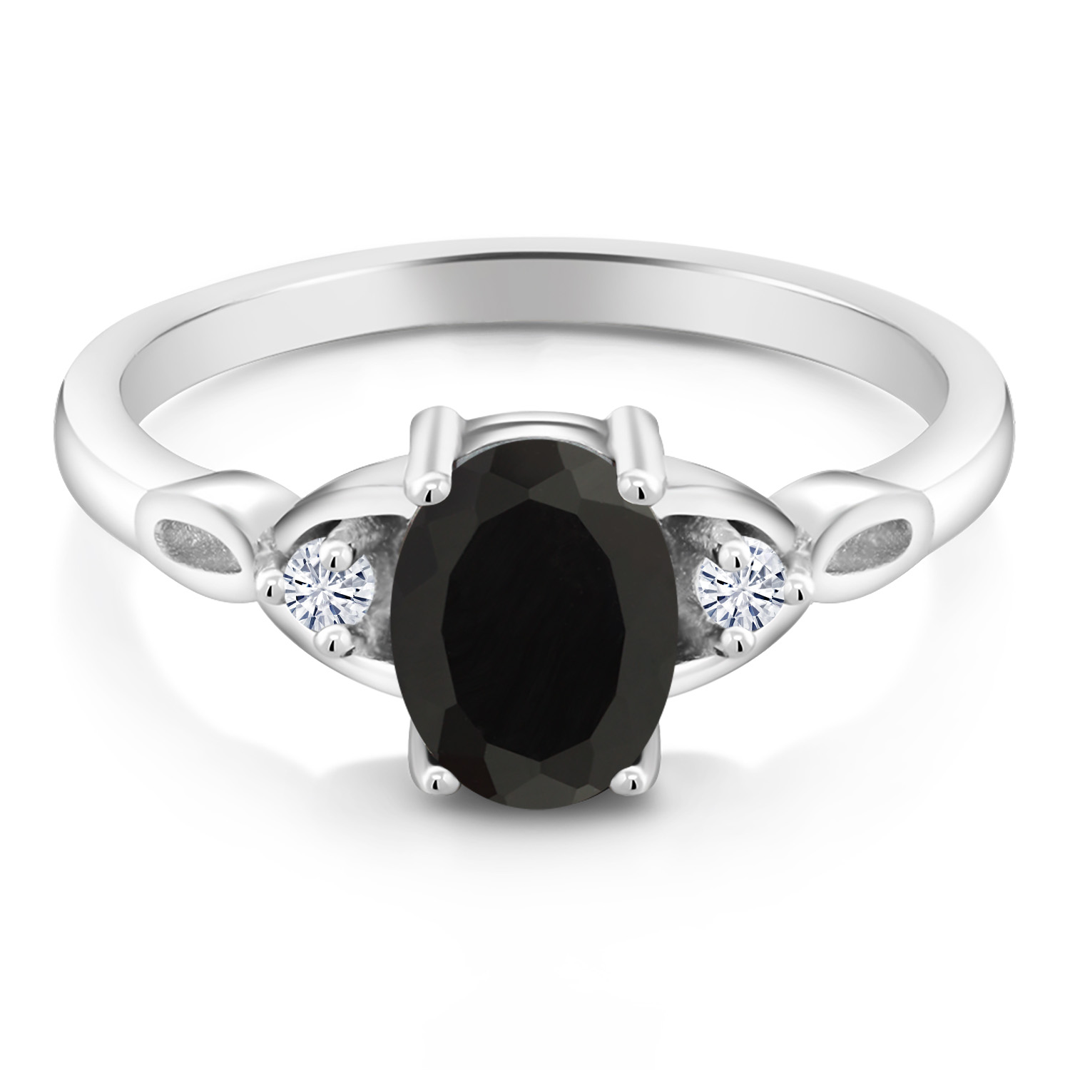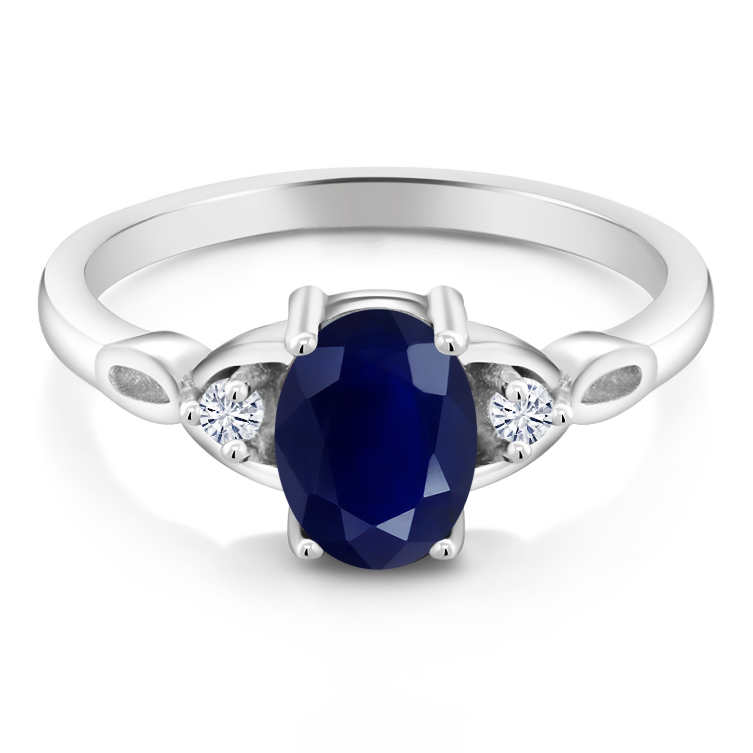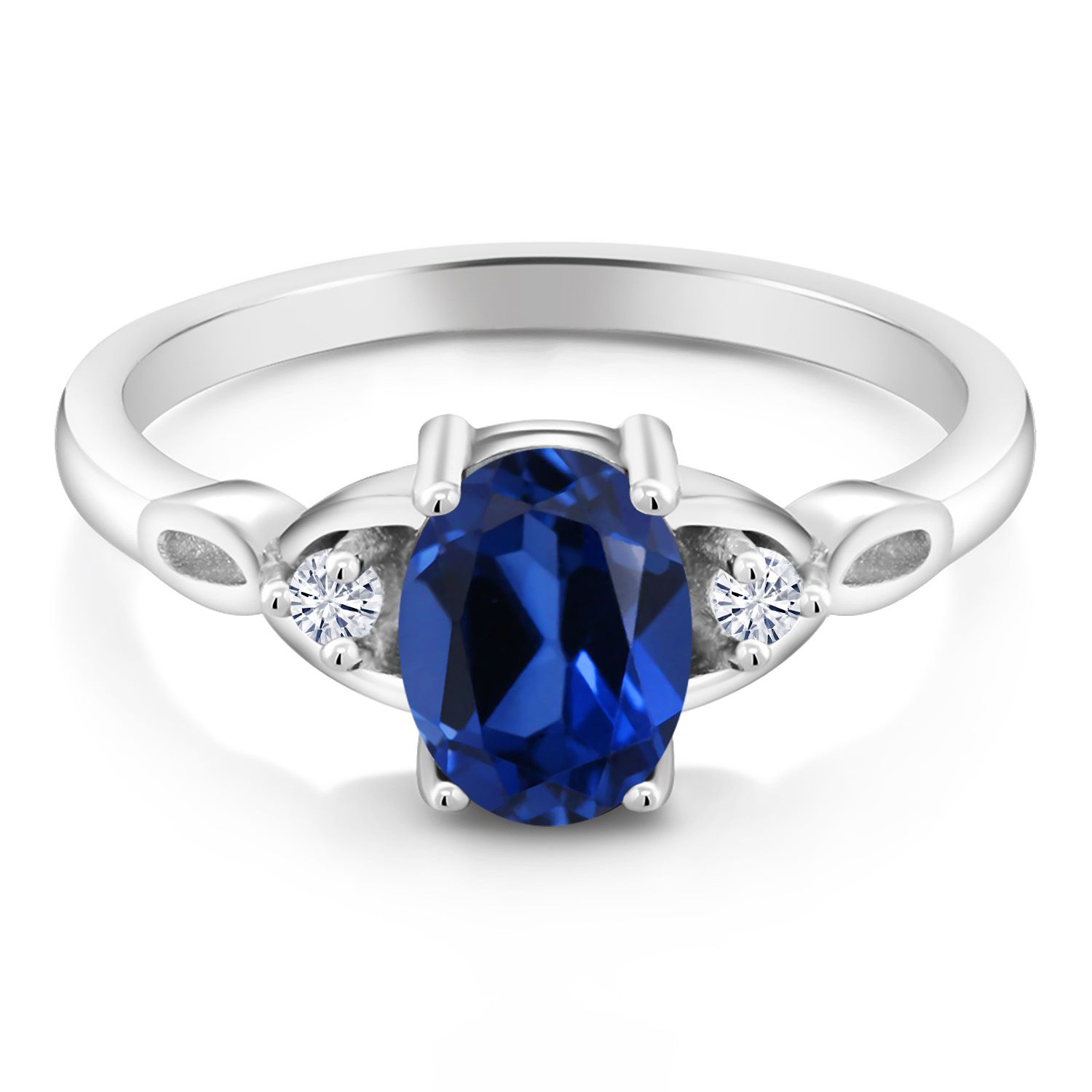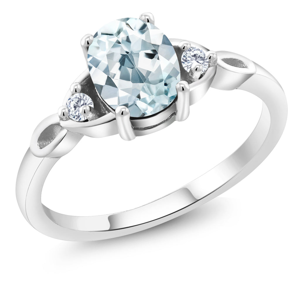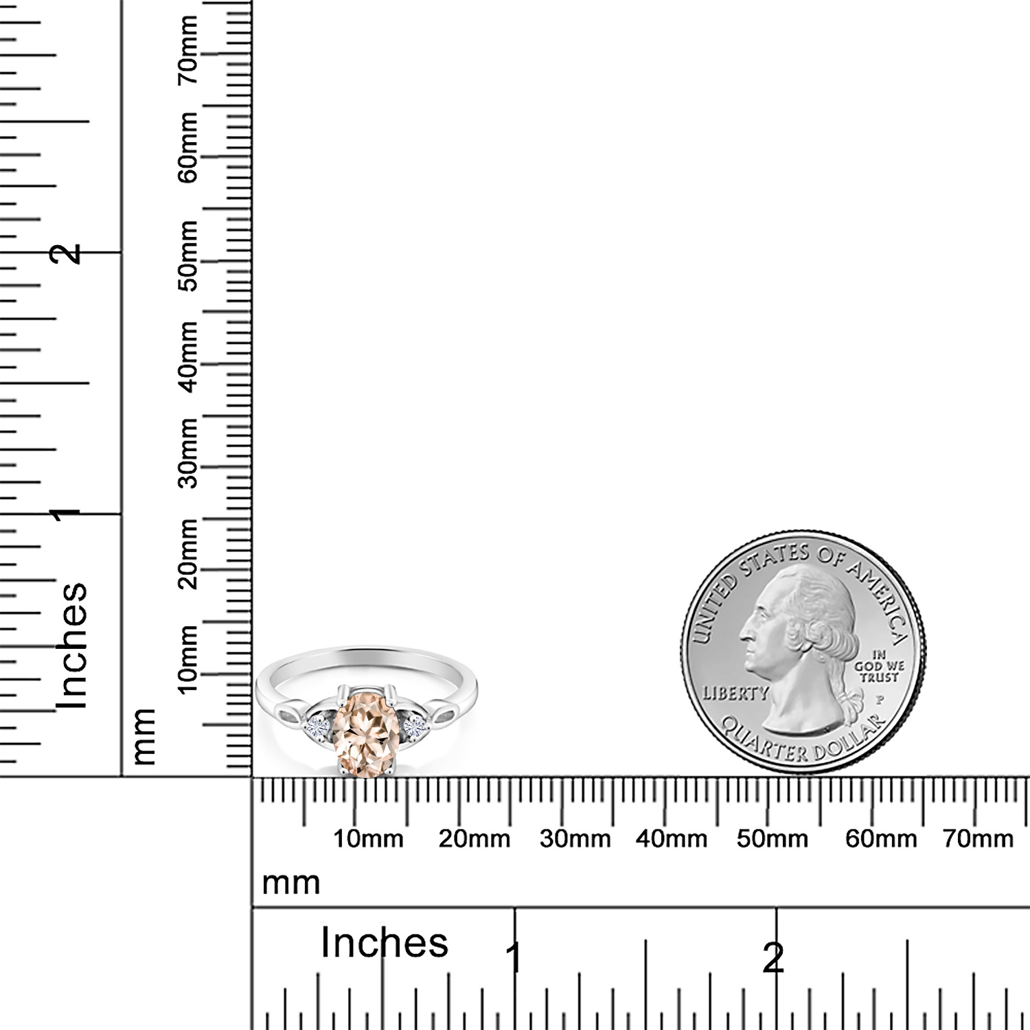 925 Sterling Silver Gemstone Birthstone and White Moissanite 3-Stone Ring for Women | Oval 8X6MM with 2MM Round Accents | Three Stone Wedding Anniversary Engagement Promise Ring | Sizes 5-9