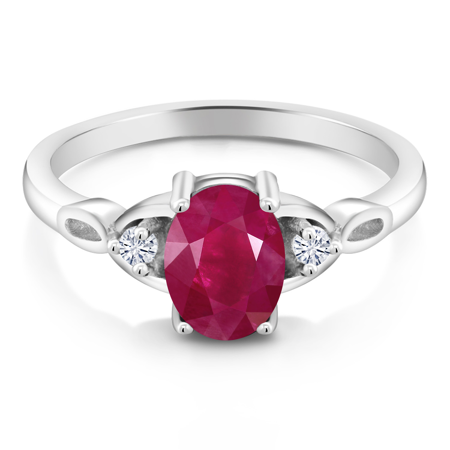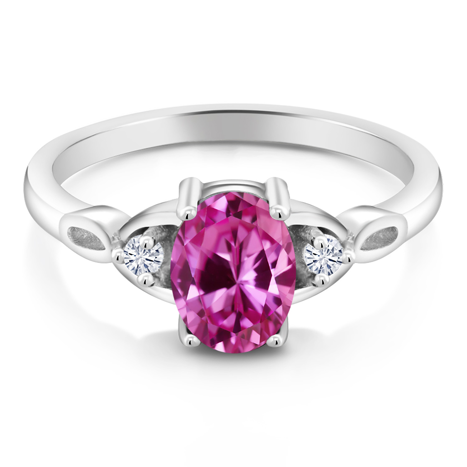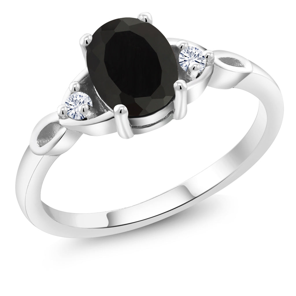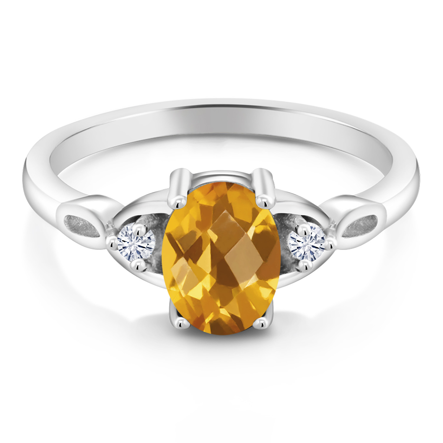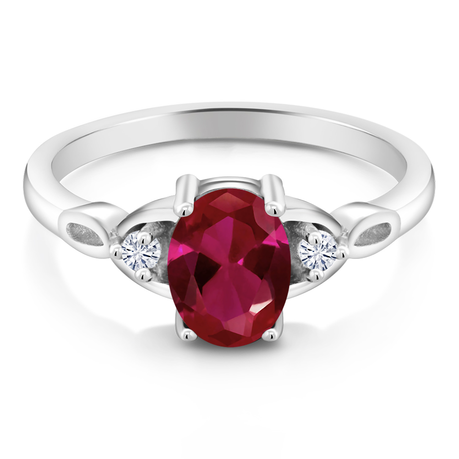 925 Sterling Silver Gemstone Birthstone and White Moissanite 3-Stone Ring for Women | Oval 8X6MM with 2MM Round Accents | Three Stone Wedding Anniversary Engagement Promise Ring | Sizes 5-9