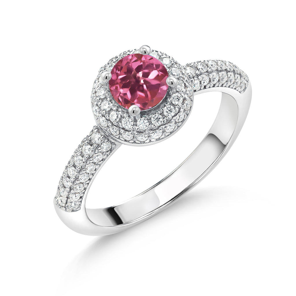 925 Sterling Silver Gemstone Birthstone and White Moissanite Halo Engagement Ring For Women | Round 5MM | Wedding Anniversary Promise Ring | Available In Size 5, 6, 7, 8, 9