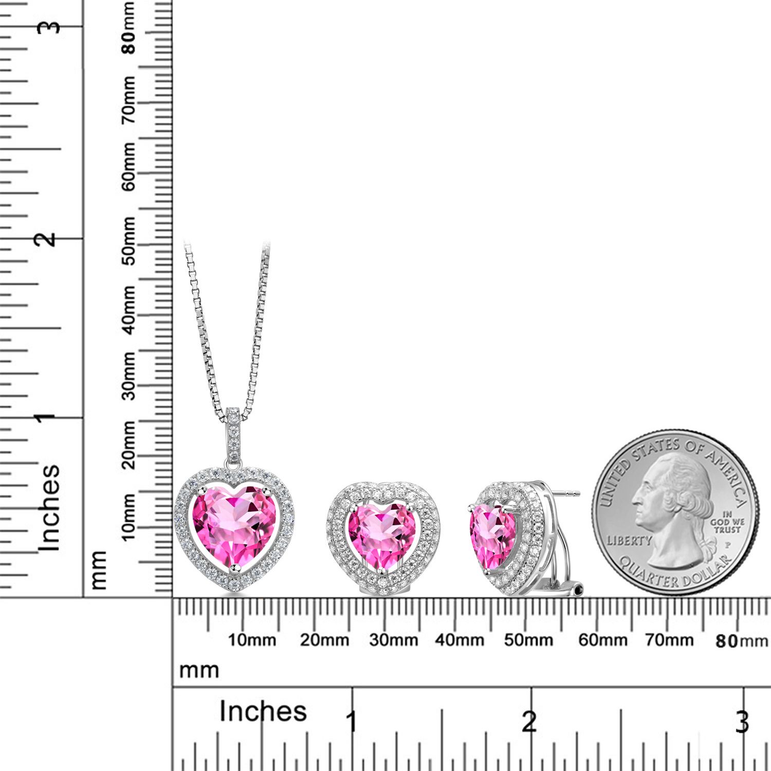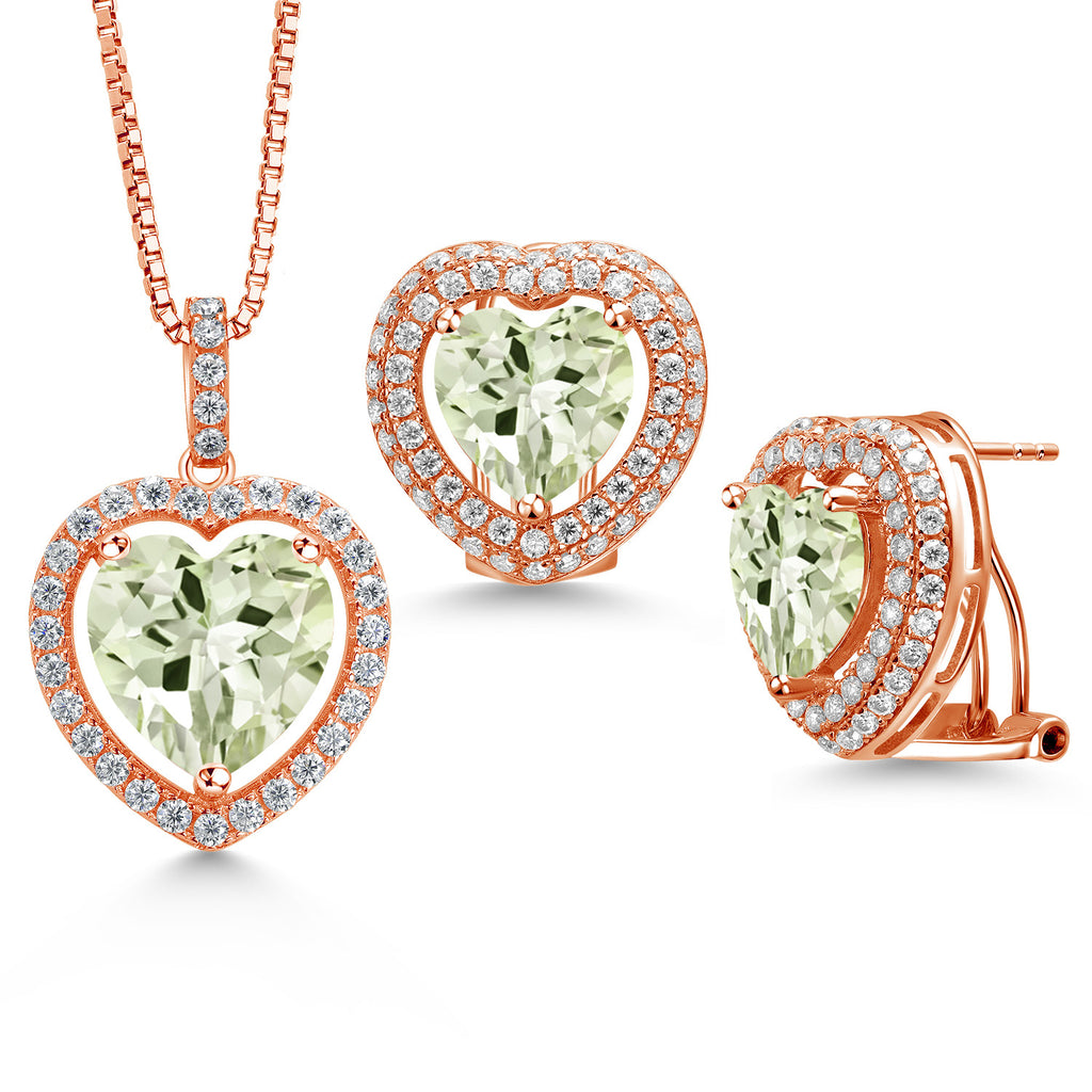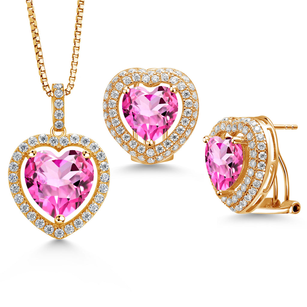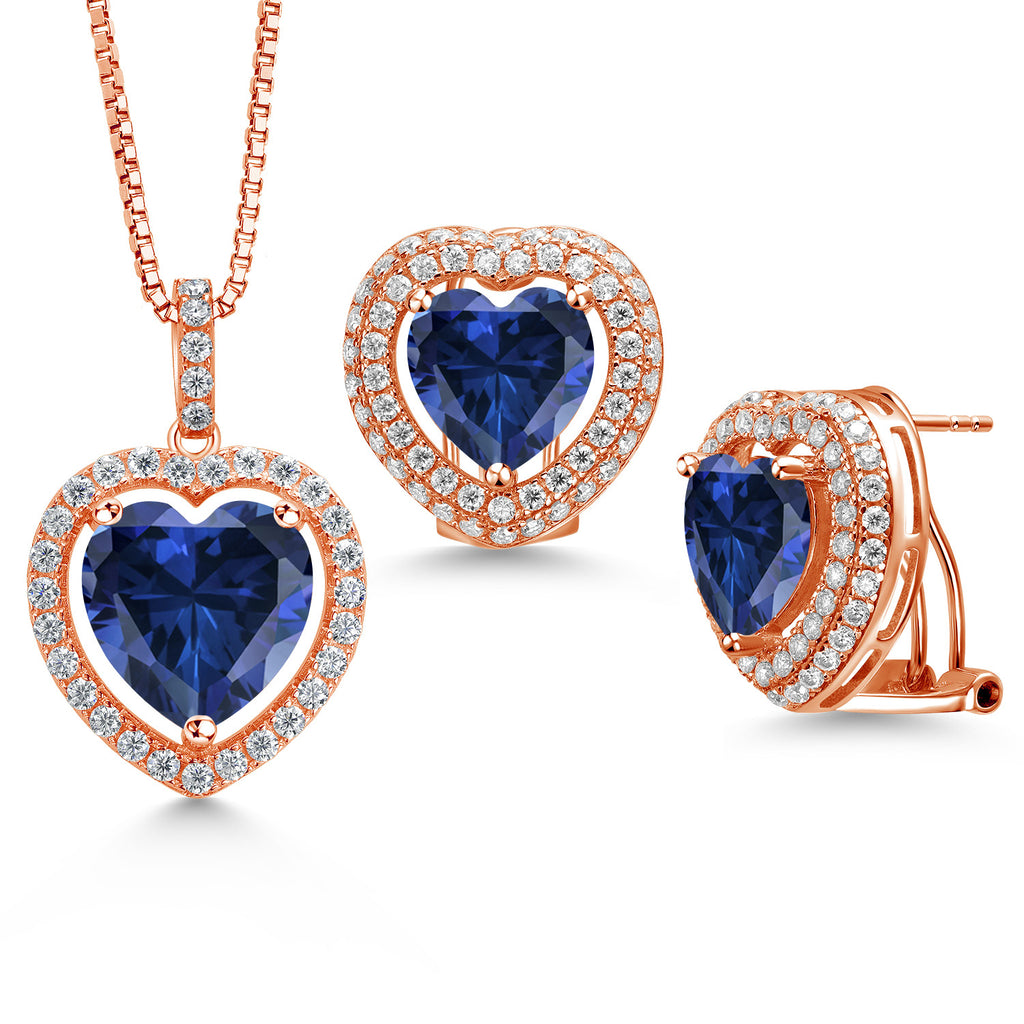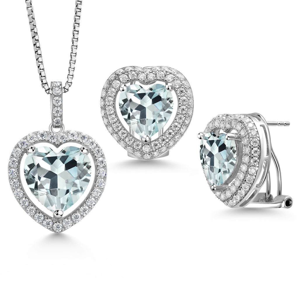 EXQUISITE HEART-SHAPED DESIGN: This stunning jewelry set features heart-shaped gemstones surrounded by a sparkling halo of white Moissanite, crafted in genuine 925 Sterling Silver. The set includes a pendant necklace with a 12MM heart gemstone and matching earrings with 10MM heart gemstones, offering a harmonious and elegant look perfect for any special occasion.