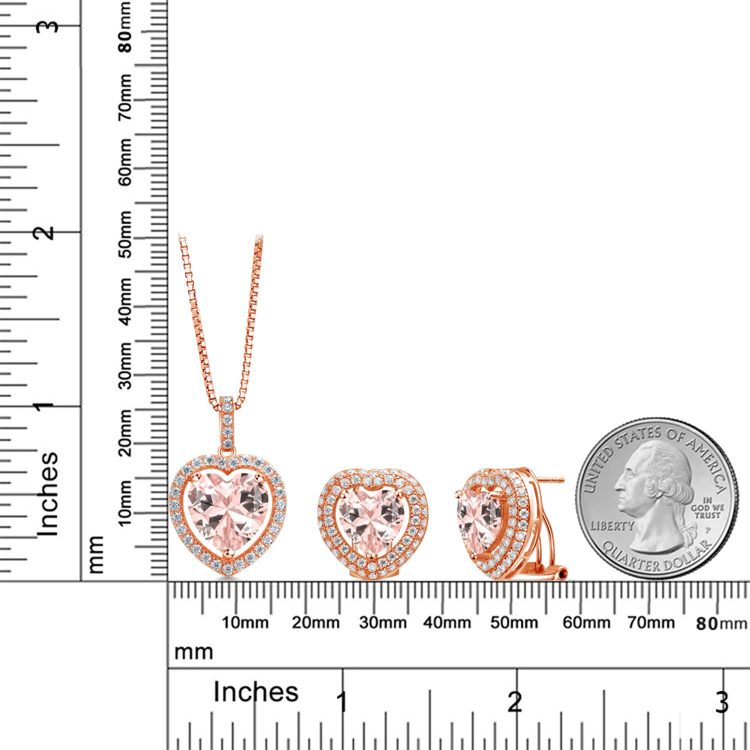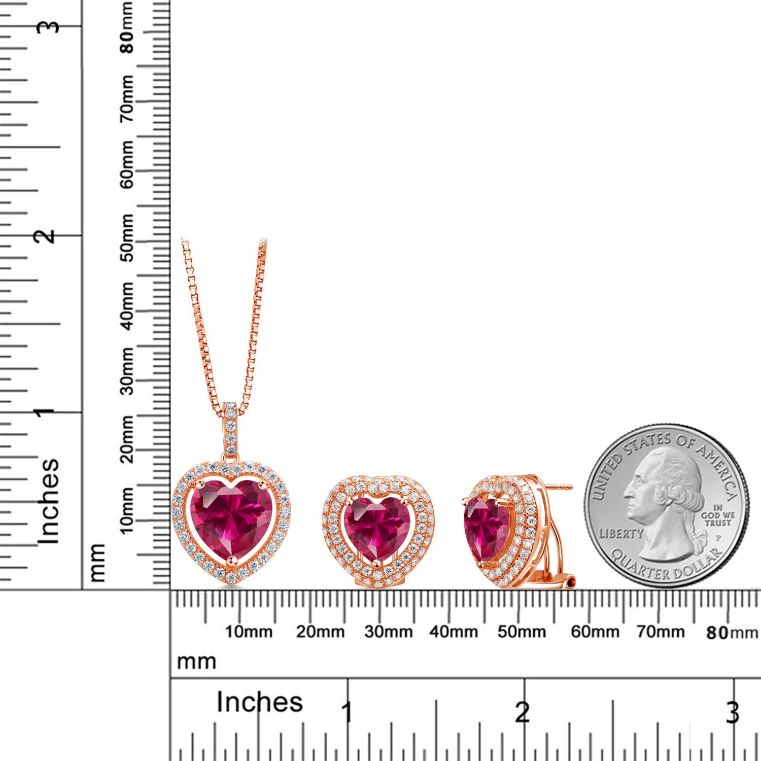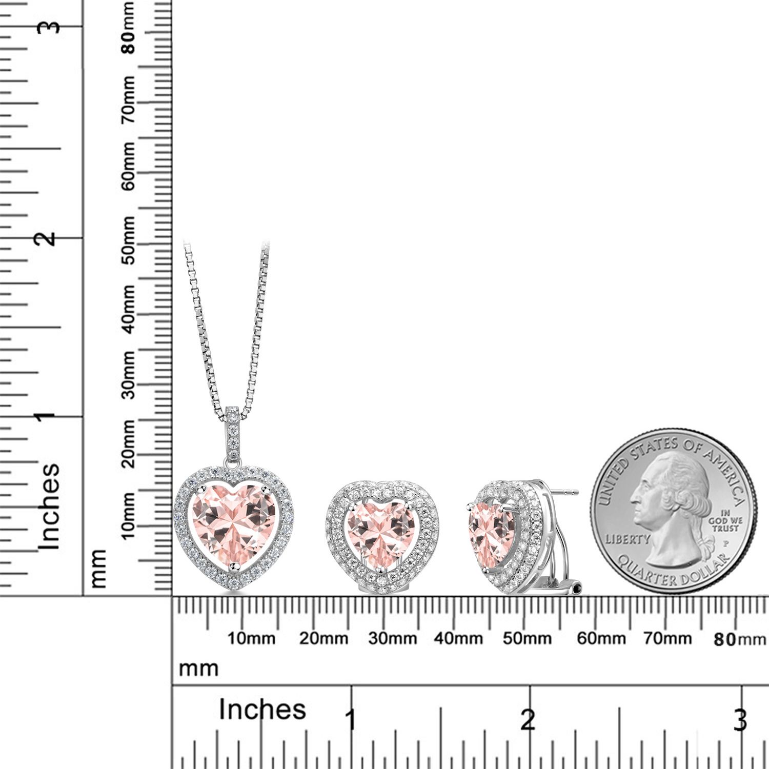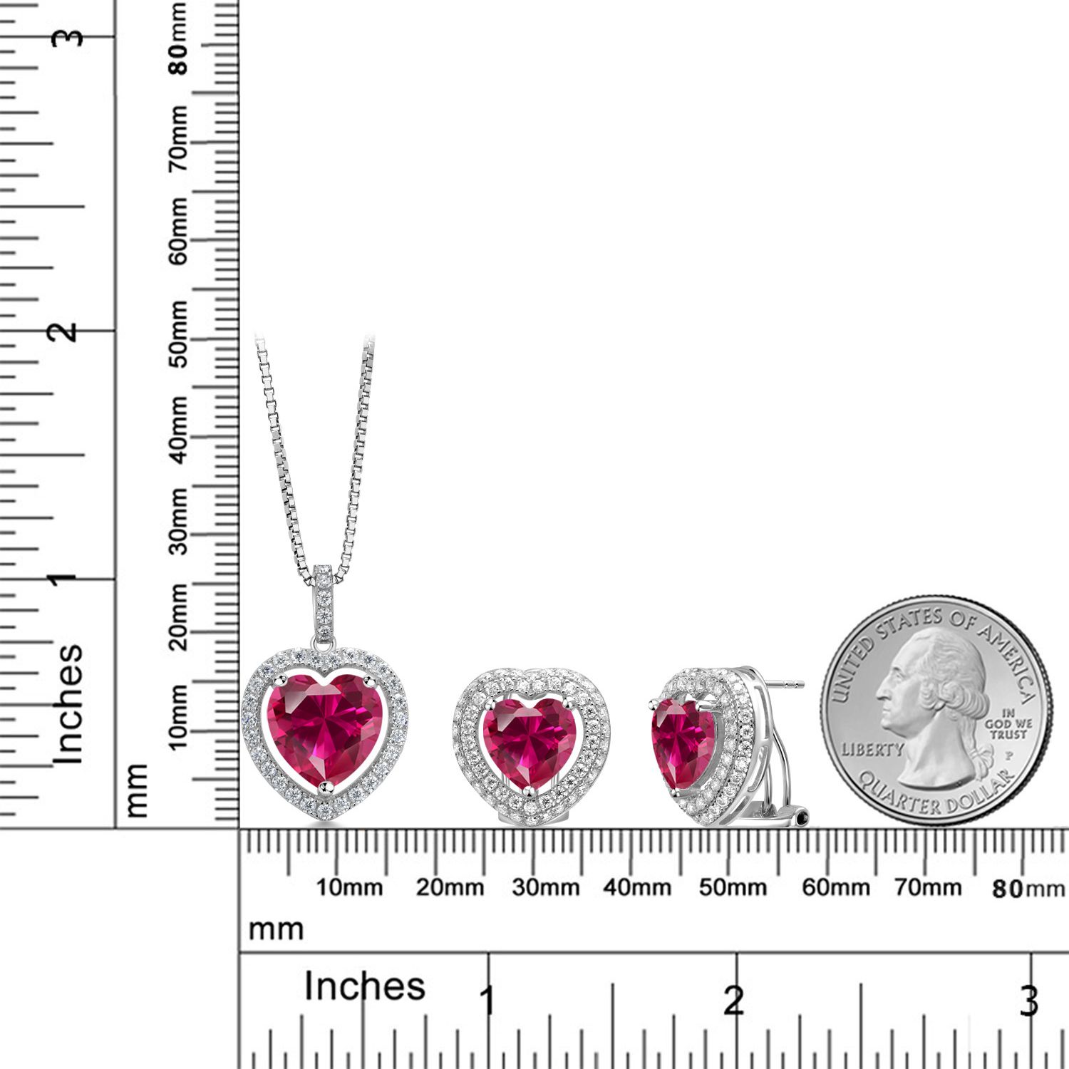 EXQUISITE HEART-SHAPED DESIGN: This stunning jewelry set features heart-shaped gemstones surrounded by a sparkling halo of white Moissanite, crafted in genuine 925 Sterling Silver. The set includes a pendant necklace with a 12MM heart gemstone and matching earrings with 10MM heart gemstones, offering a harmonious and elegant look perfect for any special occasion.