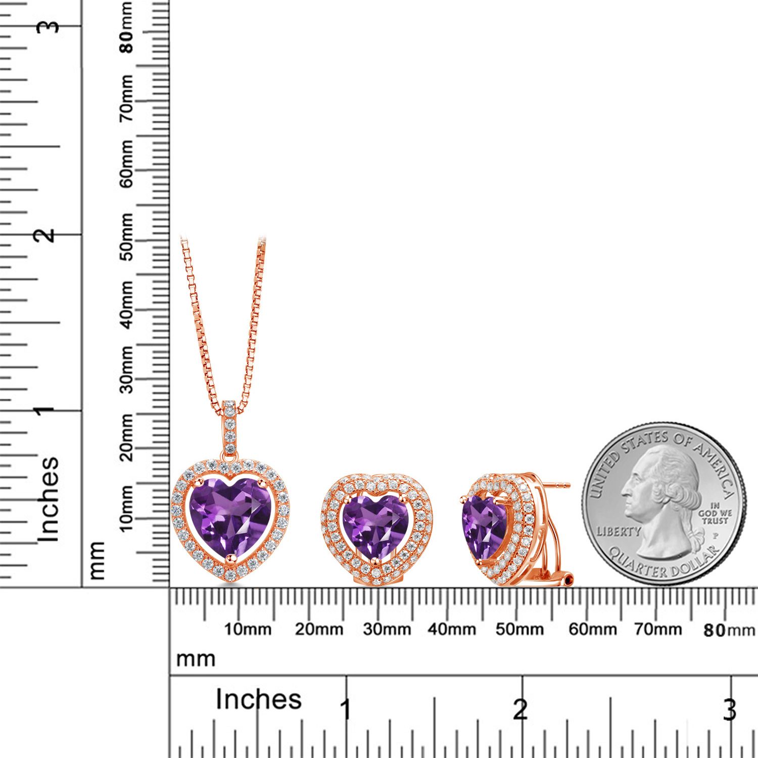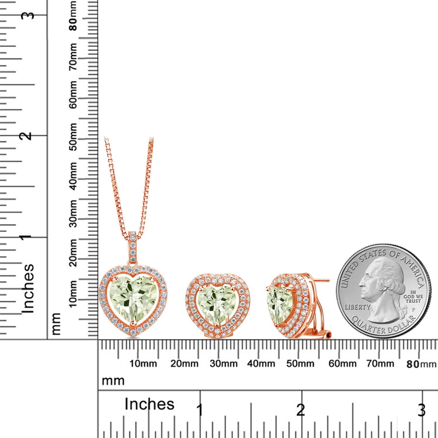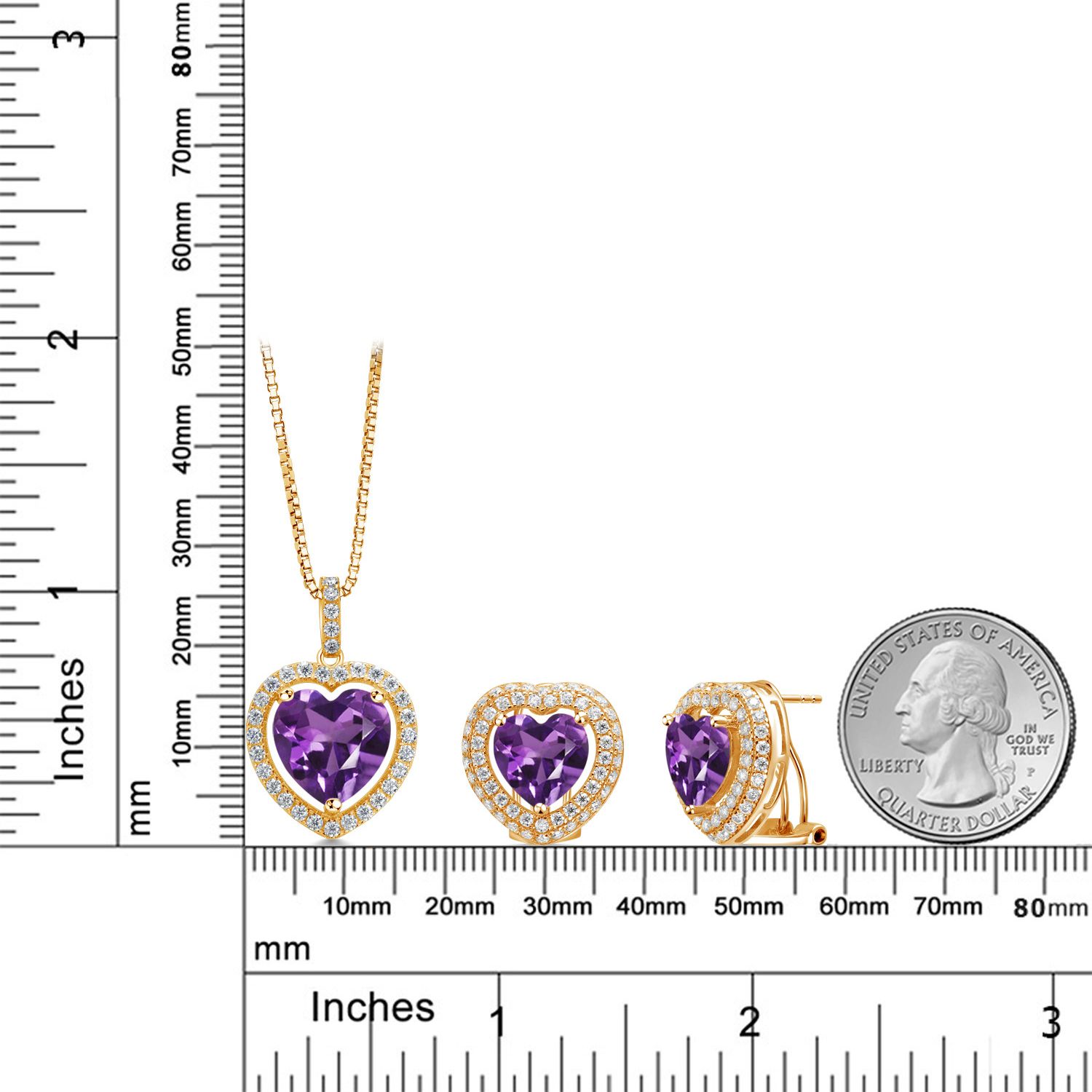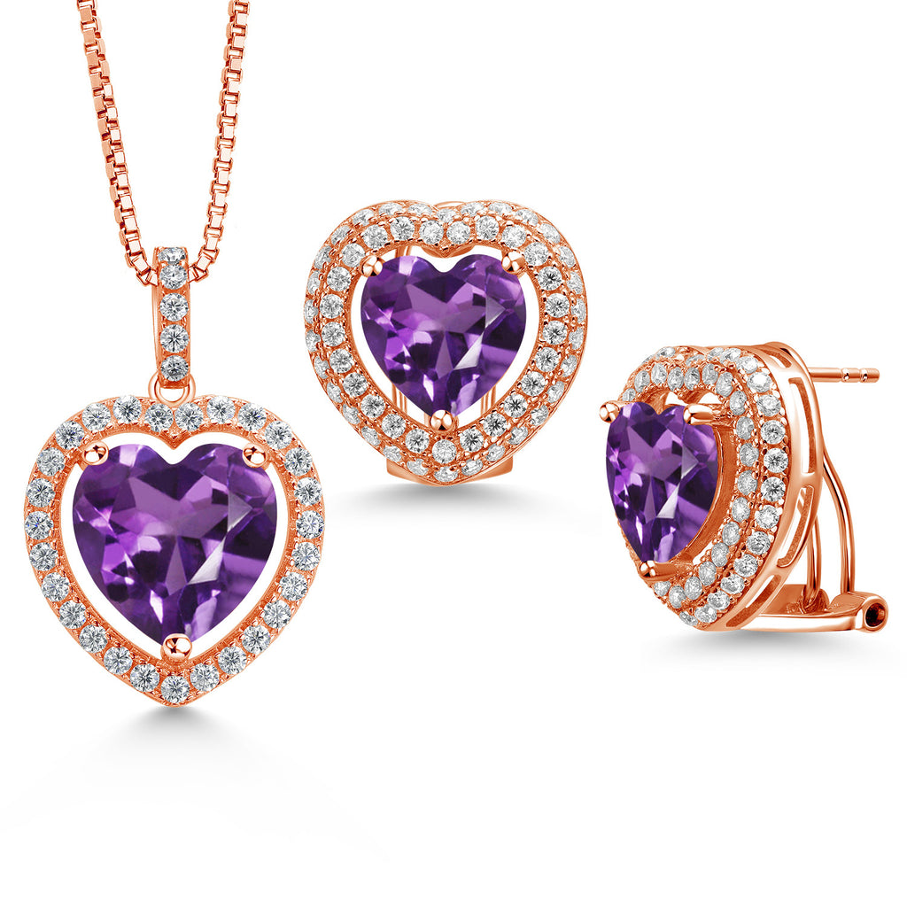 SUPERIOR QUALITY CRAFTSMANSHIP: Made with high-quality 925 Sterling Silver, this jewelry set ensures durability and a luxurious shine. The heart-shaped gemstones and white Moissanite halo are meticulously selected for their vibrant color and exceptional clarity, providing a radiant sparkle that will be admired from every angle.