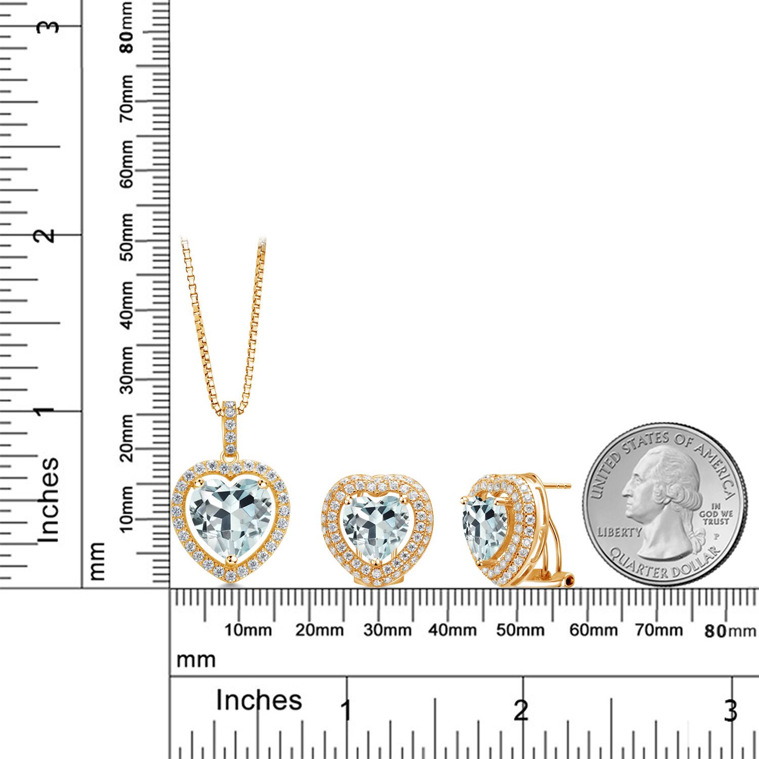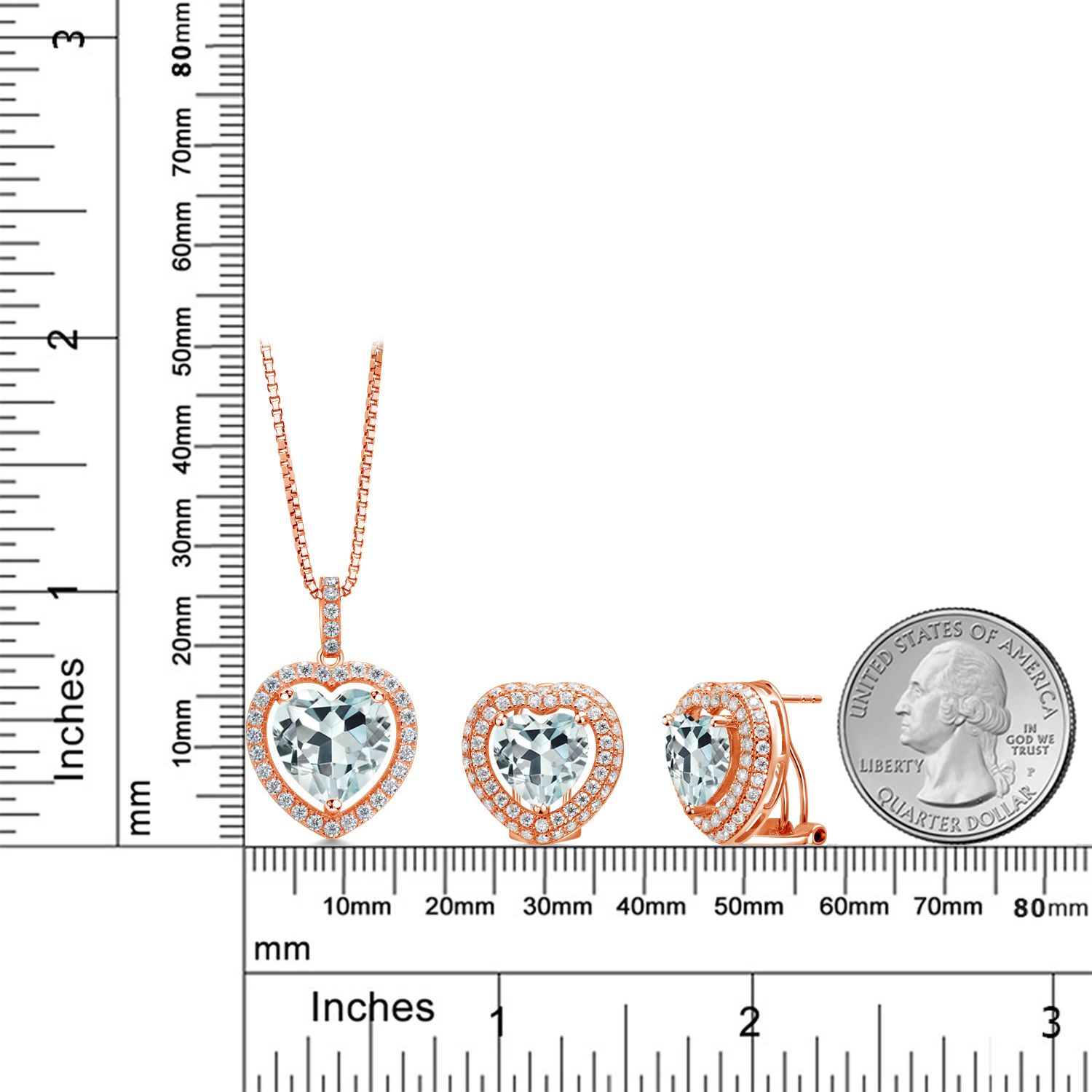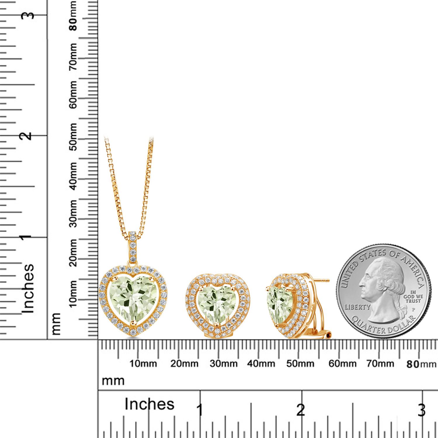 SUPERIOR QUALITY CRAFTSMANSHIP: Made with high-quality 925 Sterling Silver, this jewelry set ensures durability and a luxurious shine. The heart-shaped gemstones and white Moissanite halo are meticulously selected for their vibrant color and exceptional clarity, providing a radiant sparkle that will be admired from every angle.