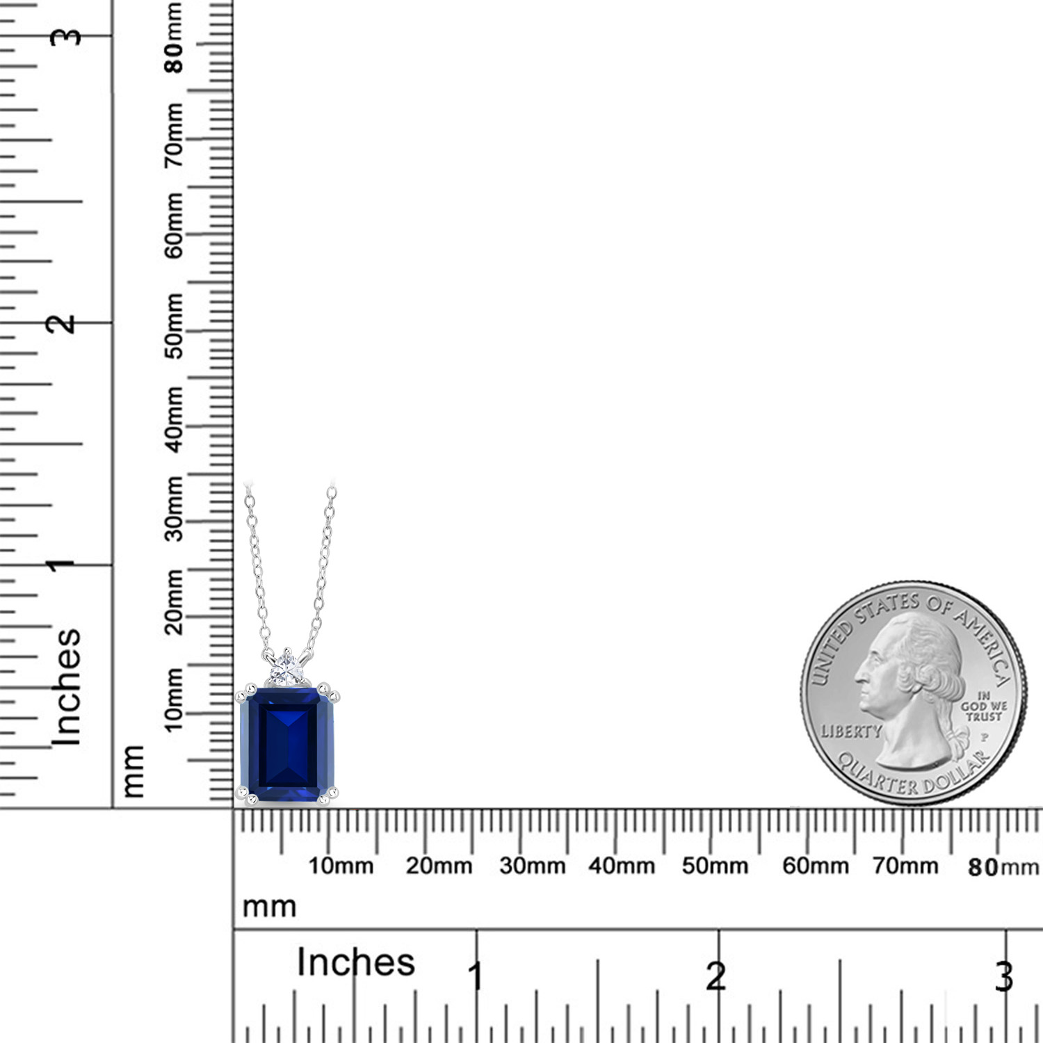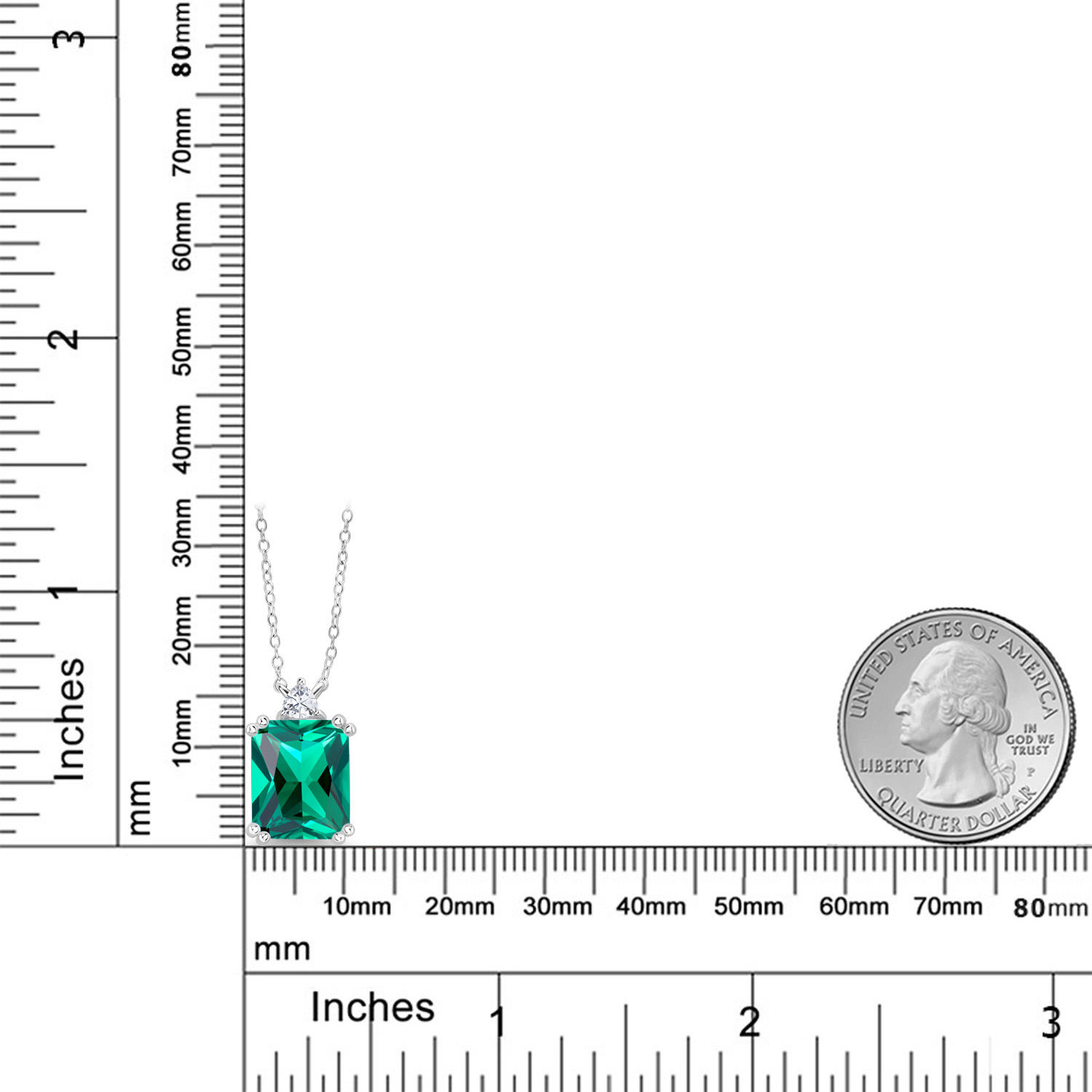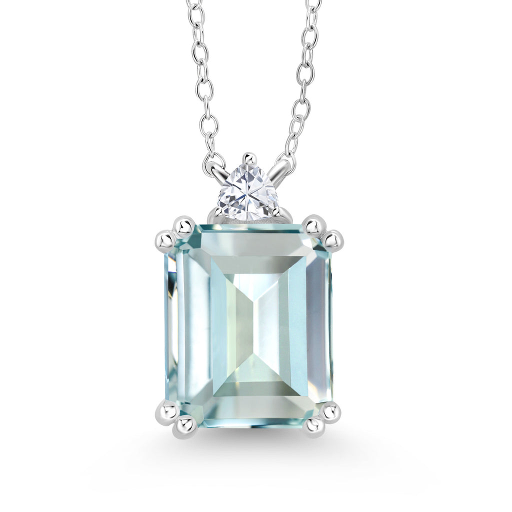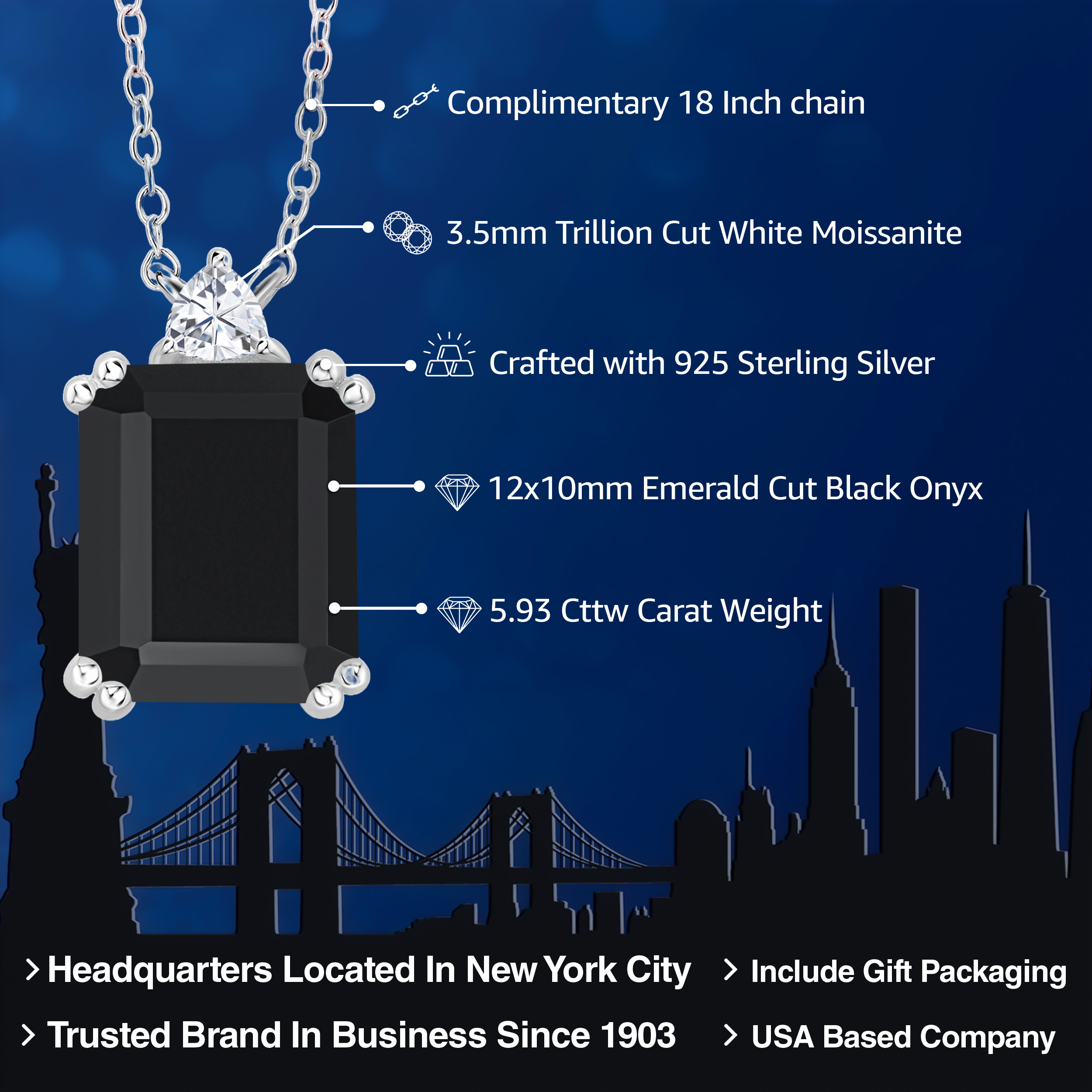 Emerald Cut Pendant Necklace For Women | 925 Sterling Silver | Gemstone Birthstone and White Moissanite | Emerald Cut 12X10MM | Trillion 3.5MM | With 18 Inch Chain
