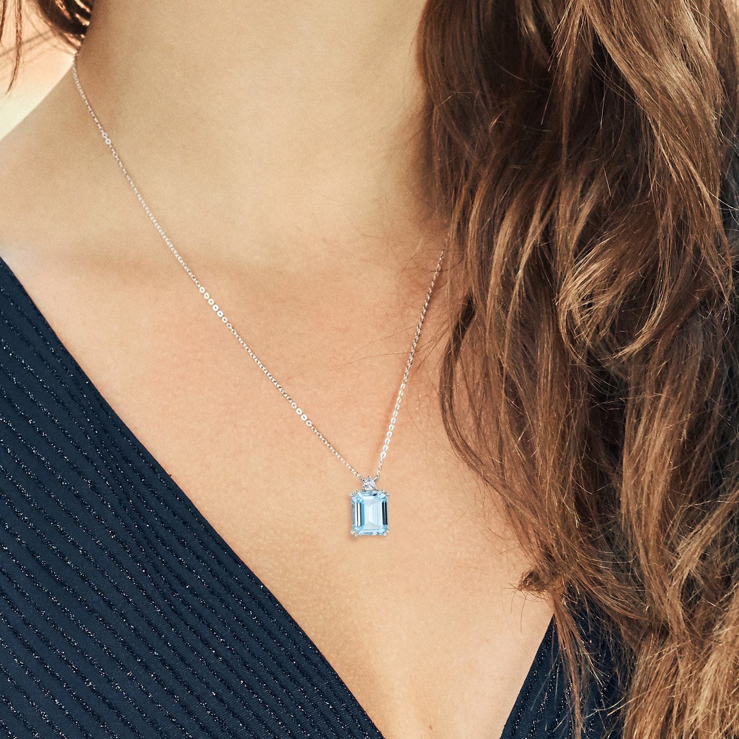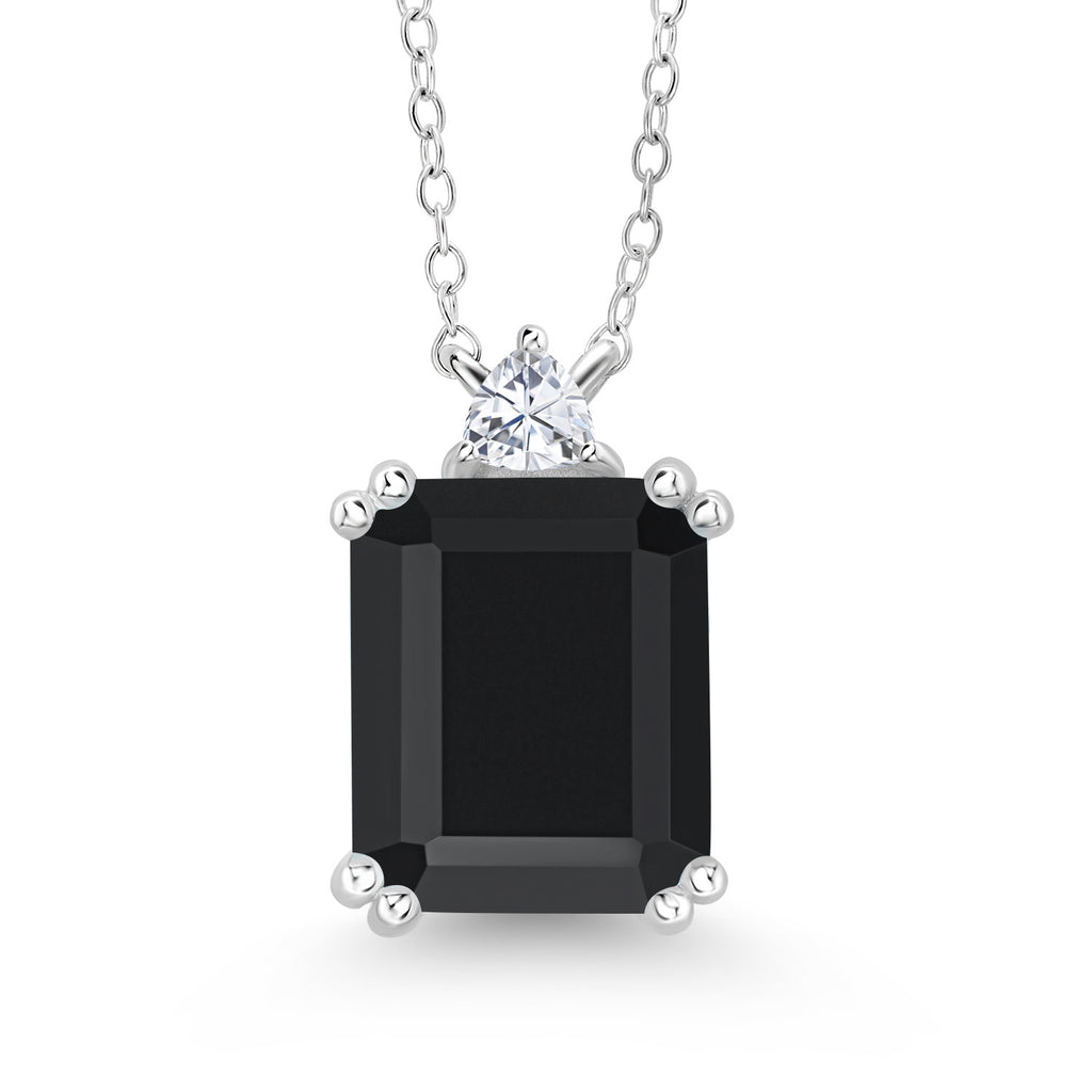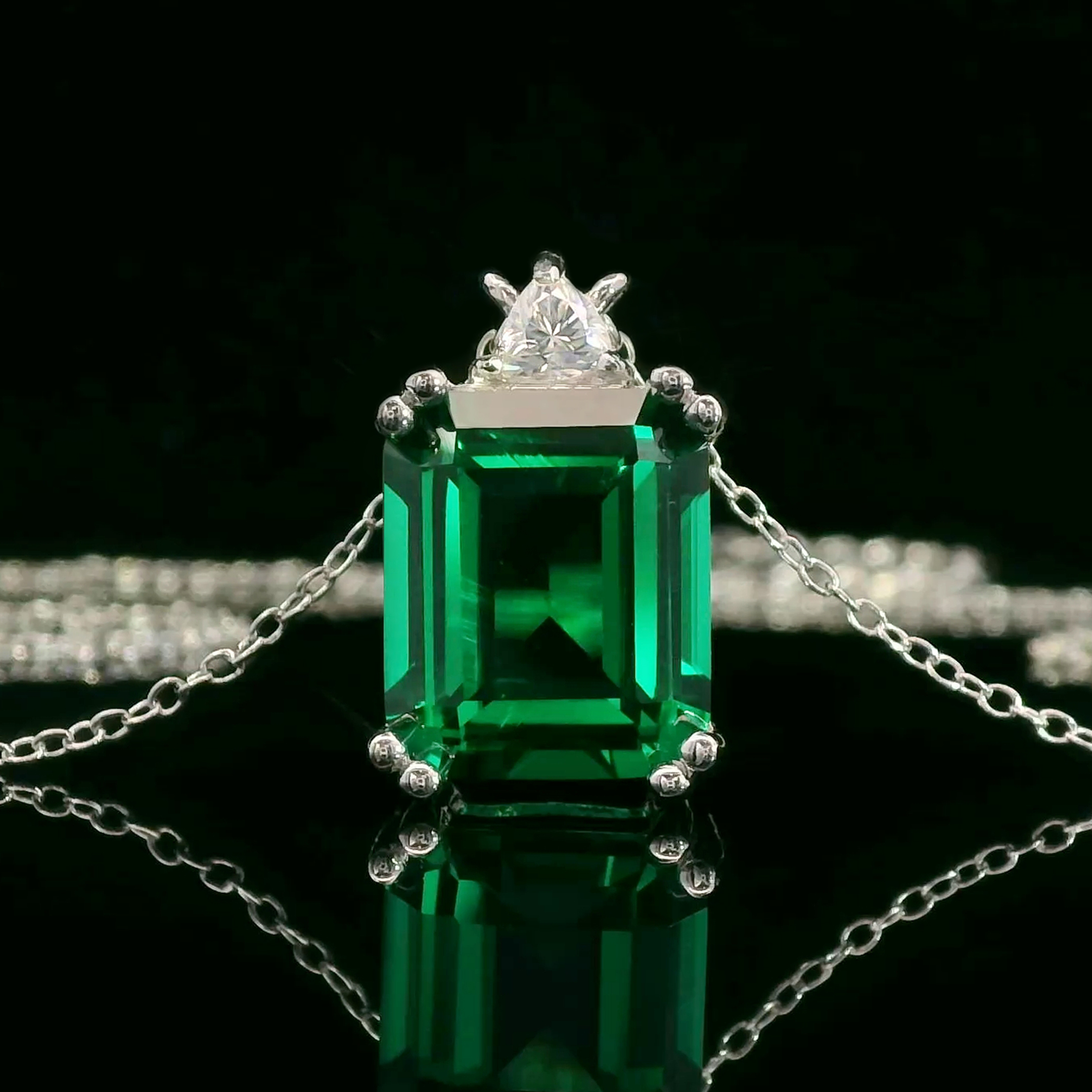 DAZZLING GEMSTONES: Adorned with a stunning emerald-cut 12x10mm gemstone and trilliant-cut 3.5mm moissanite, each hand-selected for their brilliance and clarity, elevating the elegance of this necklace.