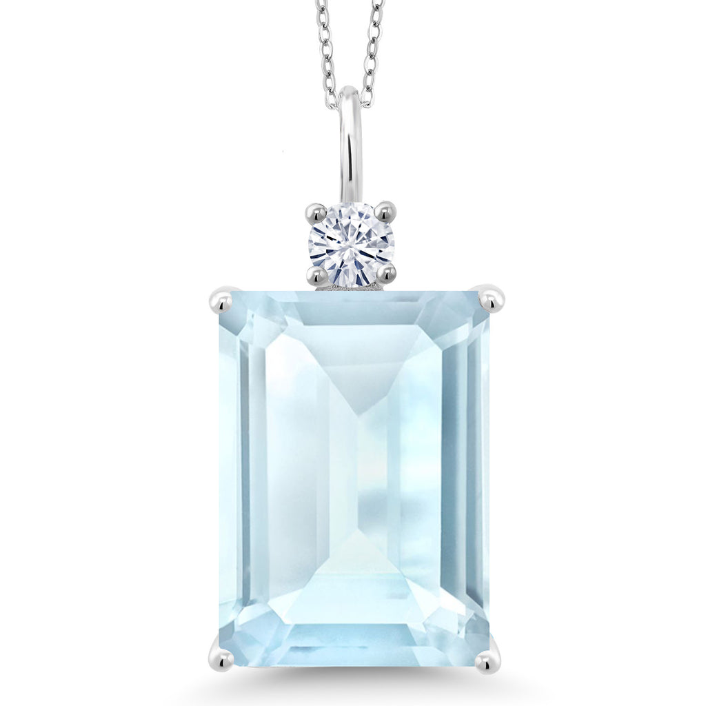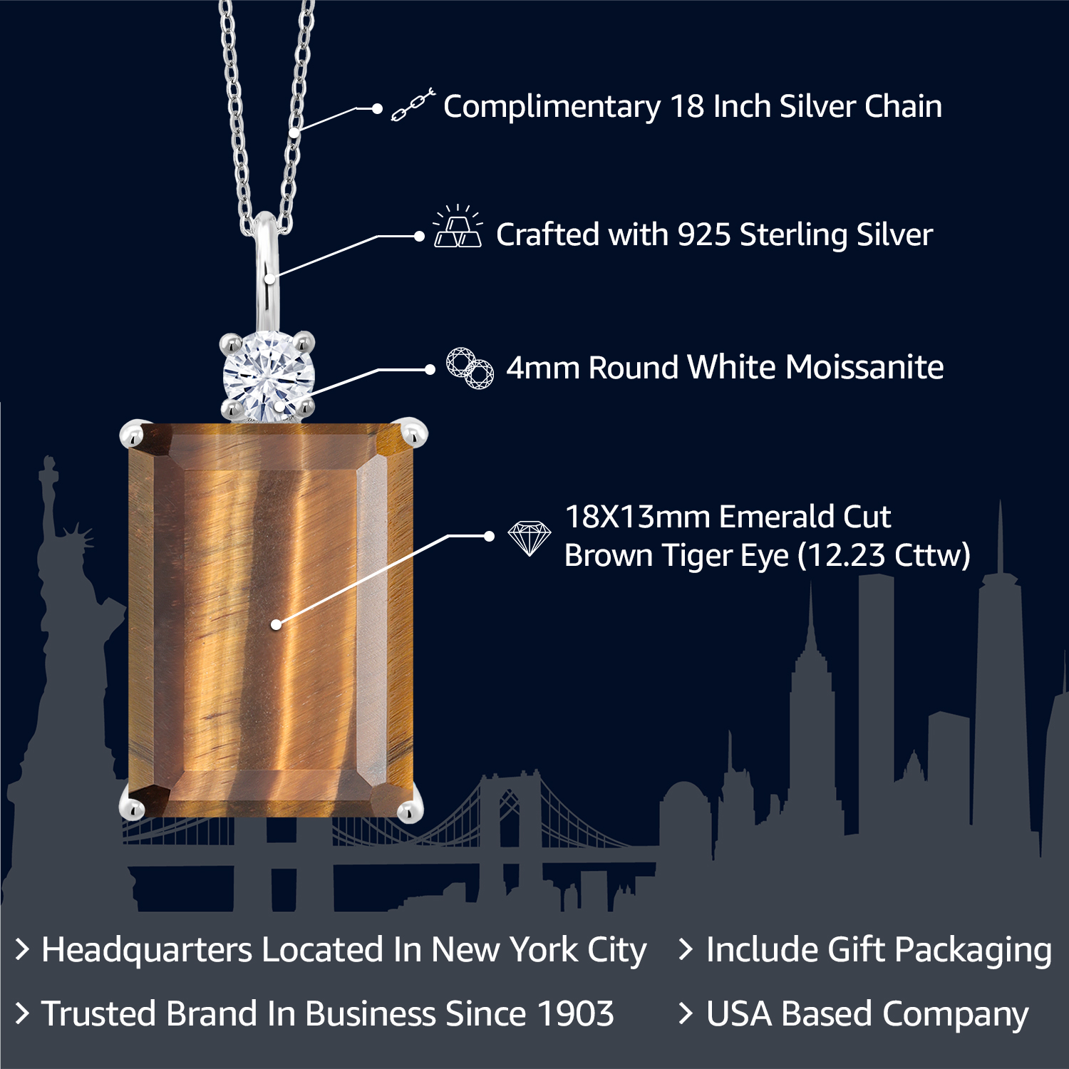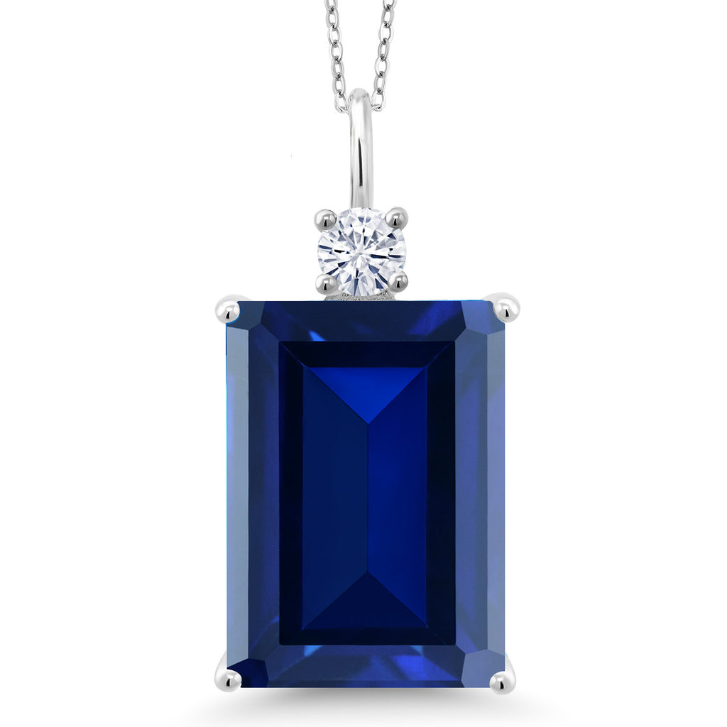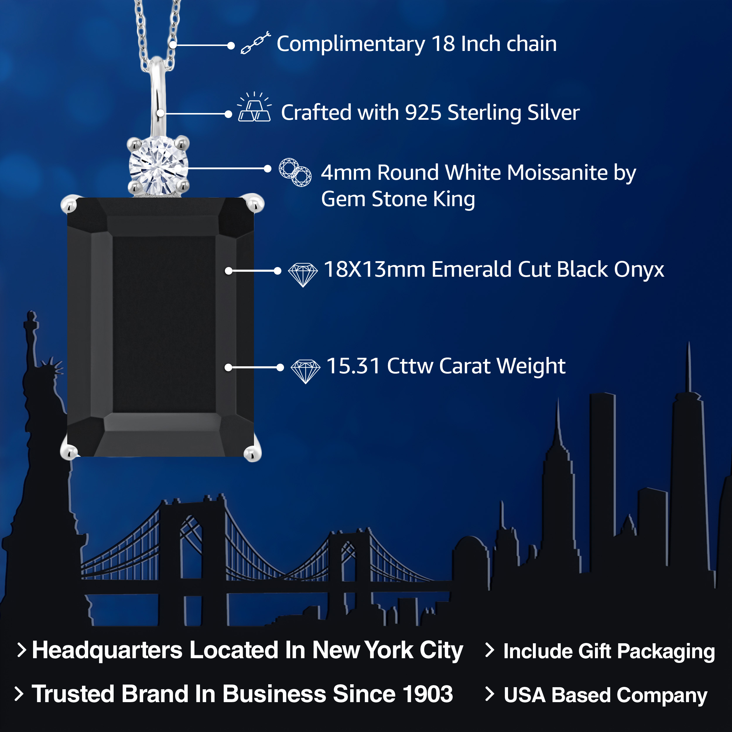 11-20 Cttw Gemstone Birthstone and White Moissanite Pendant Necklace for Women | 925 Sterling Silver | Emerald Cut 18X13MM and Round 4MM | With 18 Inch Chain
