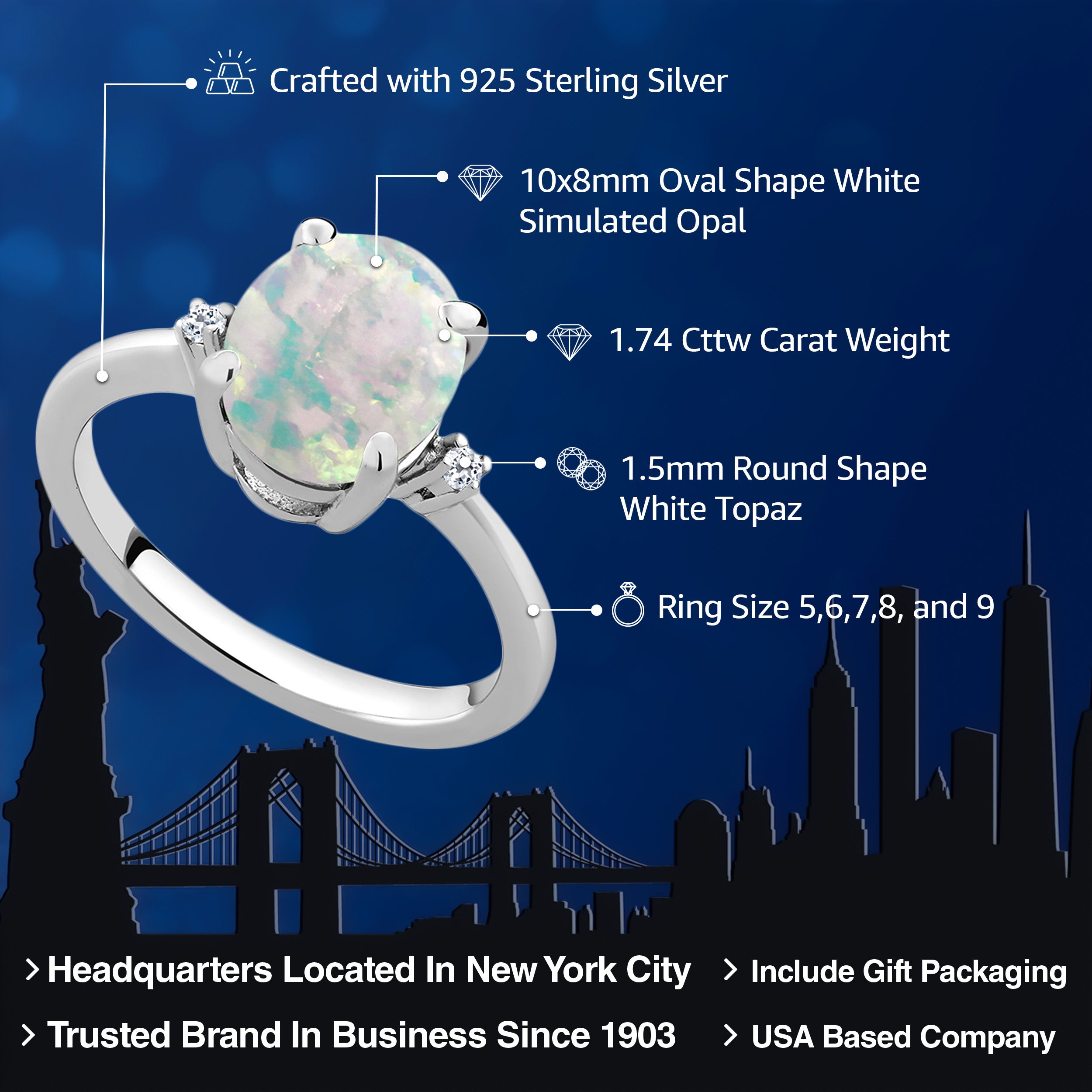 3-Stone Ring for Women | Gemstone Birthstone and White Topaz Accent | 925 Sterling Silver | 10X8MM Oval with 1.5MM Accents | Fine Jewelry for Engagement Wedding Anniversary Promise | Sizes 5-9