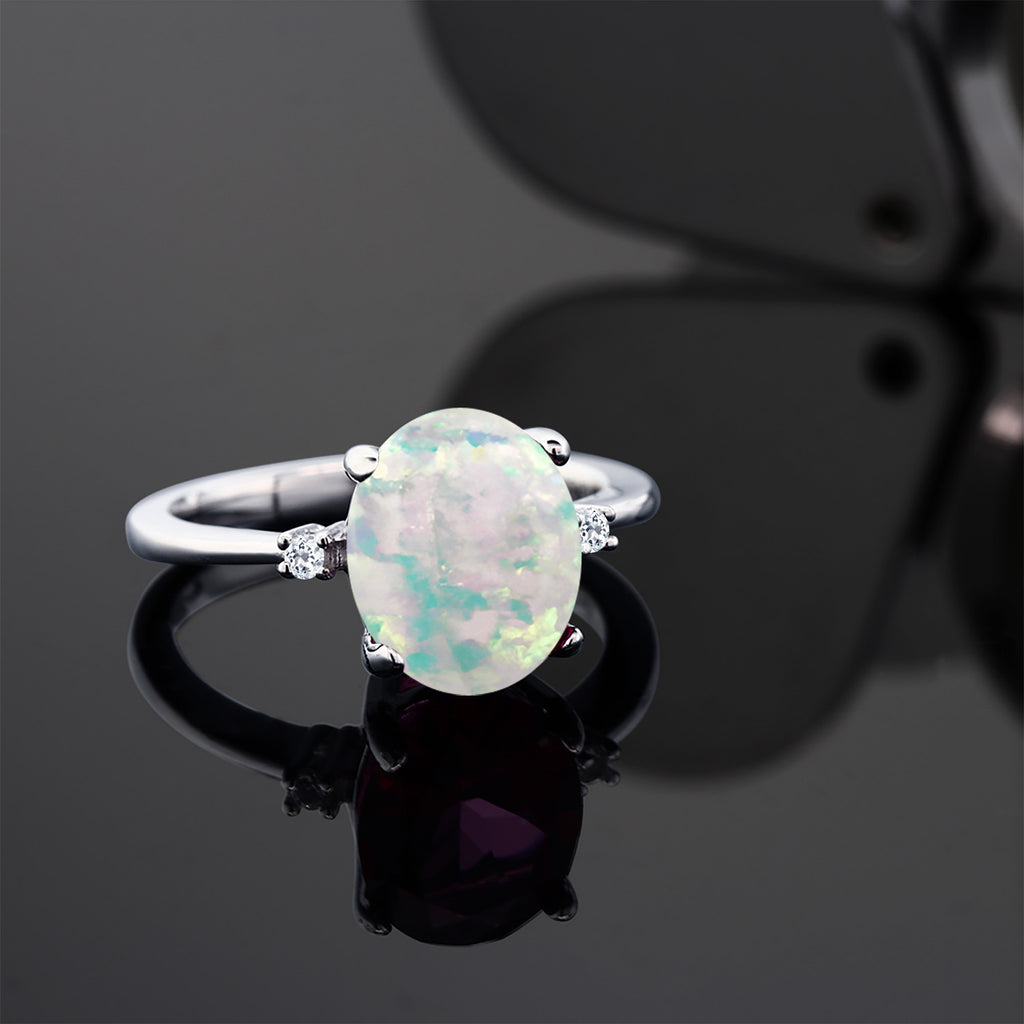 CAPTIVATING GEMSTONE BRILLIANCE: The centerpiece of this exquisite ring is a 10X8MM oval gemstone, available in various birthstone options, each meticulously cut to reveal its natural brilliance and clarity. The majestic oval shape embraces elegance with sophisticated curves, making it a versatile piece suitable for any occasion. The gemstone's alluring sparkle is complemented by the 1.5MM white topaz accents, adding a touch of sophistication that accentuates its timeless beauty.
