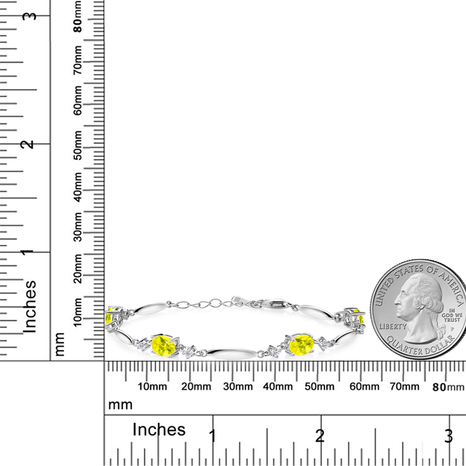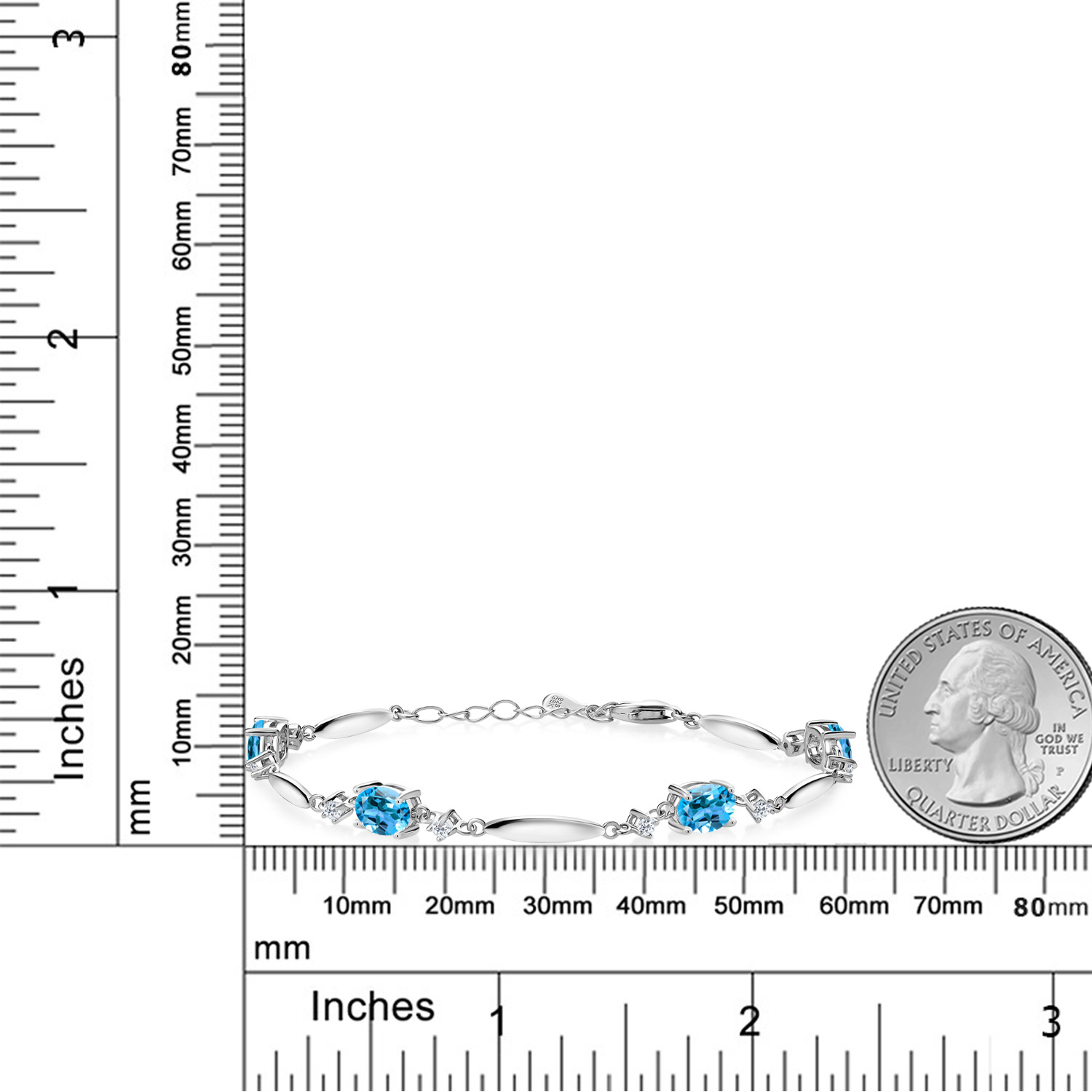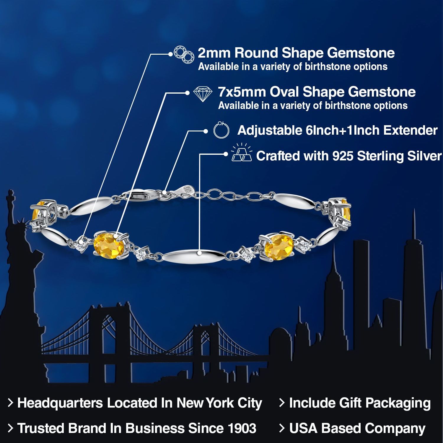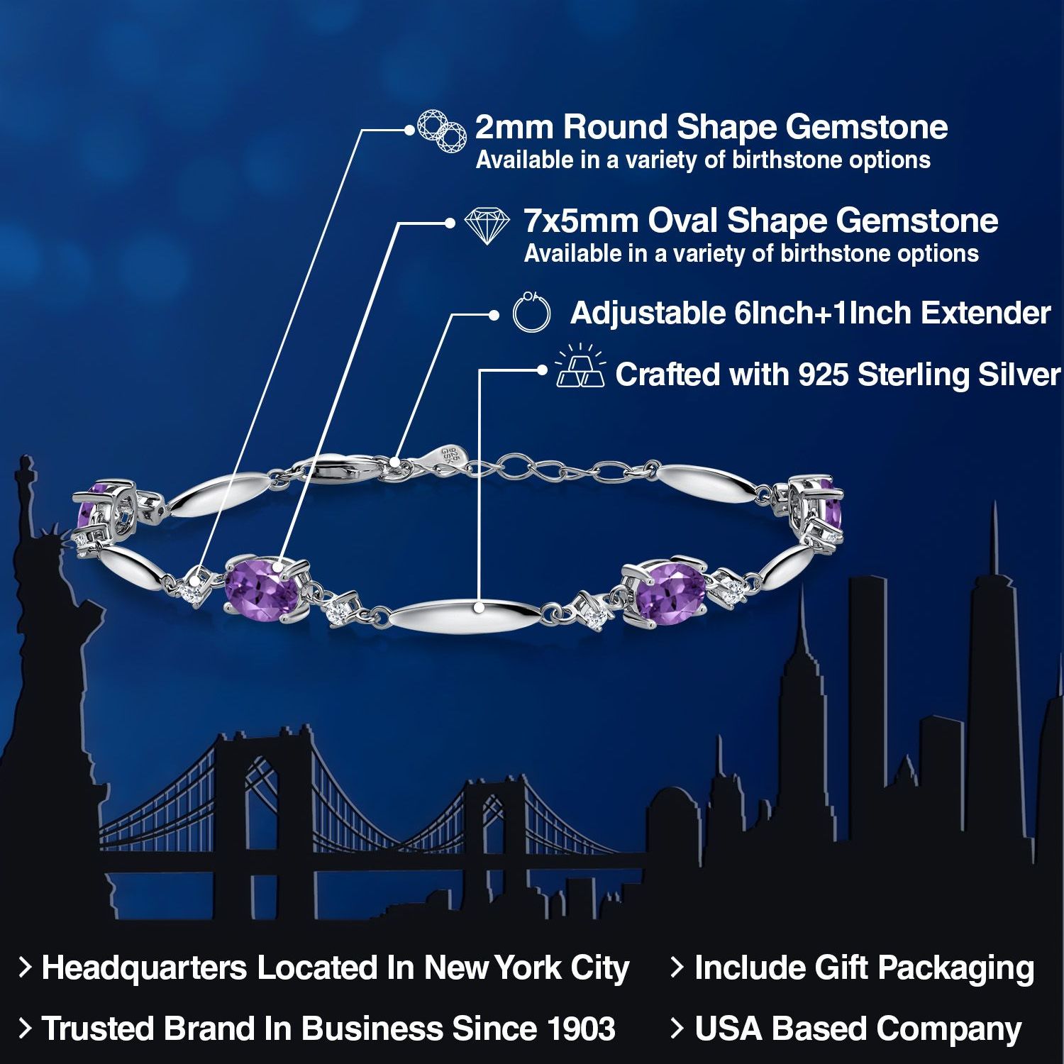 925 Sterling Silver Gemstone Birthstone and White Topaz Tennis Bracelet For Women | Oval 7X5MM and 2MM | 6 Inch + 1 Inch Extender | Fine Jewelry for Her Mom Wife