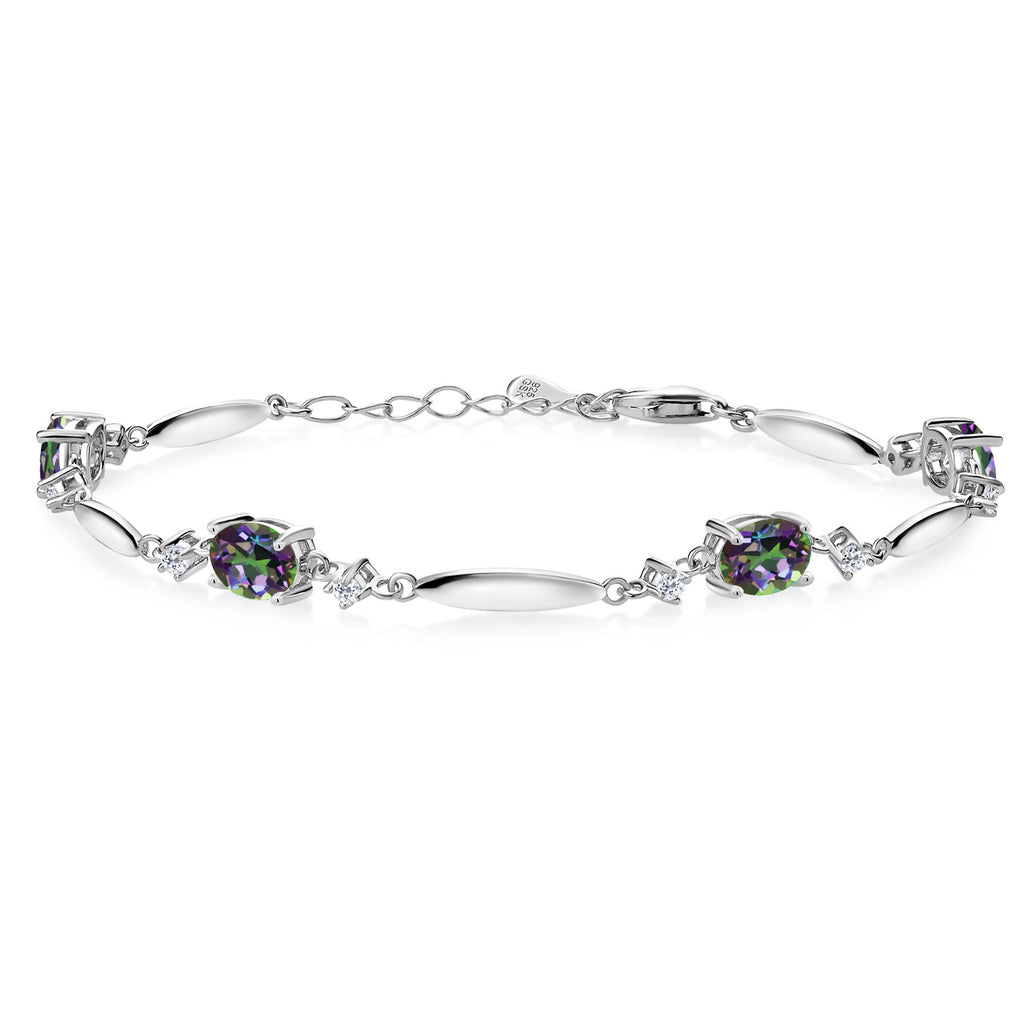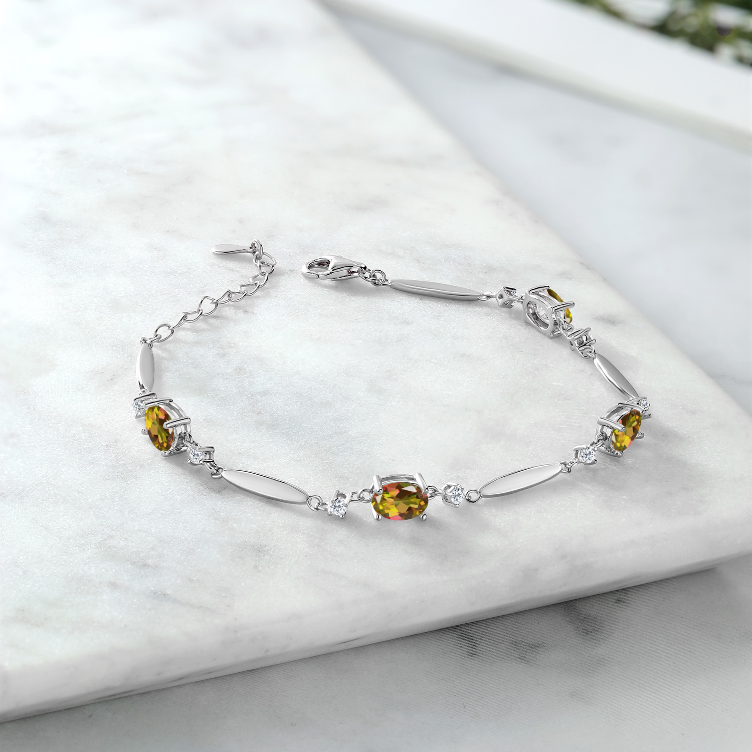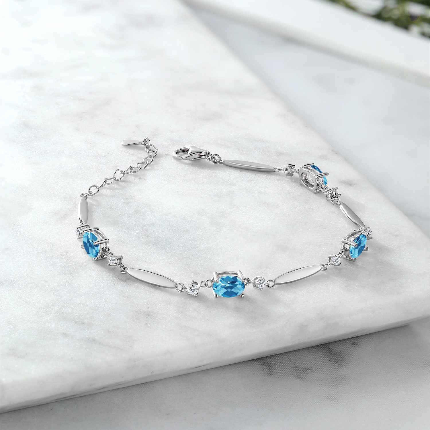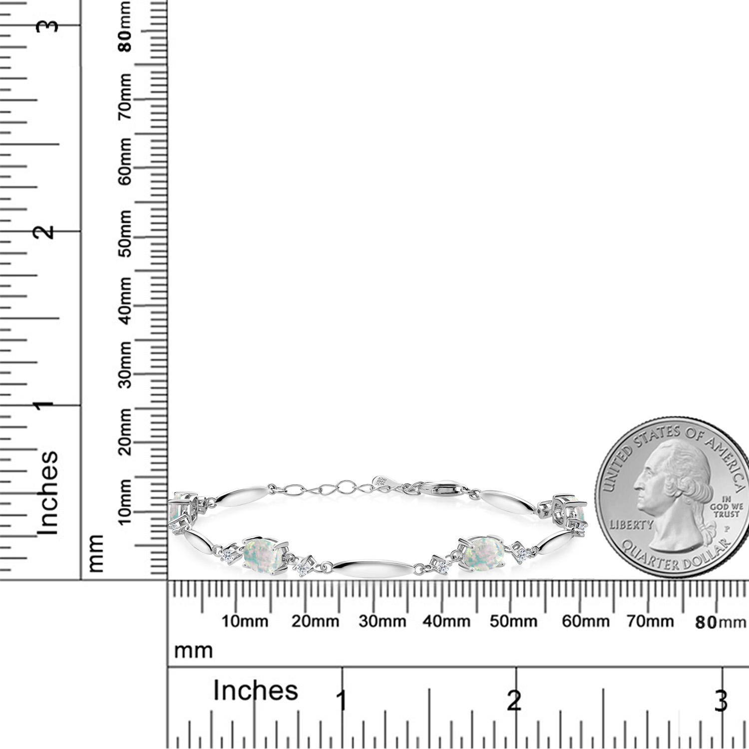 925 Sterling Silver Gemstone Birthstone and White Topaz Tennis Bracelet For Women | Oval 7X5MM and 2MM | 6 Inch + 1 Inch Extender | Fine Jewelry for Her Mom Wife