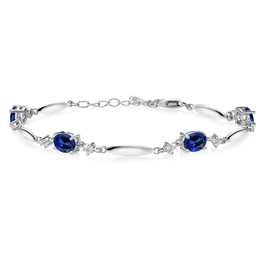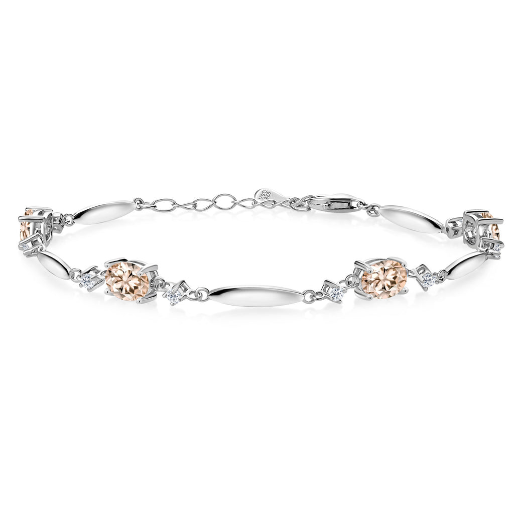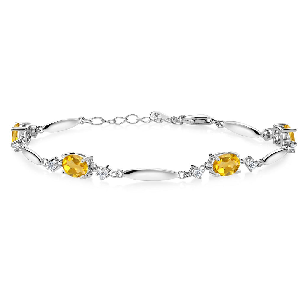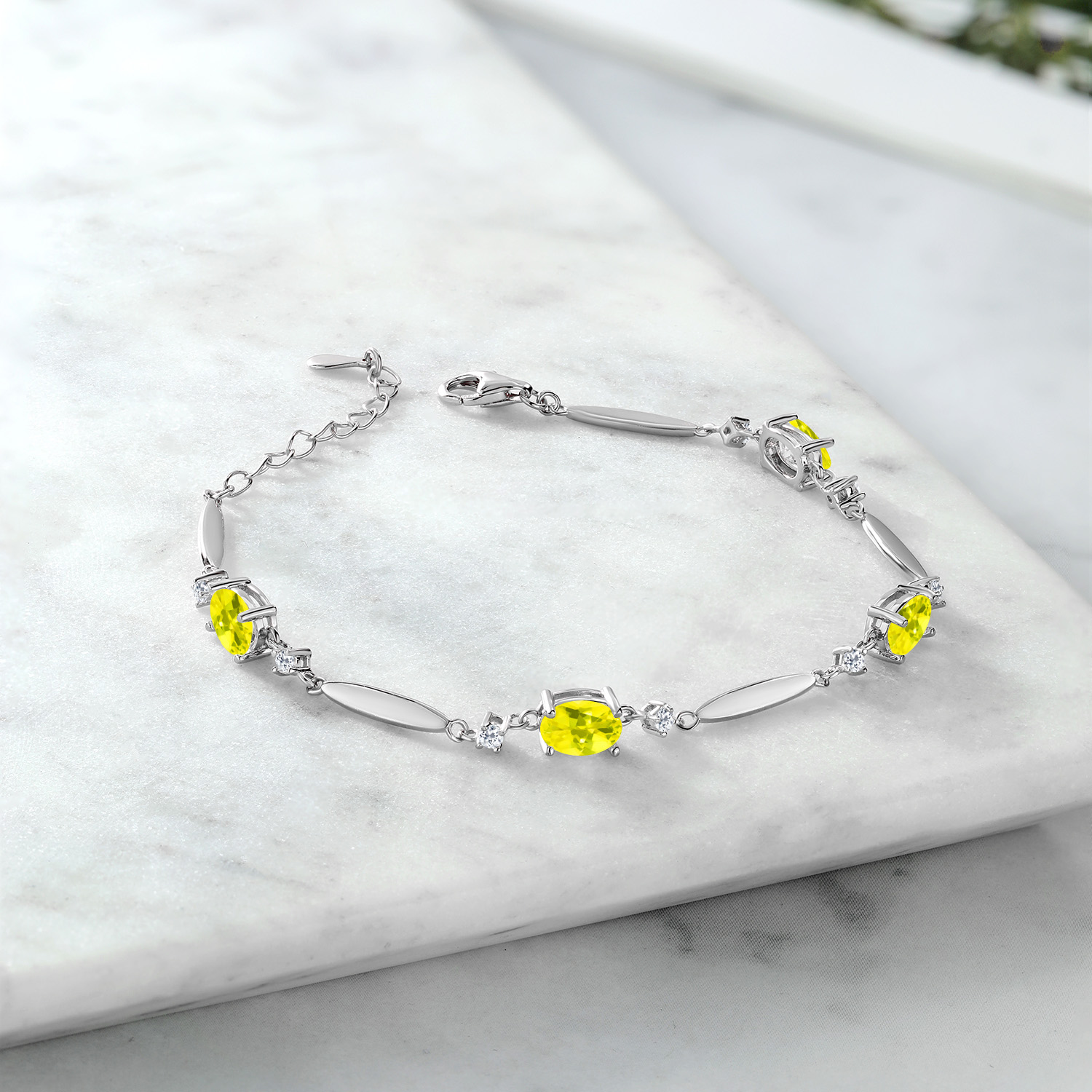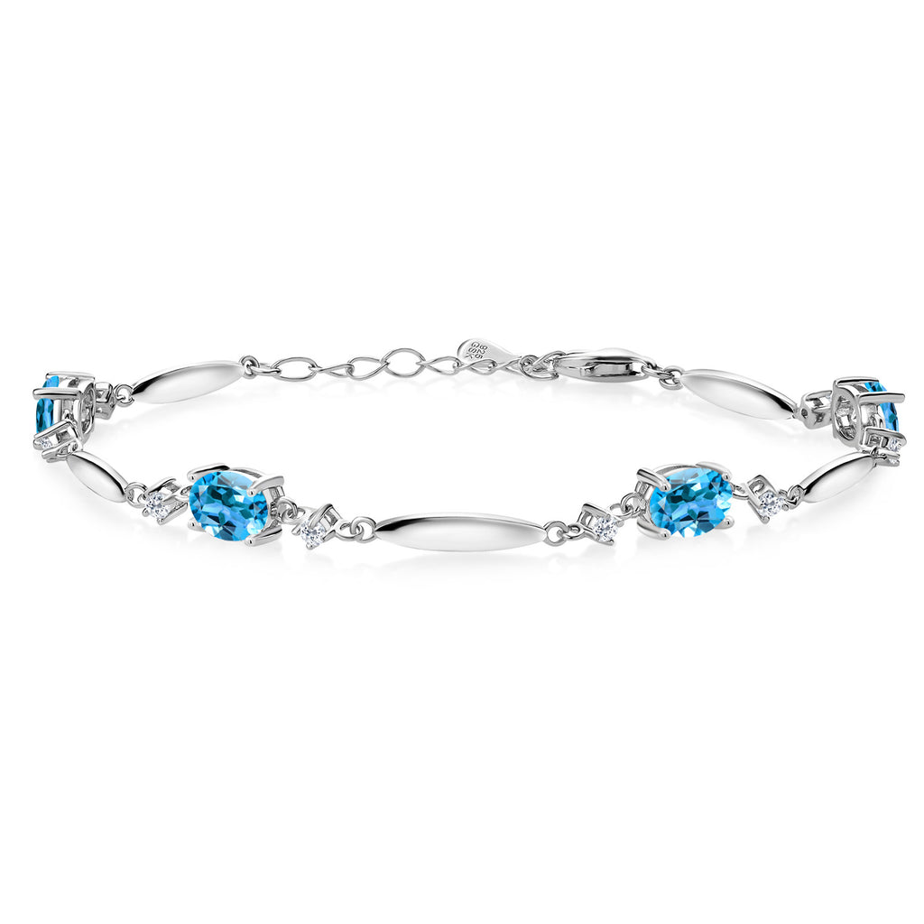 925 Sterling Silver Gemstone Birthstone and White Topaz Tennis Bracelet For Women | Oval 7X5MM and 2MM | 6 Inch + 1 Inch Extender | Fine Jewelry for Her Mom Wife