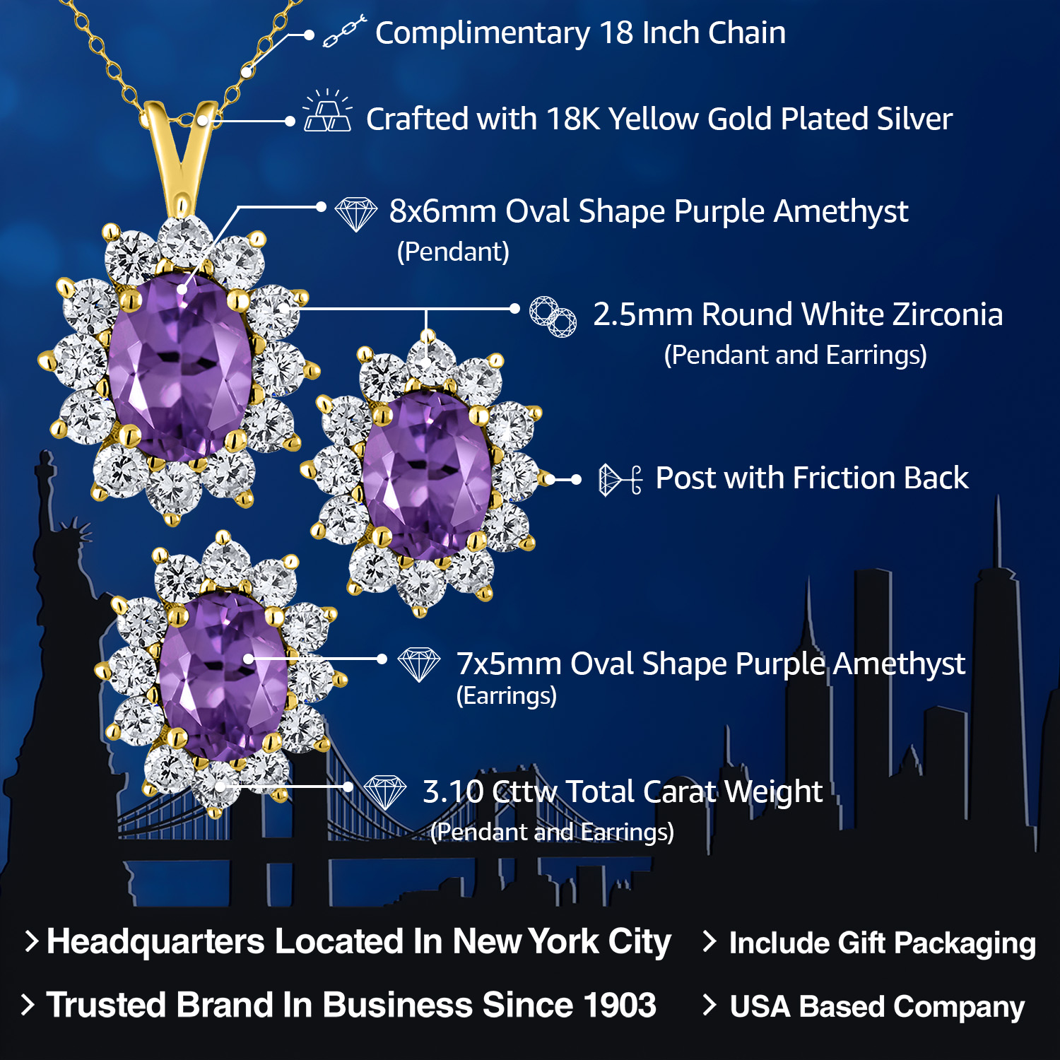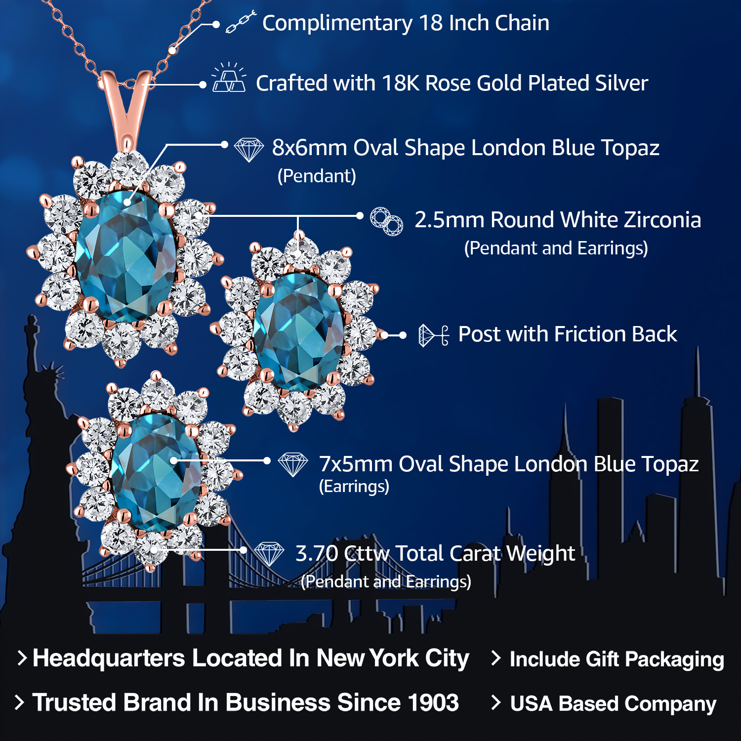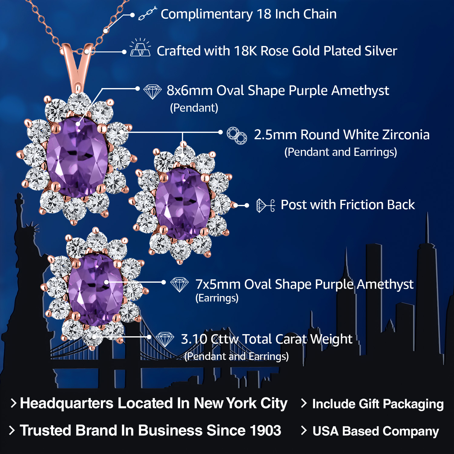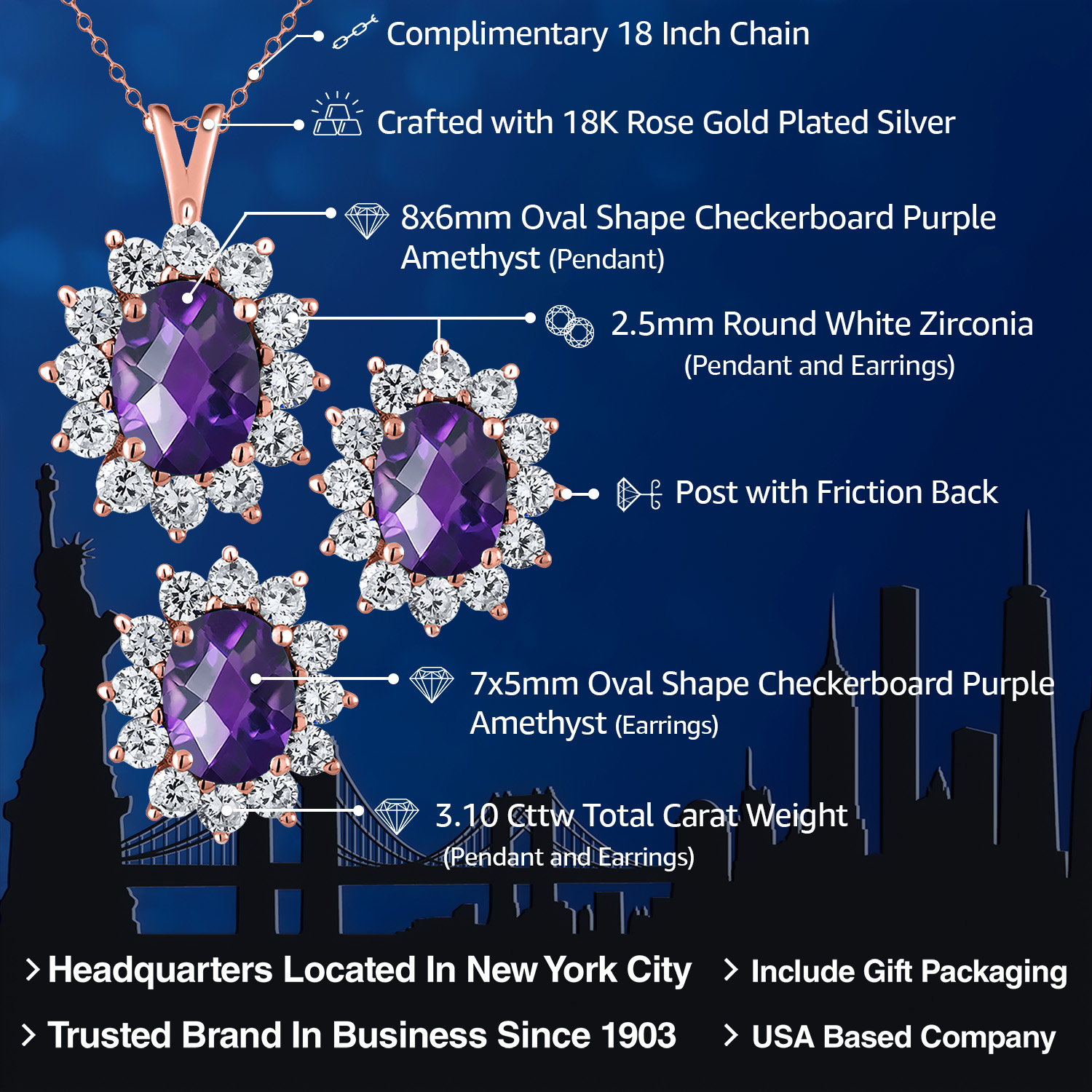 USA BASED COMPANY AND LIFETIME WARRANTY: As a USA-based company, we prioritize quality, craftsmanship, and customer satisfaction. Our commitment to excellence ensures that you receive a meticulously crafted product that meets the highest standards of design and quality. Our jewelry passes extensive quality checkpoints before being shipped to you. Enjoy prompt and professional support from our world-class customer service team, ensuring your satisfaction.