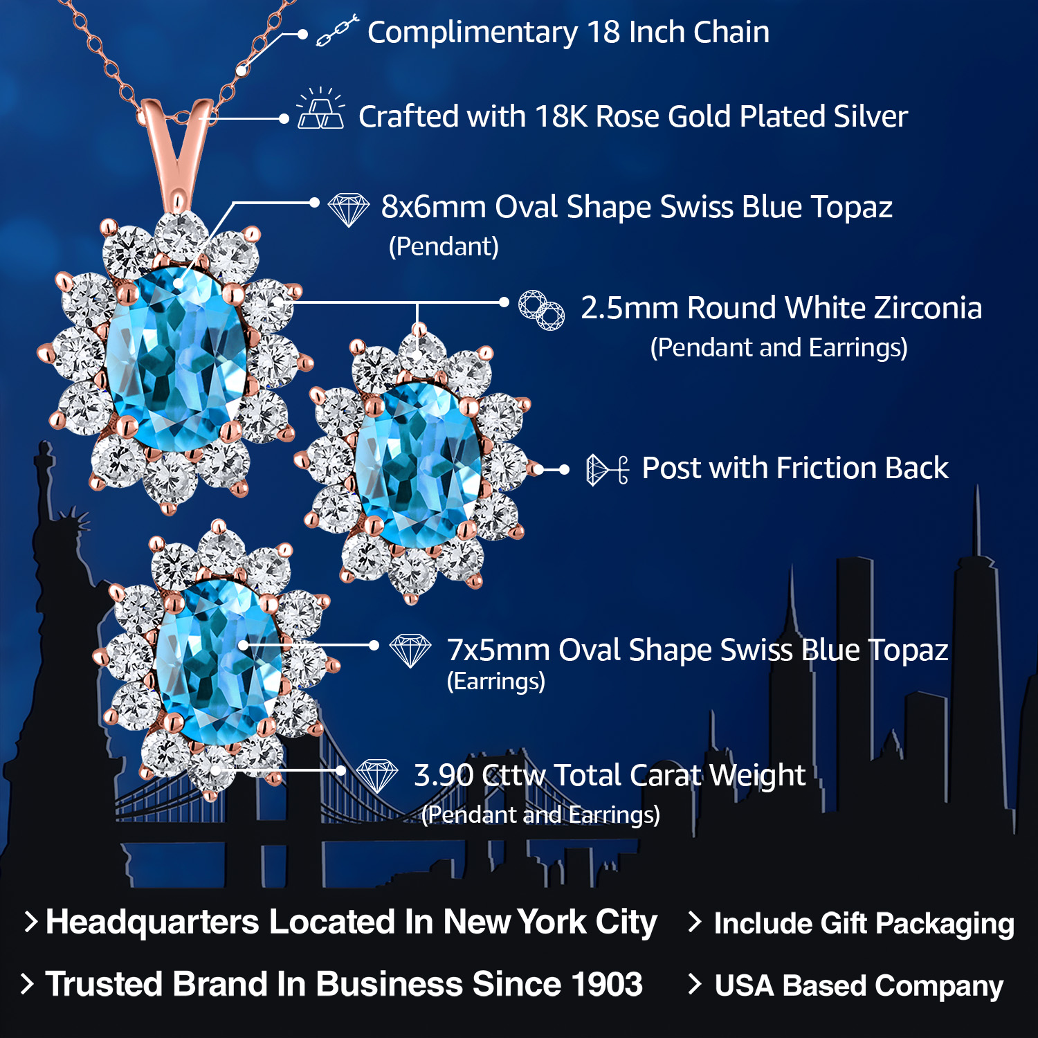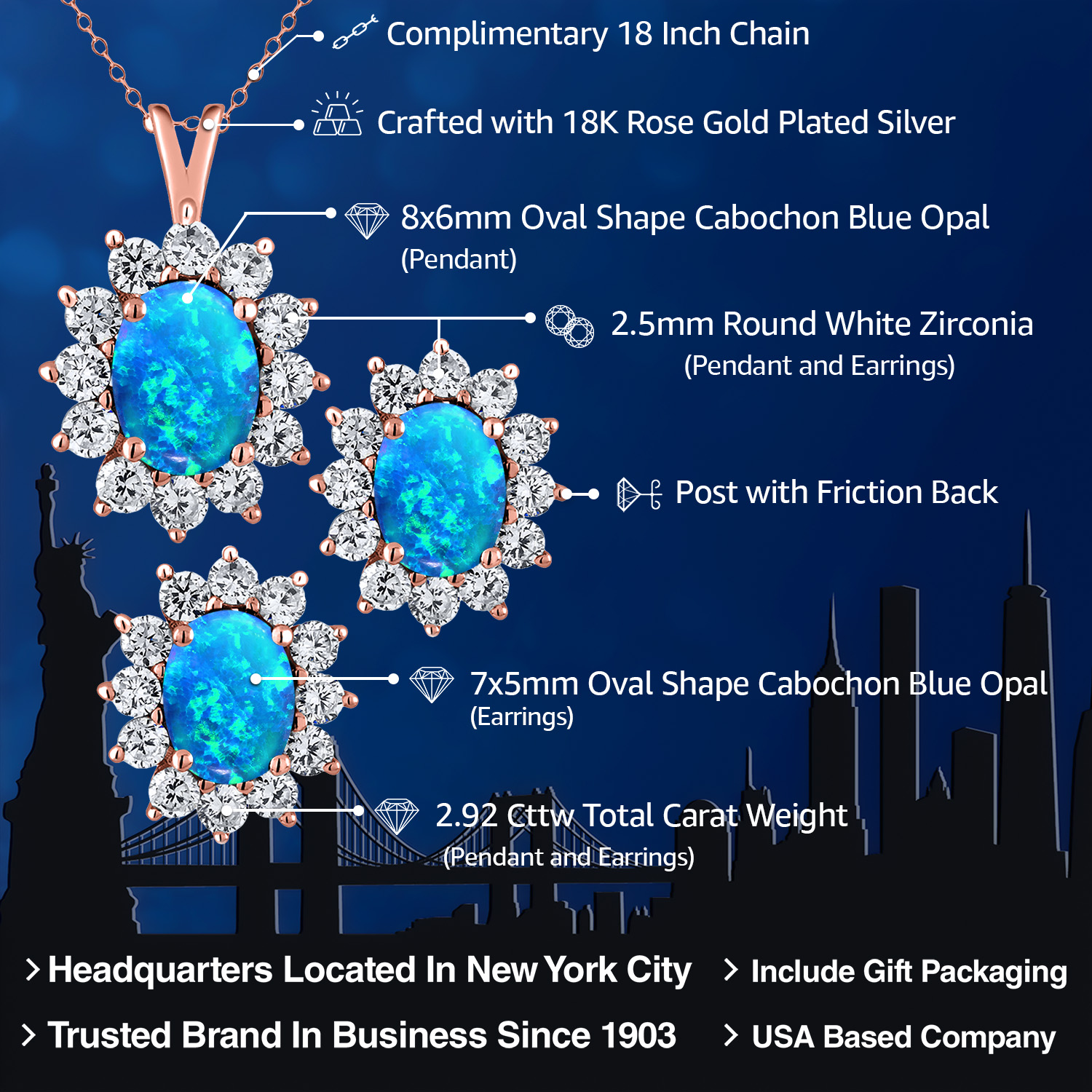 PREMIUM PLATED & STERLING SILVER OPTIONS: This pendant and earrings set is crafted in high-quality 925 sterling silver and also available in your choice of rich 18K yellow gold or romantic 18K rose gold plating over silver. Each finish delivers lasting brilliance and strength, offering versatility to match any style. Tarnish-resistant and made for longevity, this set ensures timeless elegance with everyday durability and comfort.