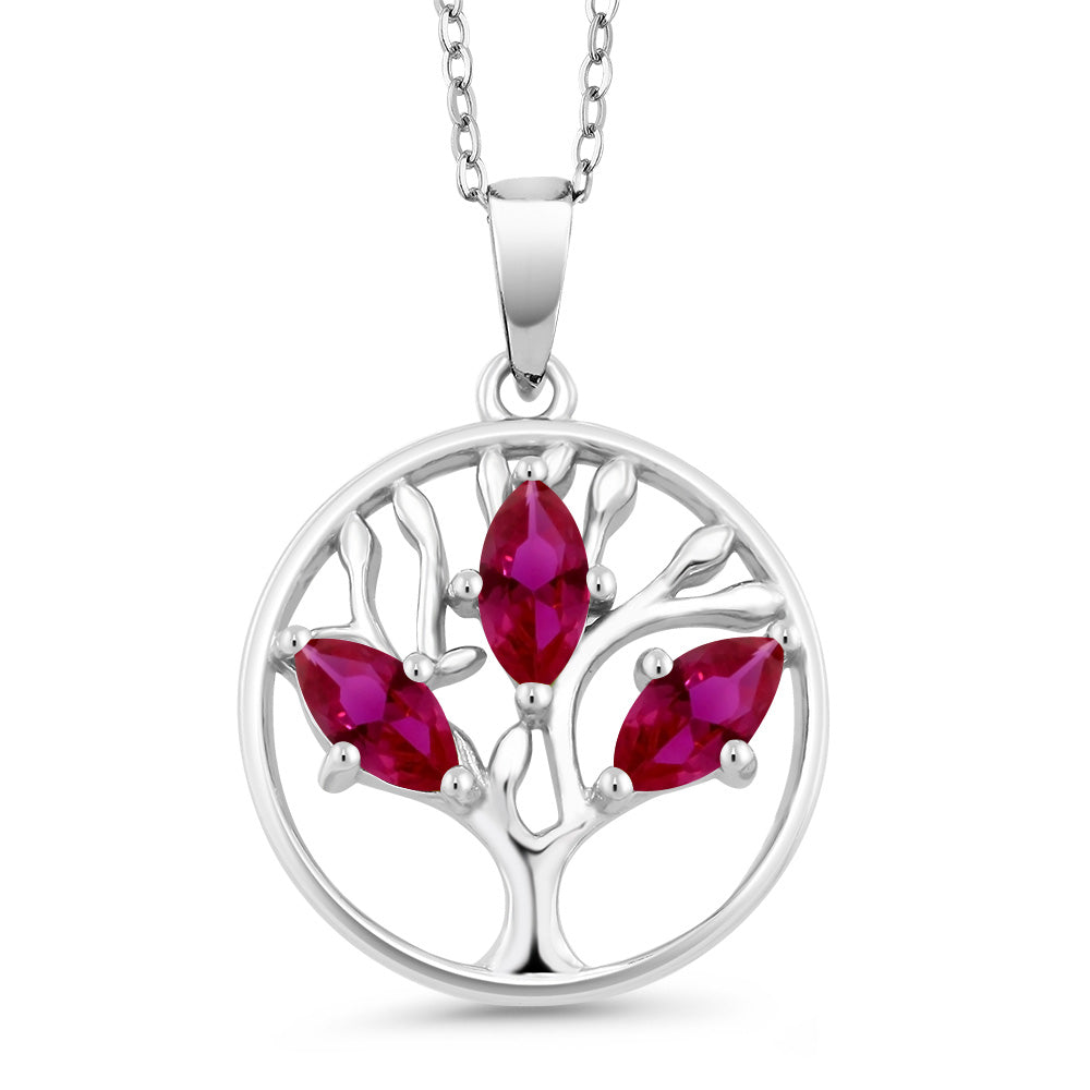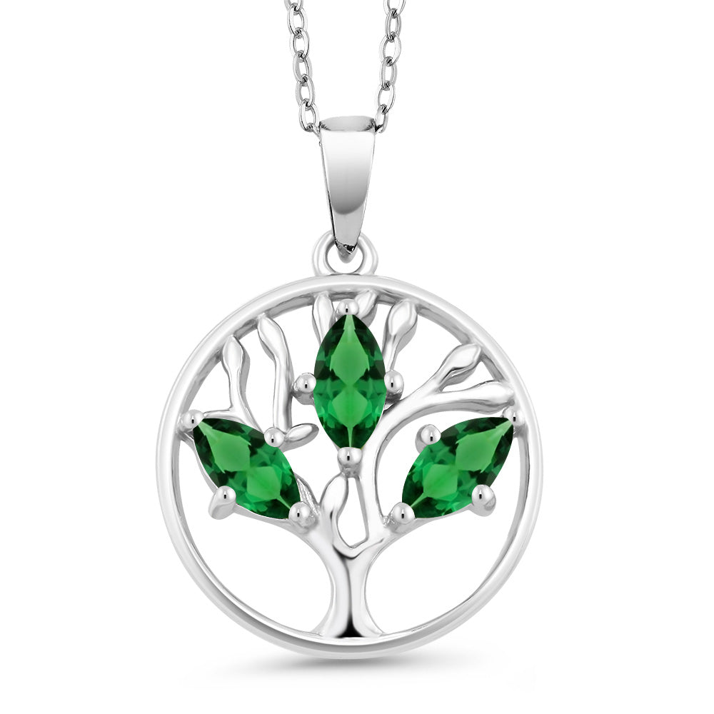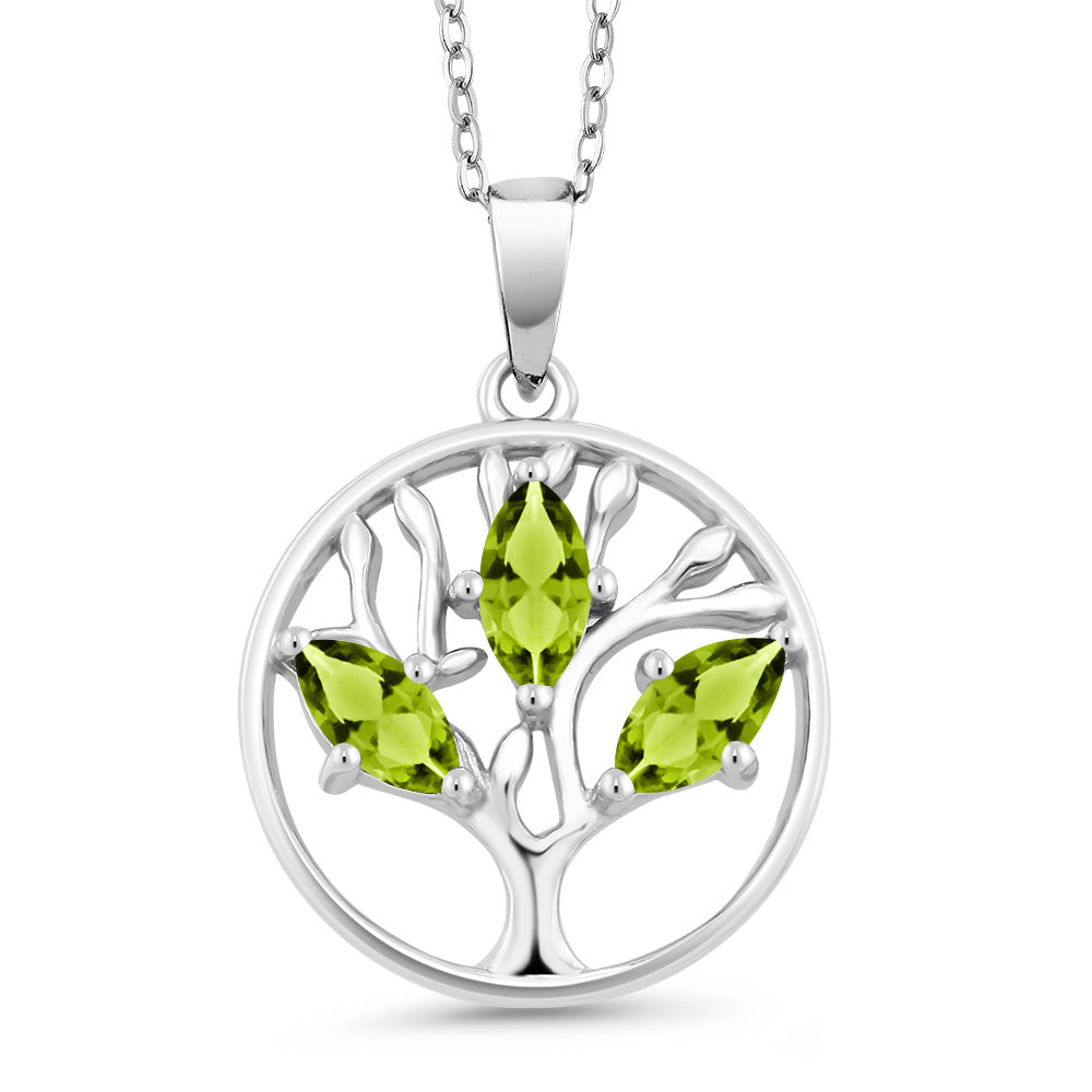 Tree of Life Pendant Necklace For Women | 925 Sterling Silver | Gemstone Birthstone | 6X3MM Marquise Cut | With 18 Inch Silver Chain | Fine Jewelry Gifts for Her Mom Women Wife