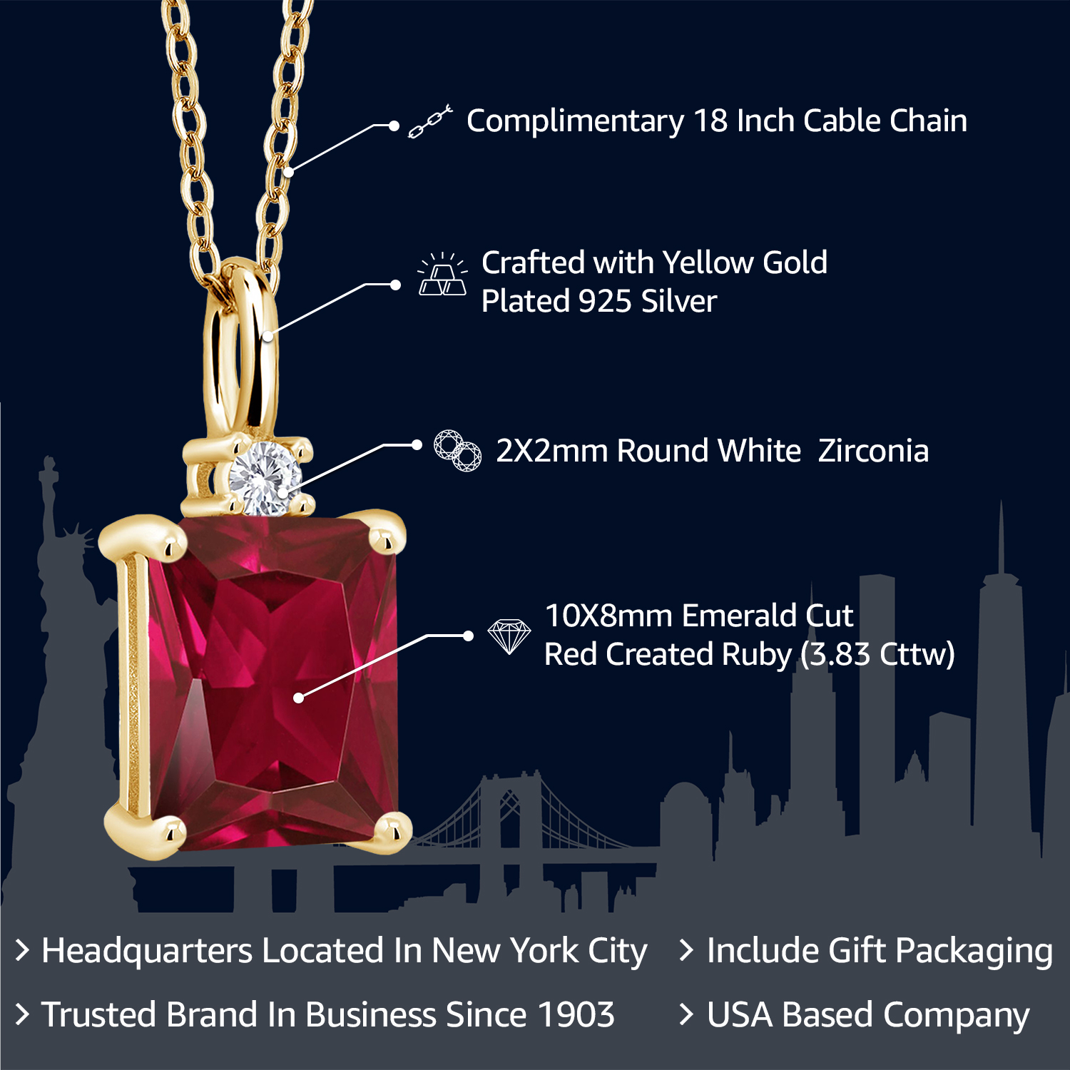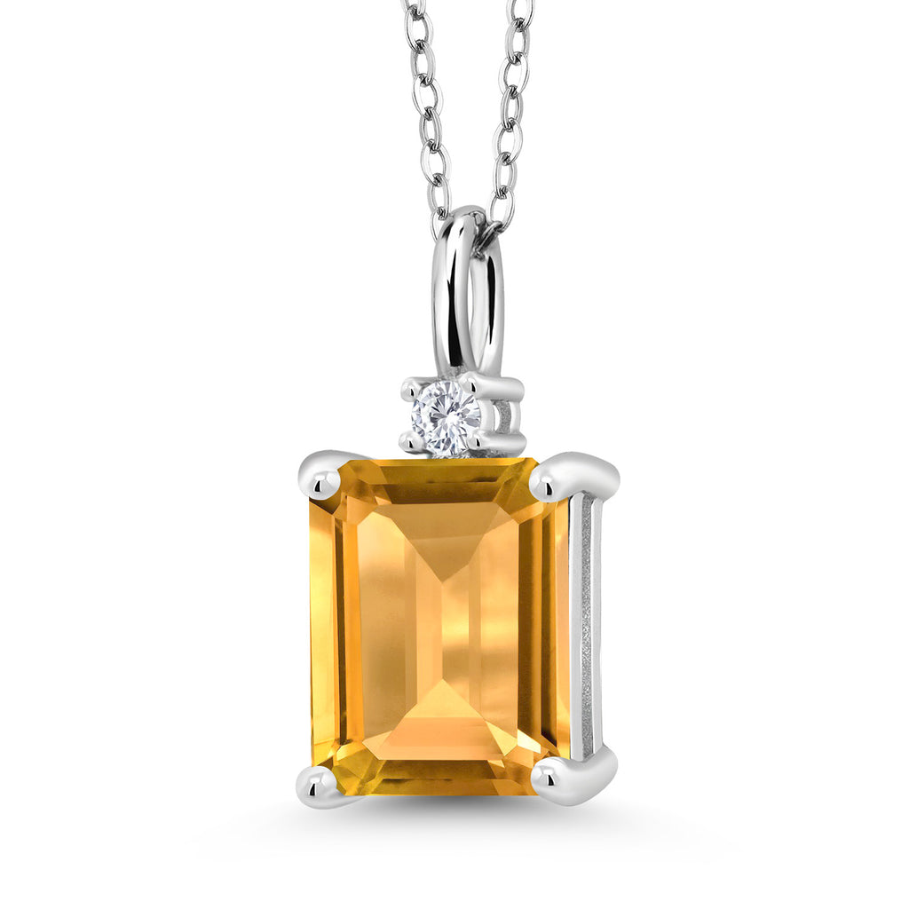 925 Sterling Silver Gemstone Birthstone Pendant Necklace for Women | Emerald Cut 10X8MM and Round 2MM | With 18 Inch Chain | Fine Jewelry for Her Mom Wife