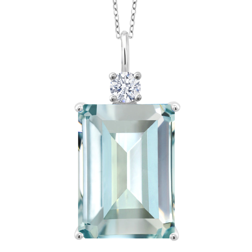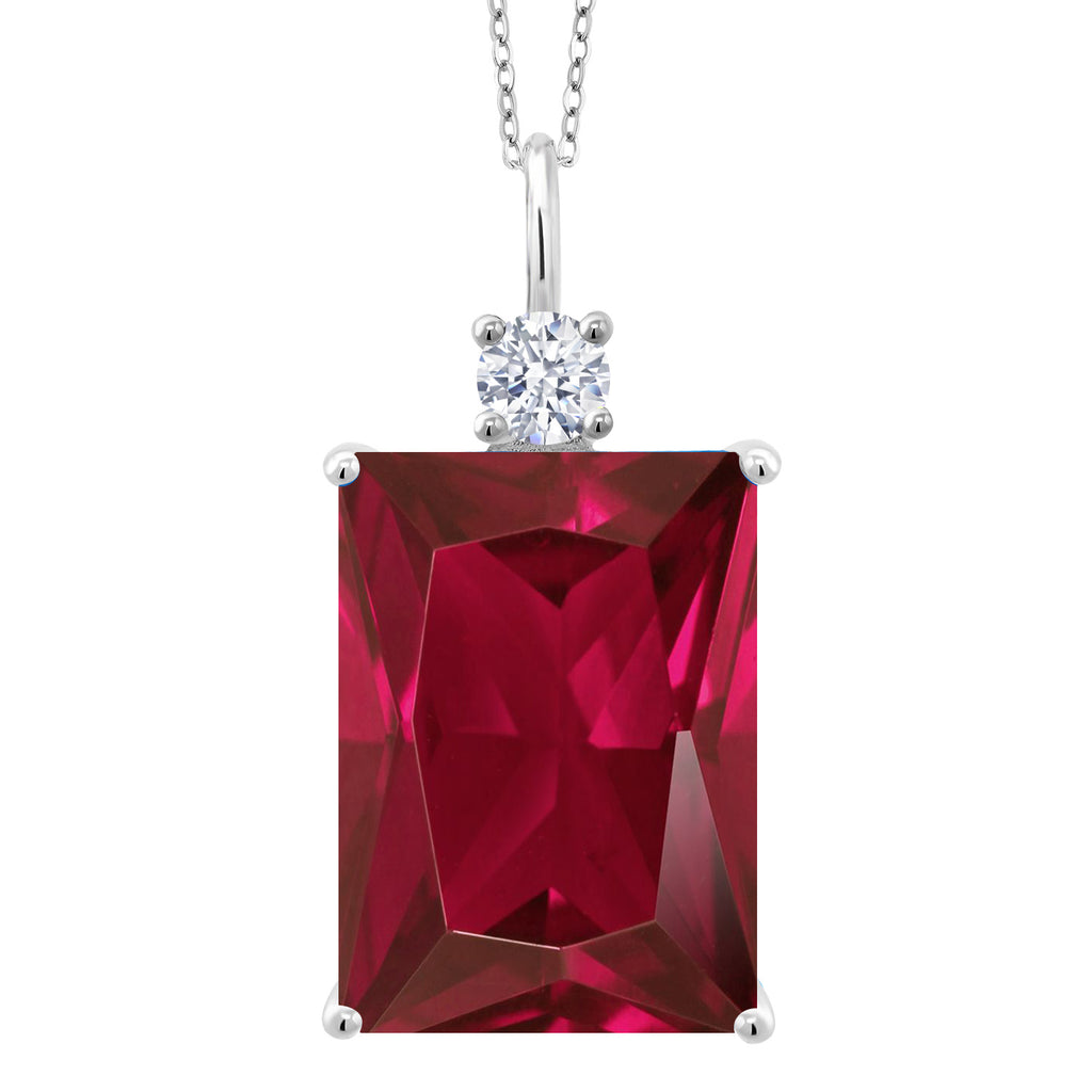 15-20 Cttw Gemstone Birthstone Pendant Necklace for Women | 925 Sterling Silver | Emerald Cut 18X13MM and Round 4MM | With 18 Inch Chain | Fine Jewelry for Her Mom Wife
