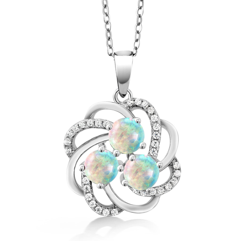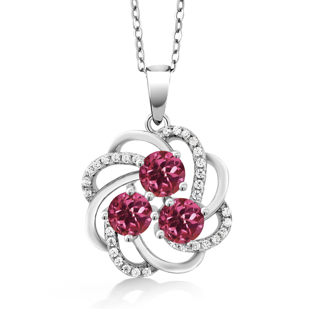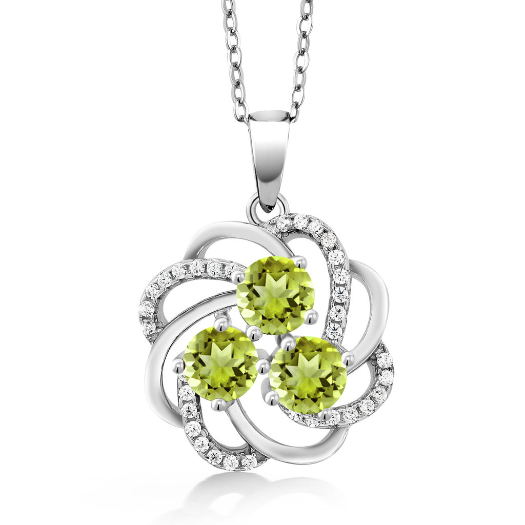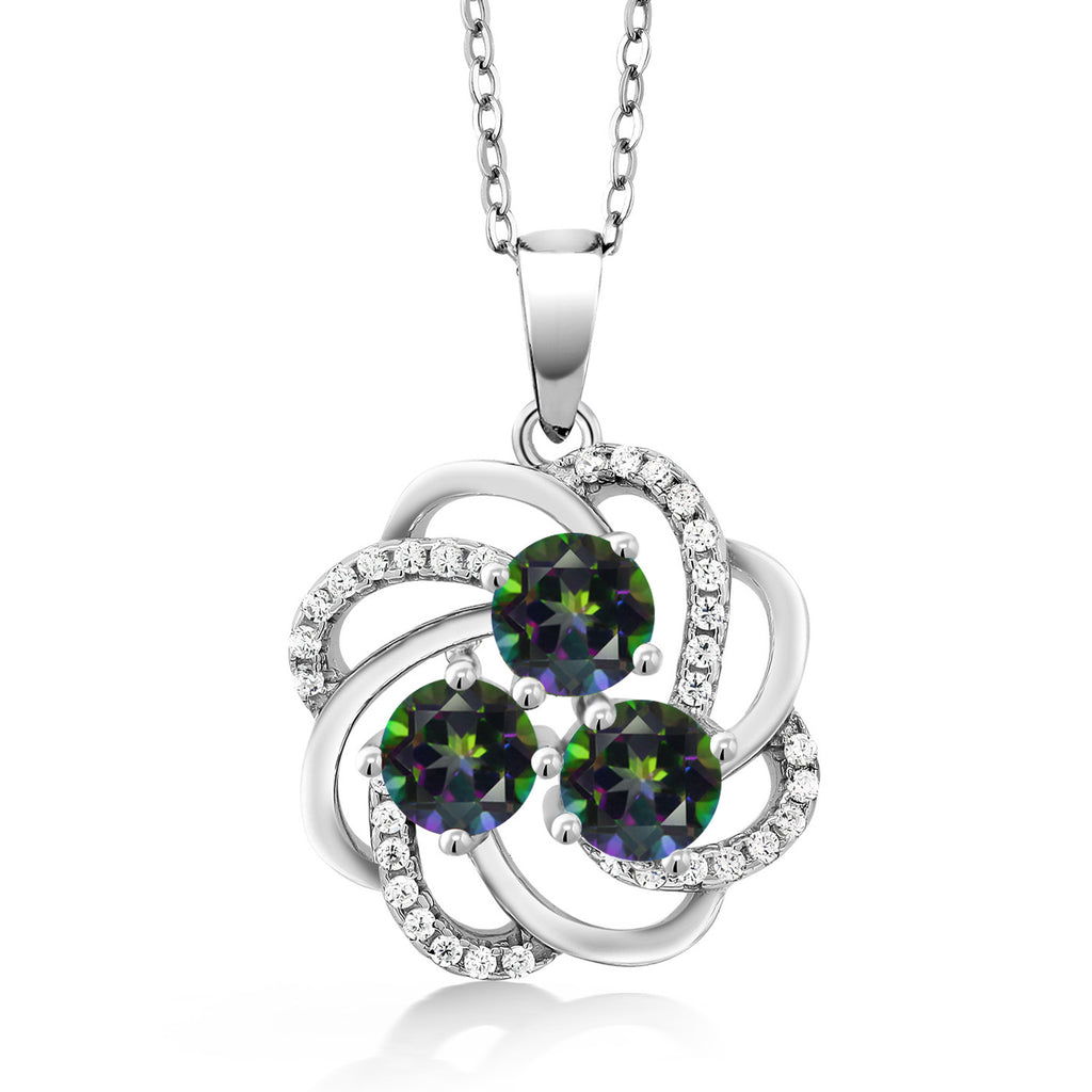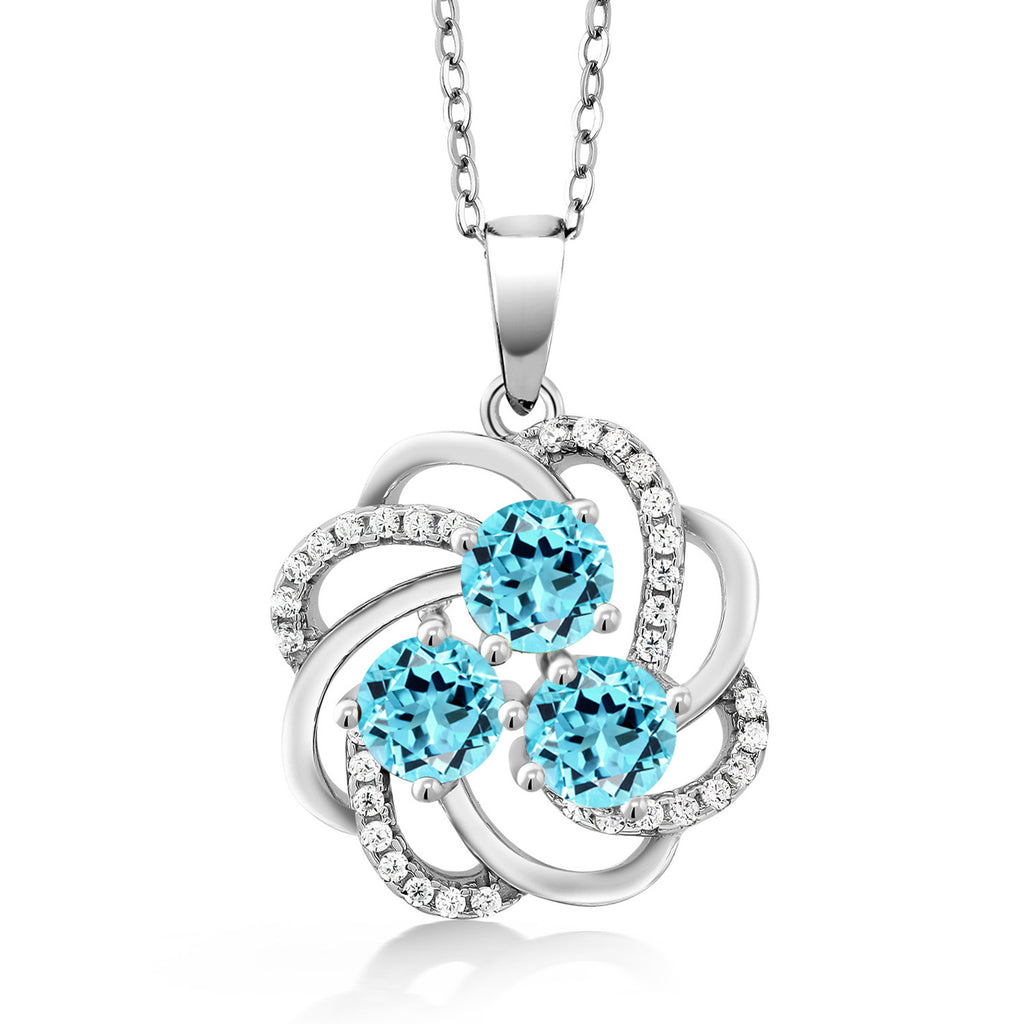 925 Sterling Silver Gemstone Birthstone Pendant Necklace for Women | Triple Round 5MM Gemstones with 1MM Accents | Floral Swirl Halo Design | Fine Jewelry Gifts for Her Mom Women Wife | 18 Inch Chain