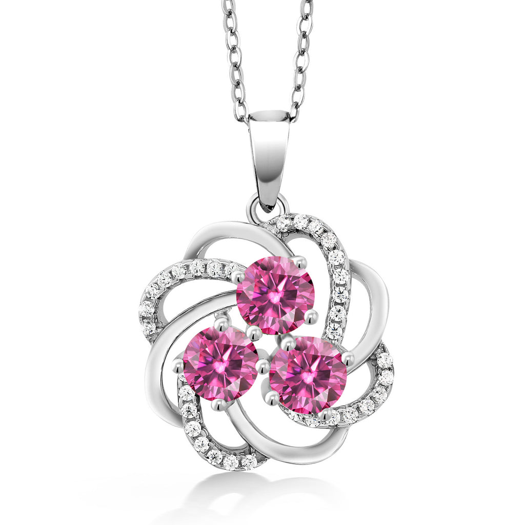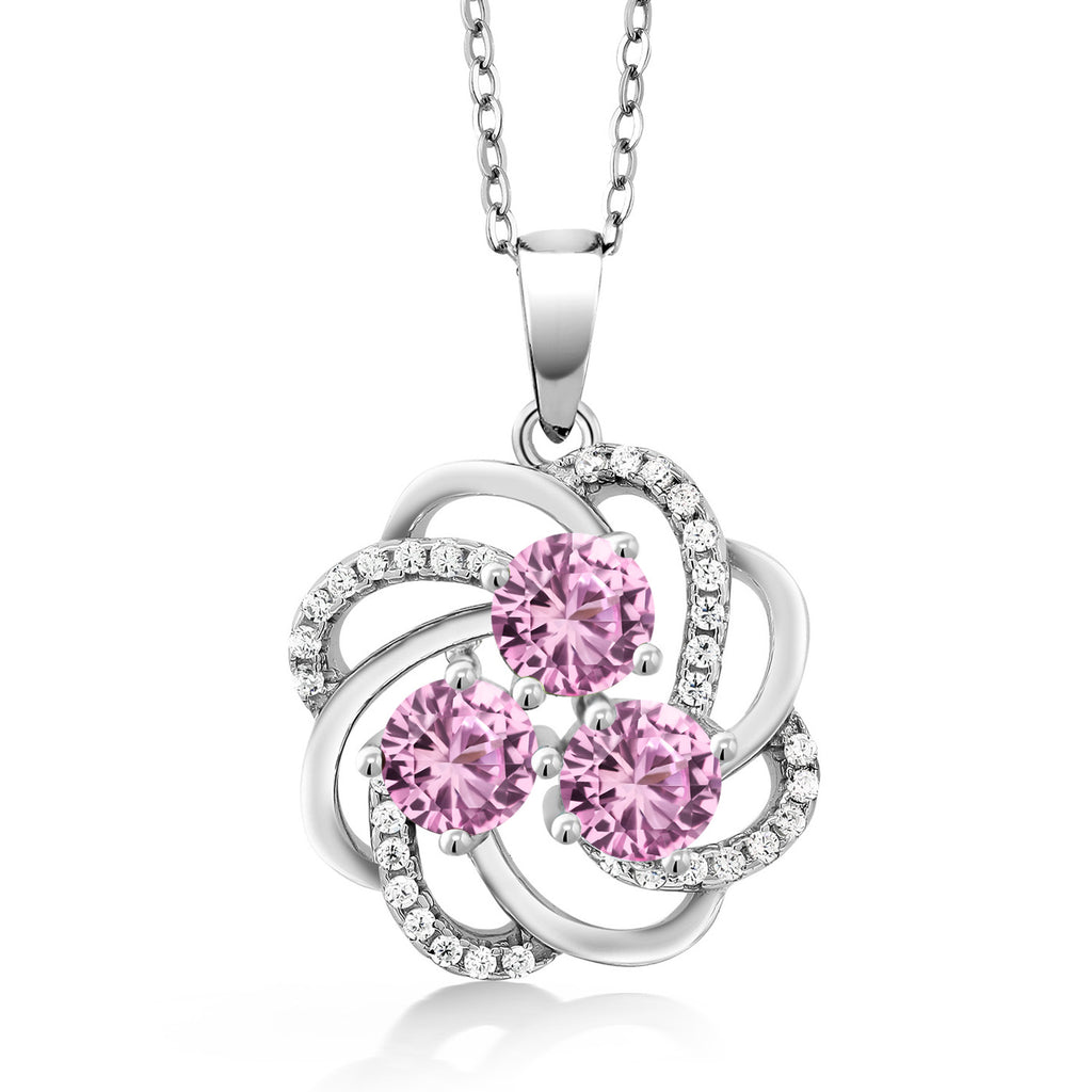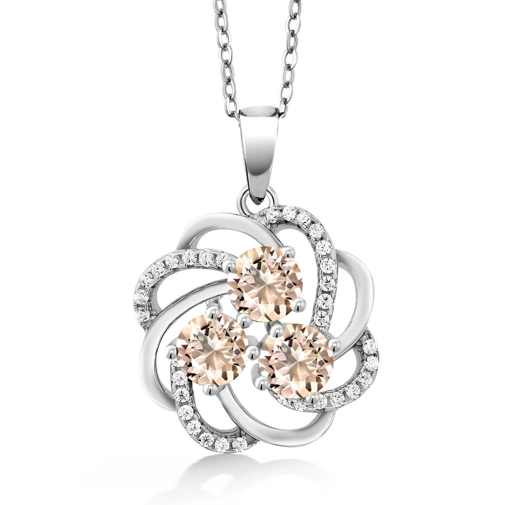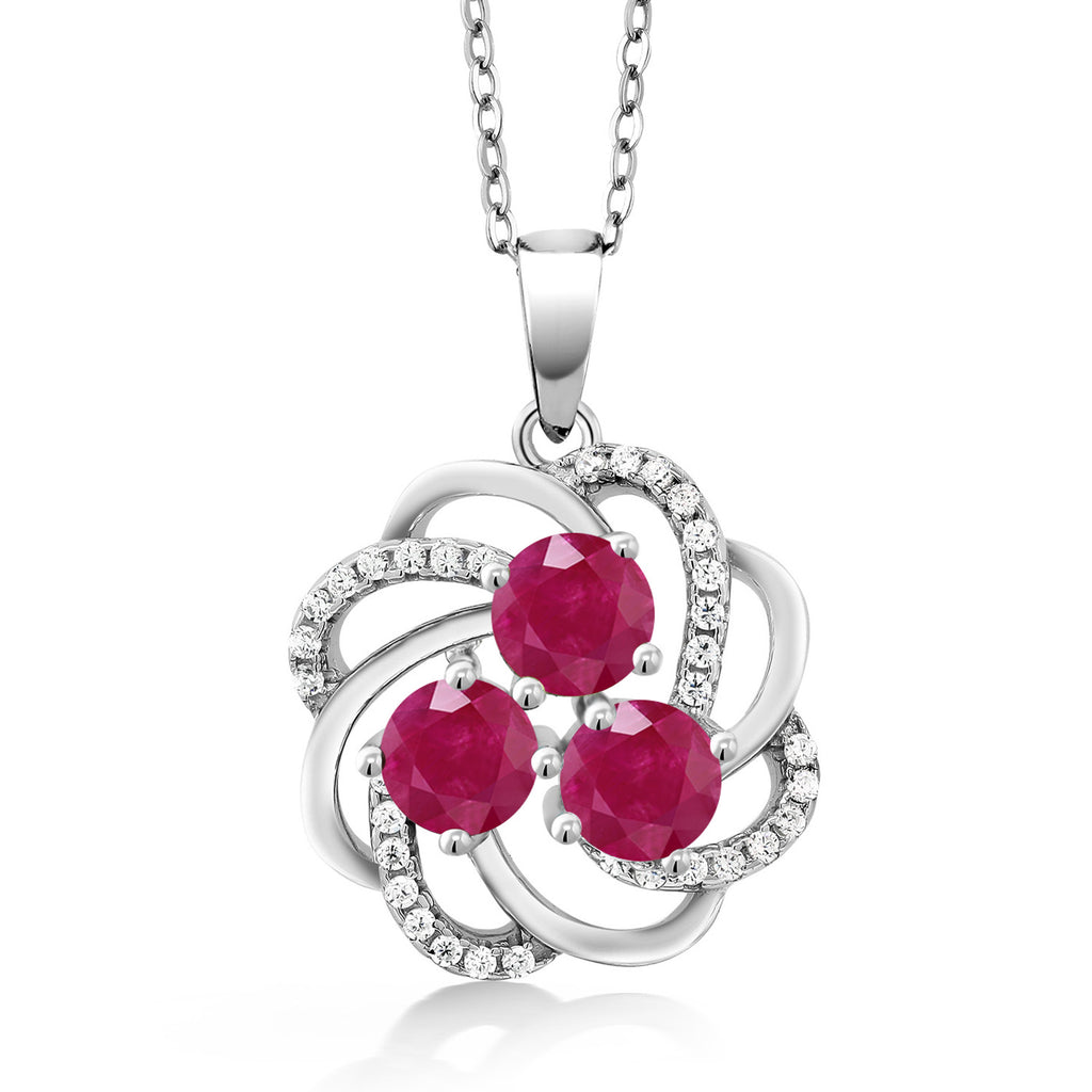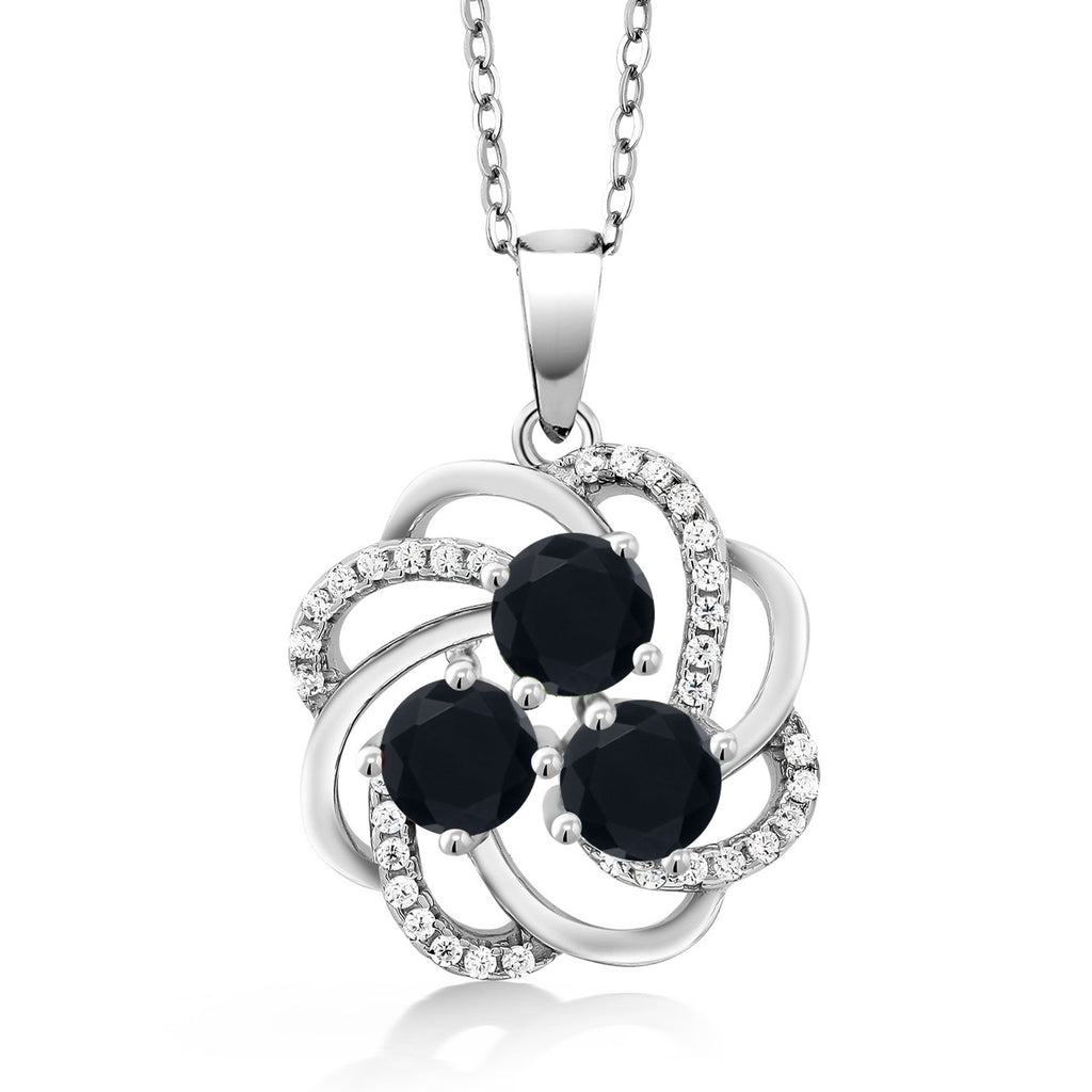 925 Sterling Silver Gemstone Birthstone Pendant Necklace for Women | Triple Round 5MM Gemstones with 1MM Accents | Floral Swirl Halo Design | Fine Jewelry Gifts for Her Mom Women Wife | 18 Inch Chain