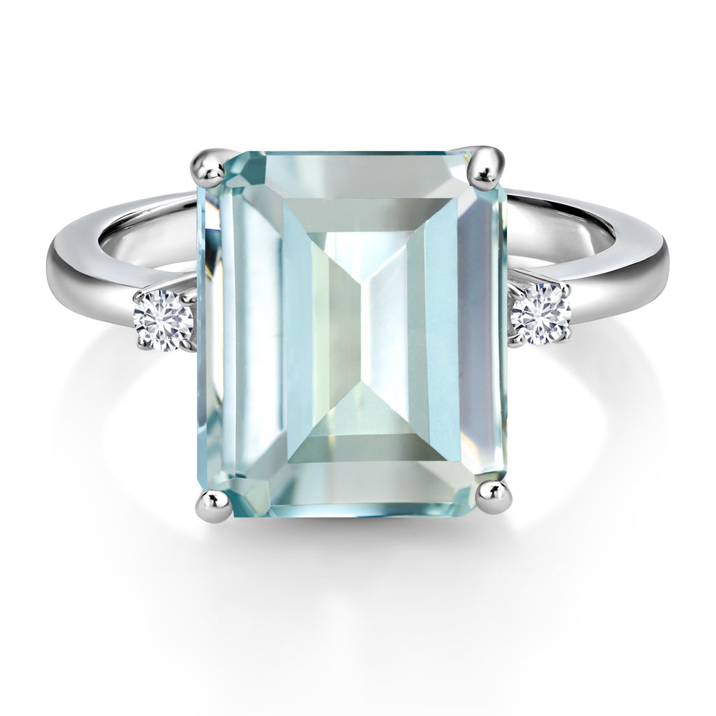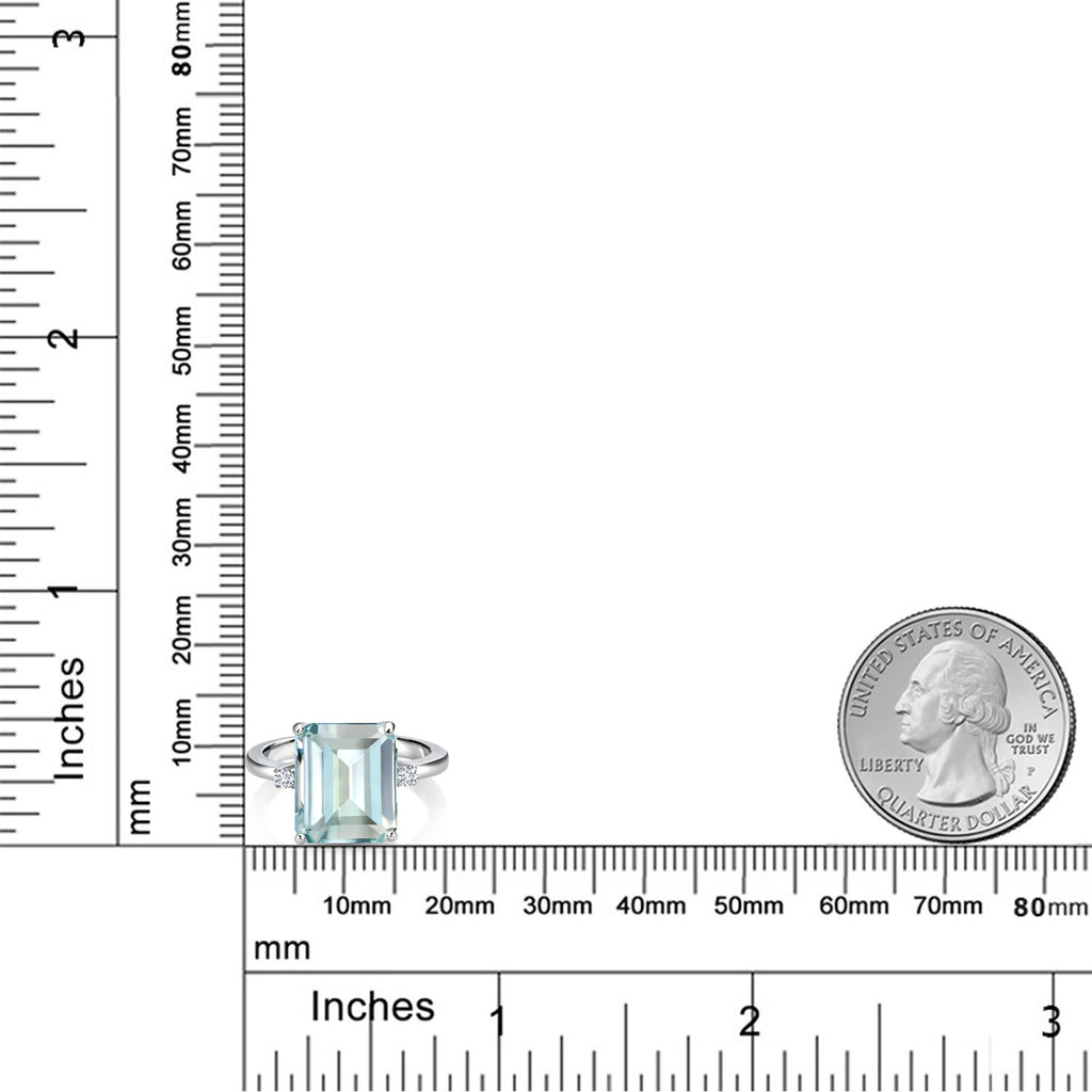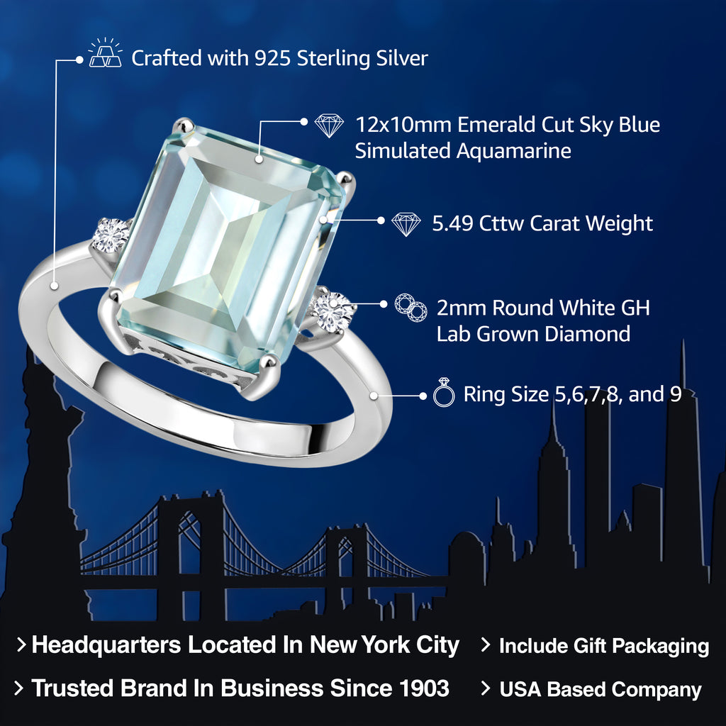 5-7 Cttw Gemstone Birthstone and White Lab Grown Diamond 3-Stone Engagement Ring | 925 Sterling Silver | Center Emerald Cut 12X10MM | Wedding Anniversary Promise Ring For Women