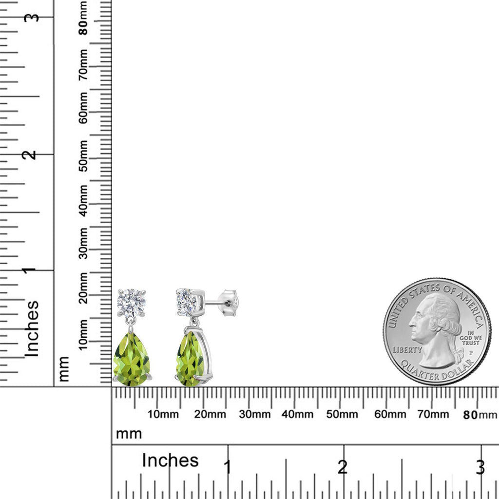MEASUREMENTS: 12x8mm Pear Shape Green Peridot, 6x6mm Round E - F Lab Grown Diamond. Total Carat Weight is 7.44 cttw