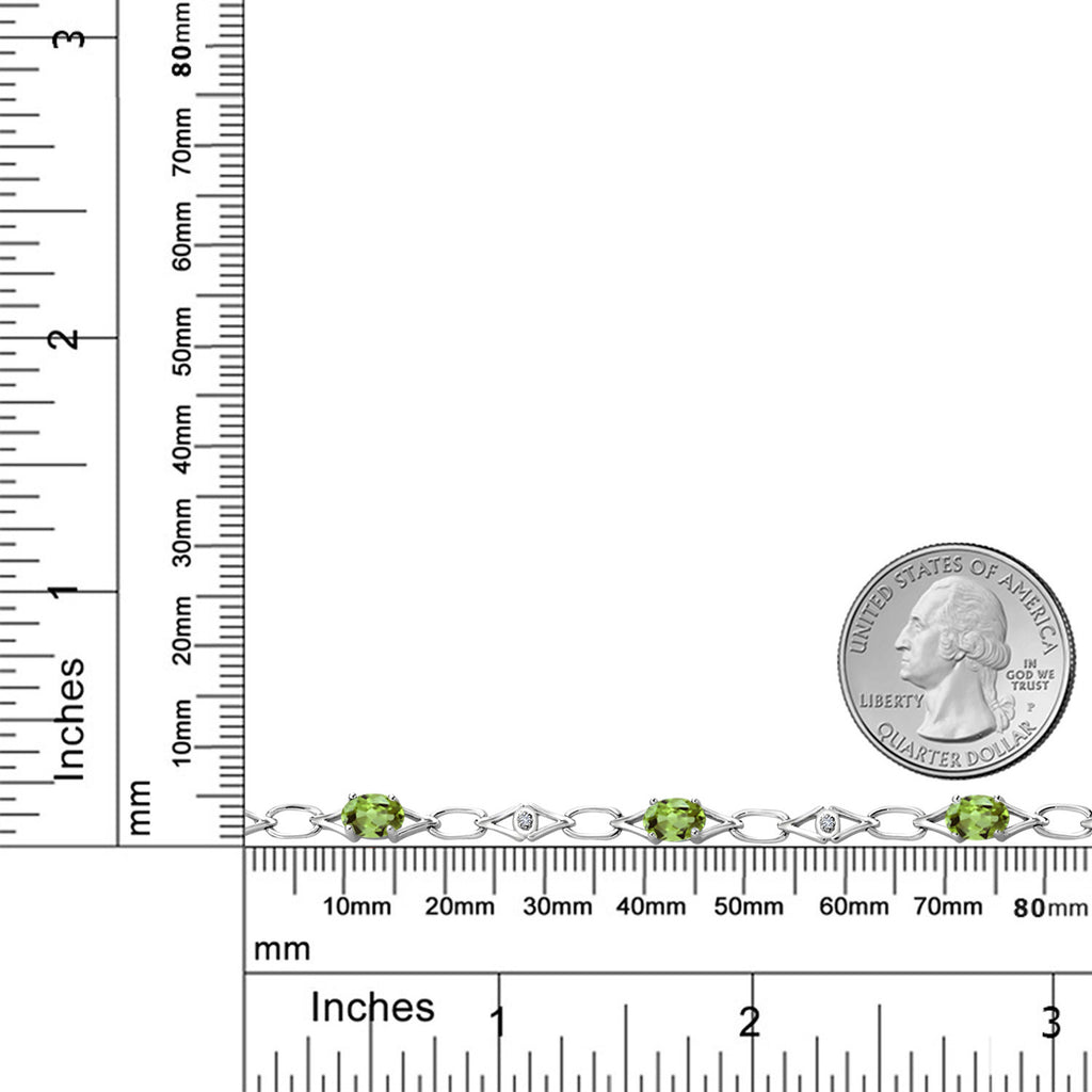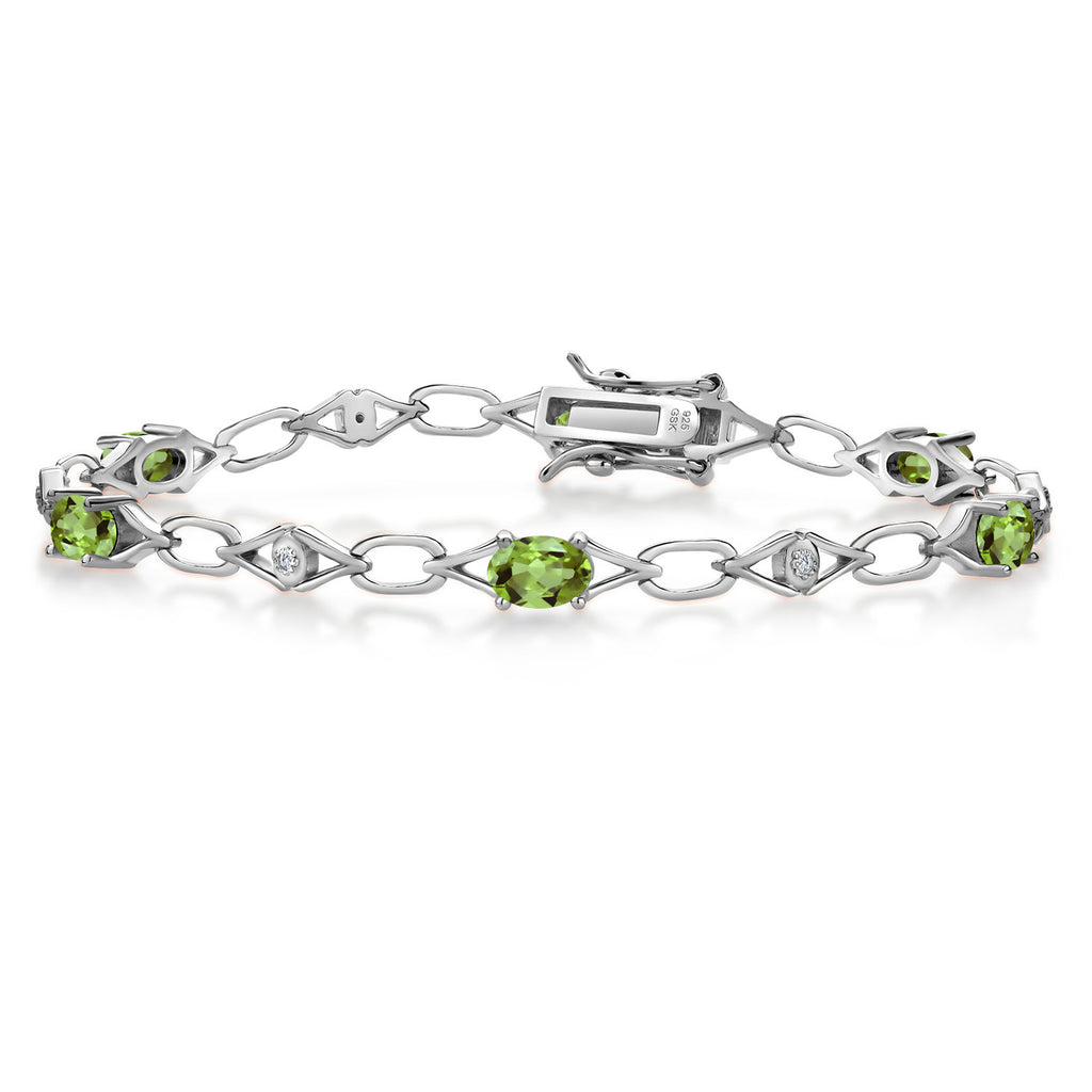925 Sterling Silver Green Peridot and Round White Lab Grown Diamond Tennis Bracelet For Women (3.04 Cttw, Gemstone Birthstone, Oval 6X4MM, 7.25 Inches)
