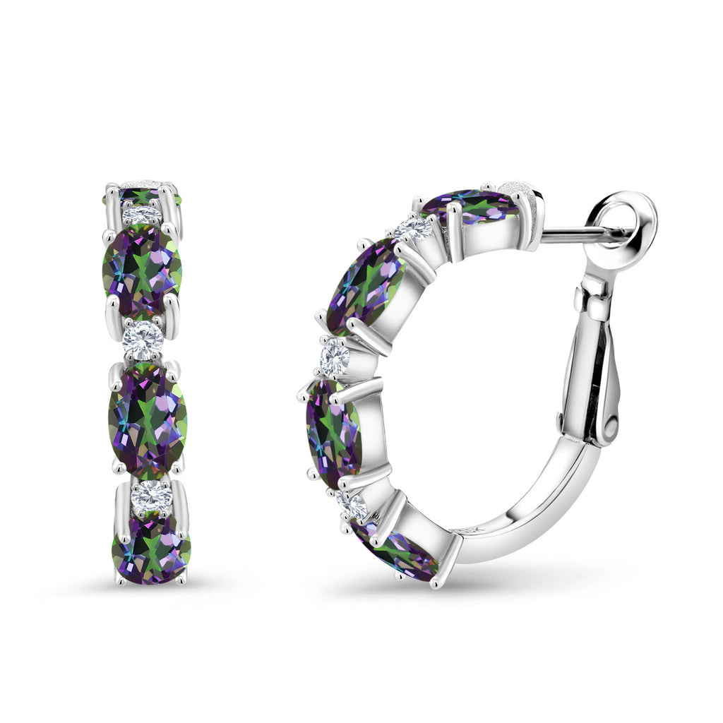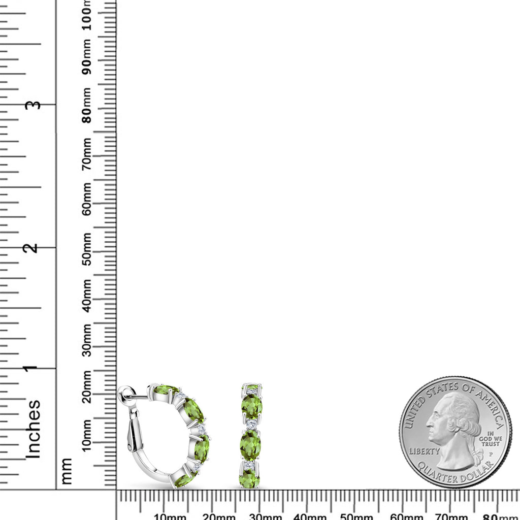 925 Sterling Silver Oval Gemstone Birthstone and White Lab Grown Diamond Accent Hoop Earrings For Women | Oval 6X4MM and Round 2MM | 20MM = 0.80 Inch | Fine Jewelry for Her Mom Women Wife