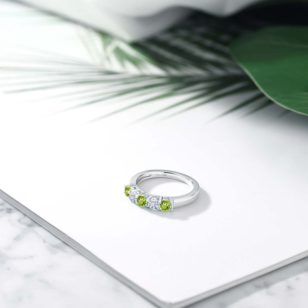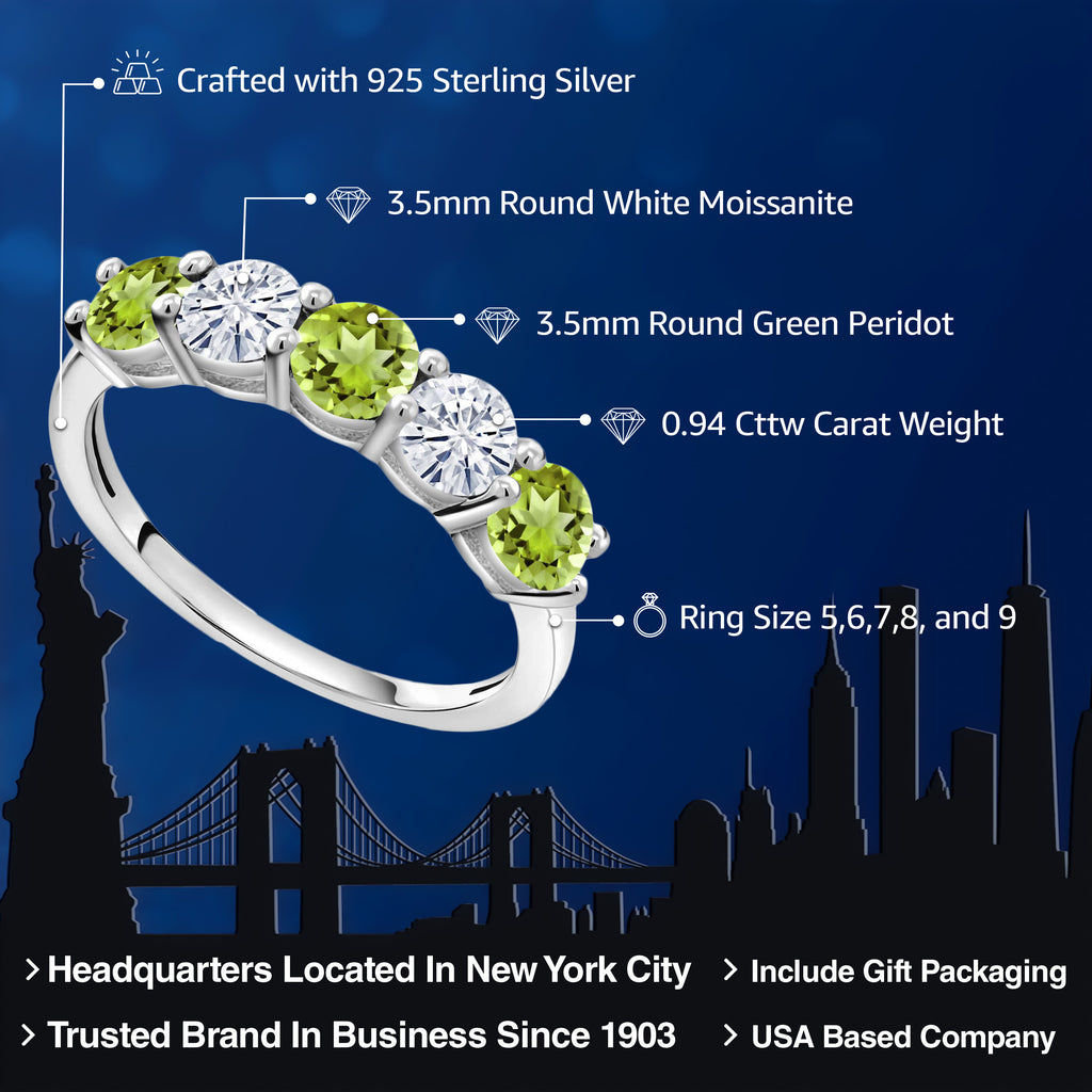 ELEGANT AND TIMELESS DESIGN: This stunning wedding band features a vibrant 3.5MM Round Green Peridot, the August Birthstone, accented by shimmering White Moissanite, totaling 0.94 Cttw, symbolizing love and commitment.