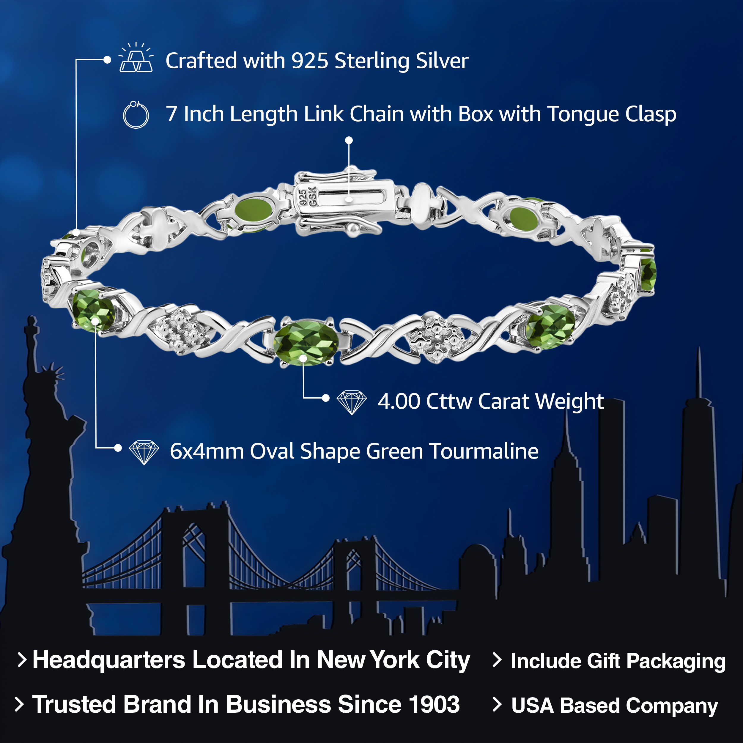 TIMELESS INFINITY LINK DESIGN: The bracelet's exquisite infinity link design symbolizes eternal love and connection, enhanced by the seamless integration of vibrant gemstones. Expert craftsmanship is evident in every detail, from the secure clasp ensuring a perfect fit to the fluid movement of each link. This piece is a testament to fine jewelry artistry, combining elegance with enduring quality for a look that complements both casual and formal occasions.