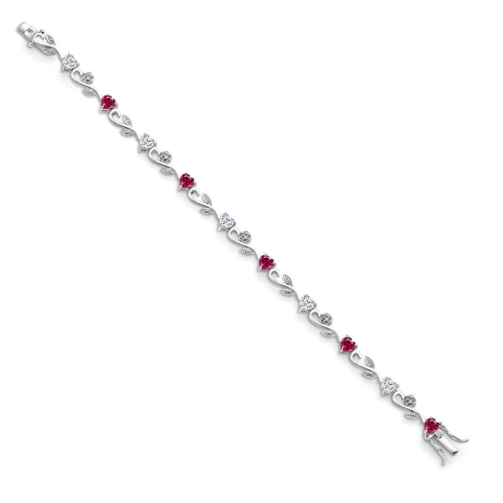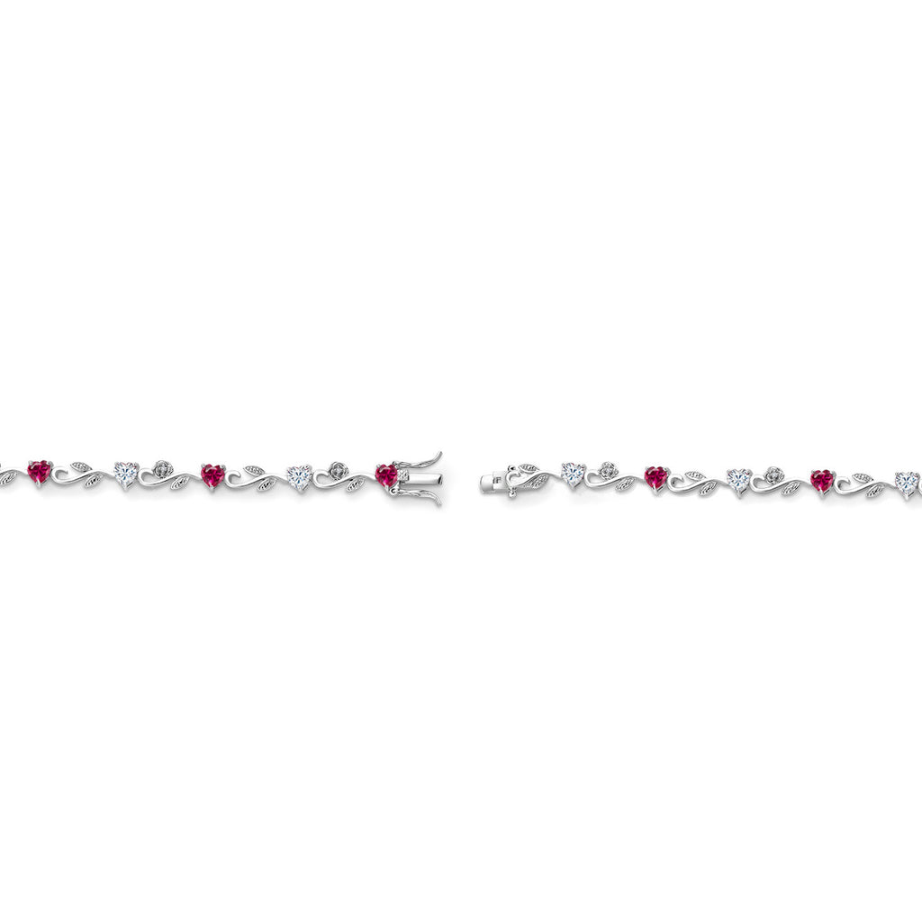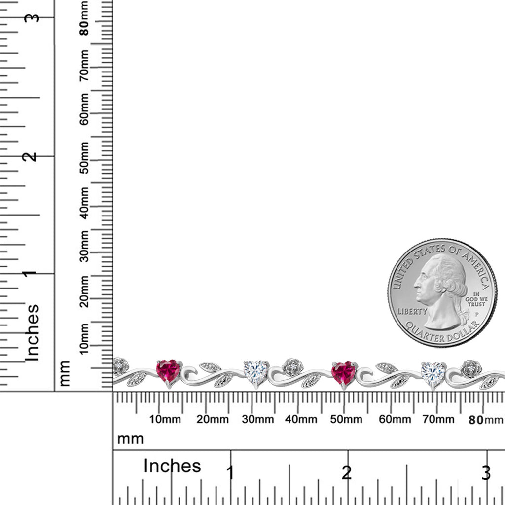 925 Sterling Silver Heart Shape Red Created Ruby White Moissanite and Round White Lab Grown Diamond Greek Vine Flower Tennis Bracelet For Women (5.14 Cttw, 7.5 Inch)