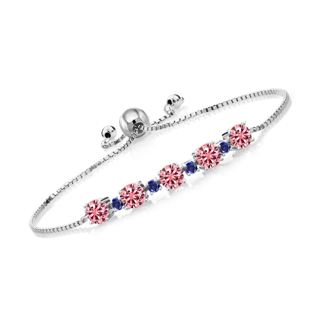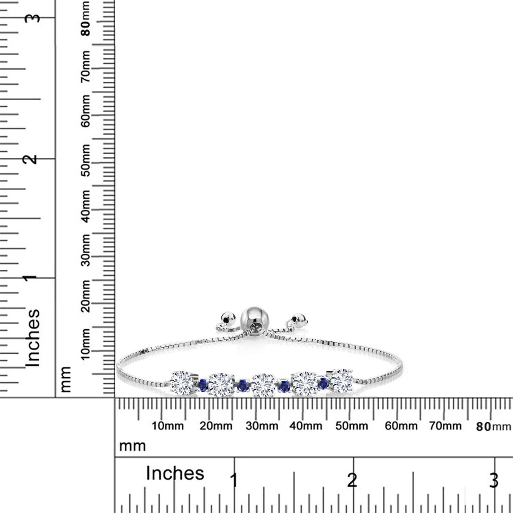 925 Sterling Silver Gemstone Birthstone and Blue Created Sapphire Tennis Bracelet for Women | Round 5MM and 2.5MM | Adjustable Bolo Design | Easy-On Easy-Off | Fully Adjustable Up to 9 Inch