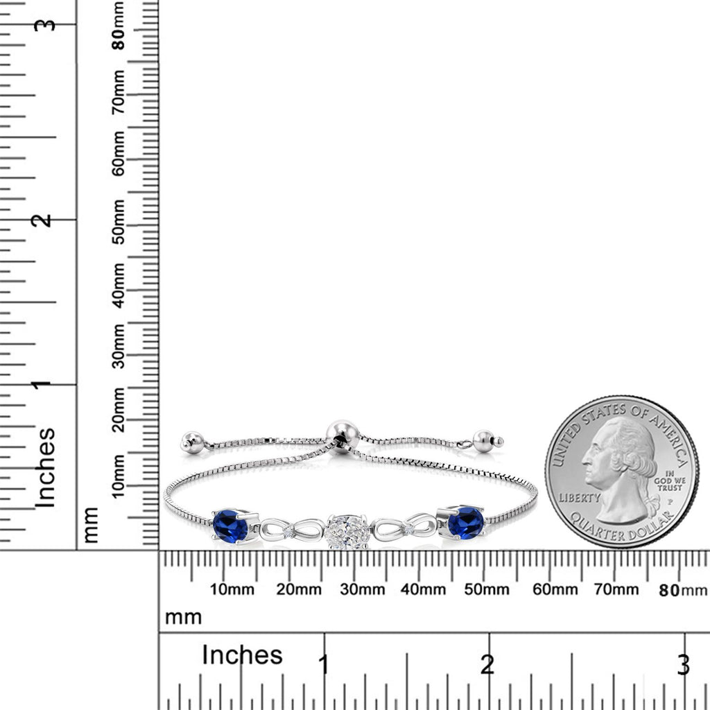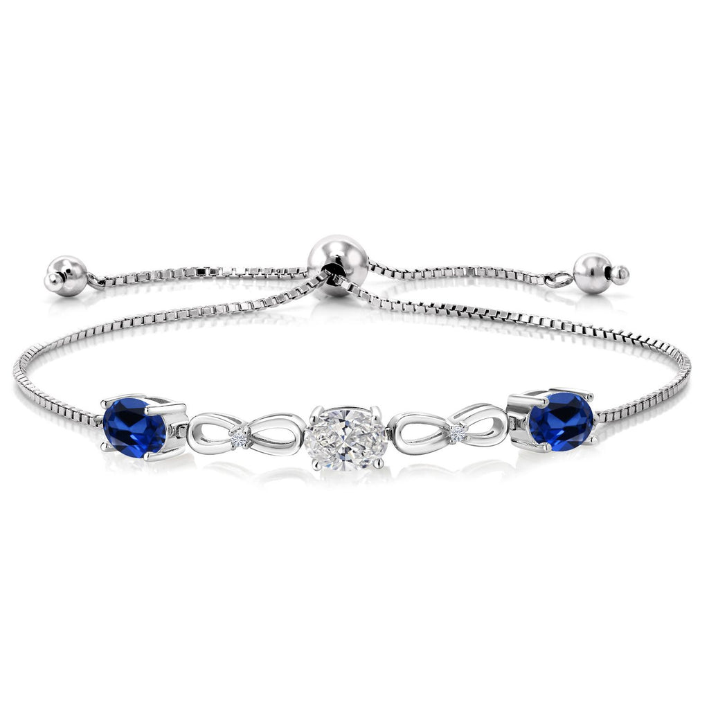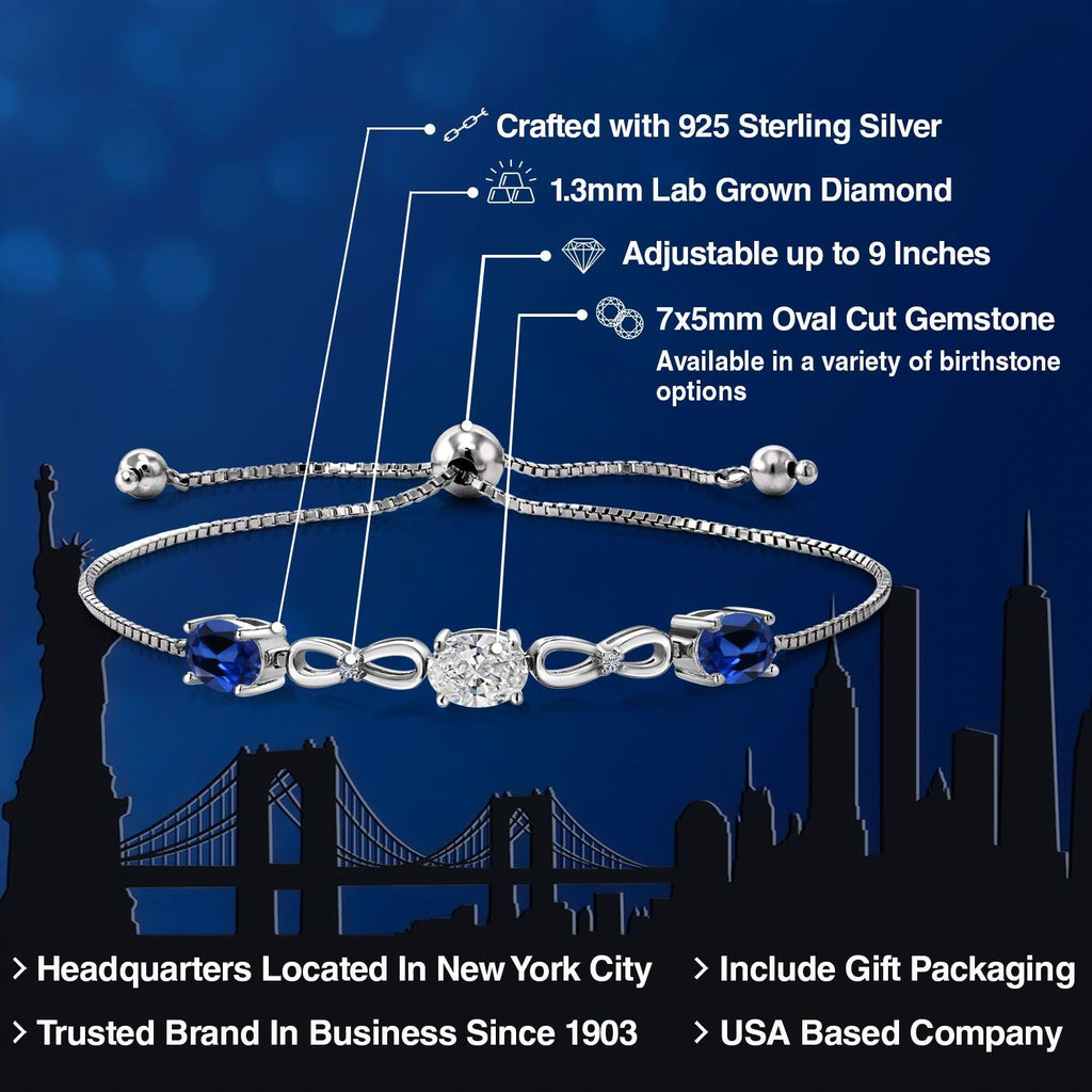 925 Sterling Silver Lab Grown Diamond and Blue Created Sapphire Bracelet For Women | 3.00 Cttw | Gemstone April Birthstone | Oval 7X5MM | Fully Adjustable 9 Inch